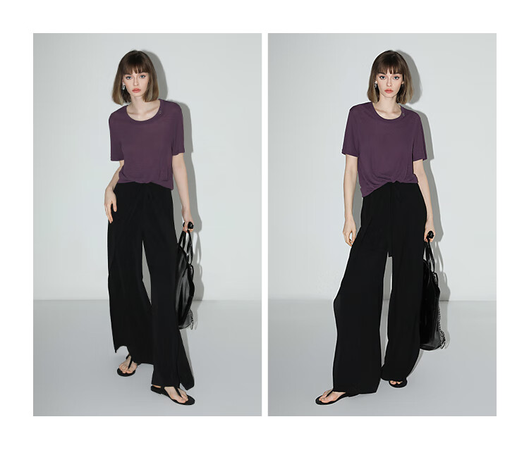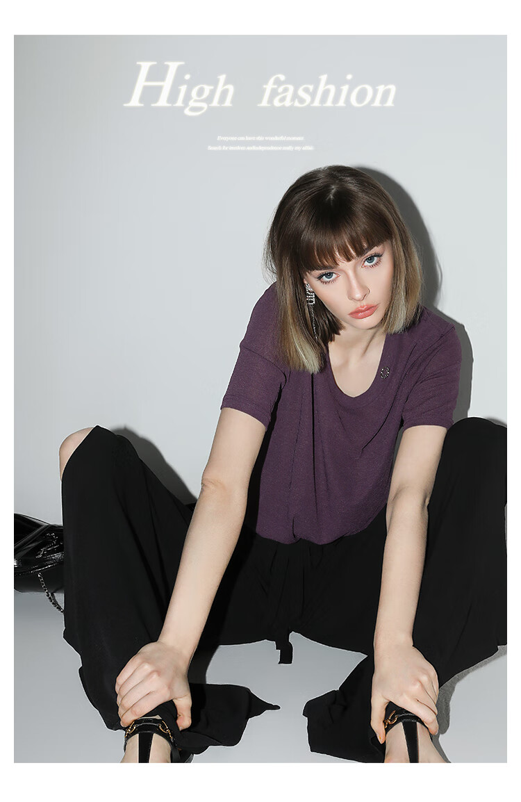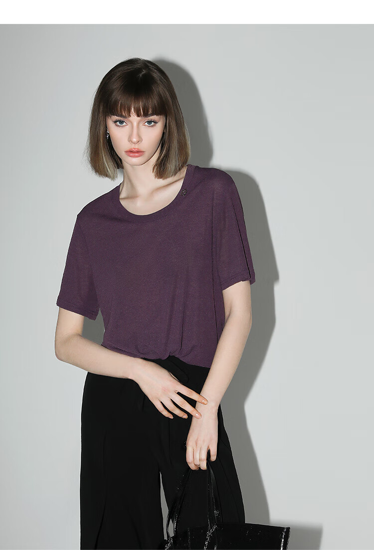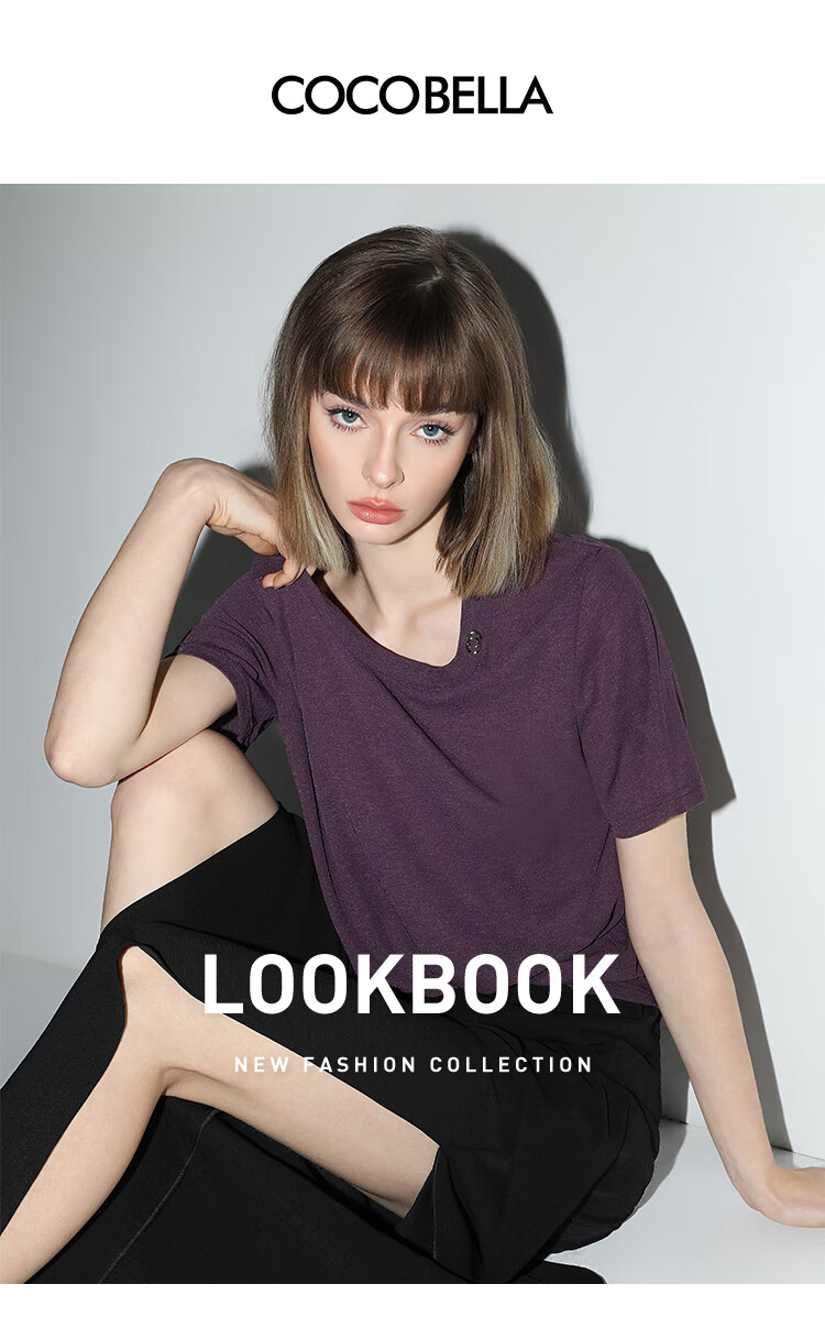 COCOBELLA质感金属LOGO凉感短袖针织衫女舒适圆领T恤NTS26
