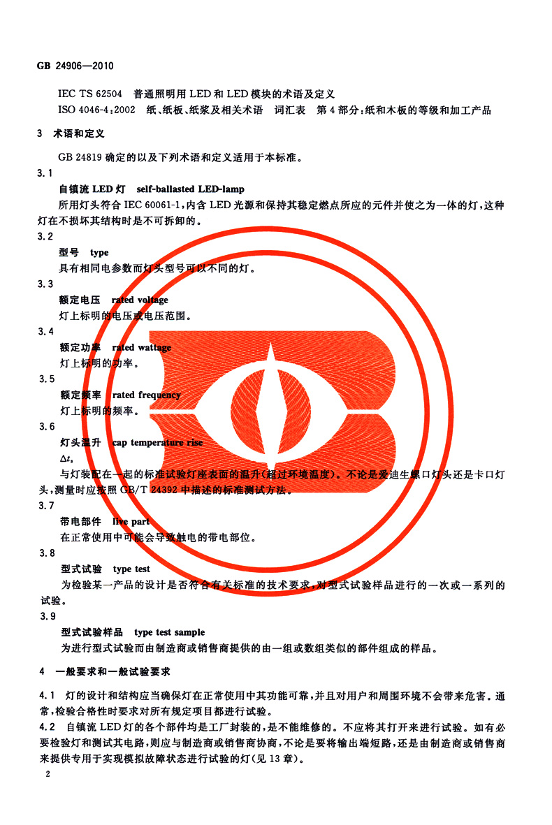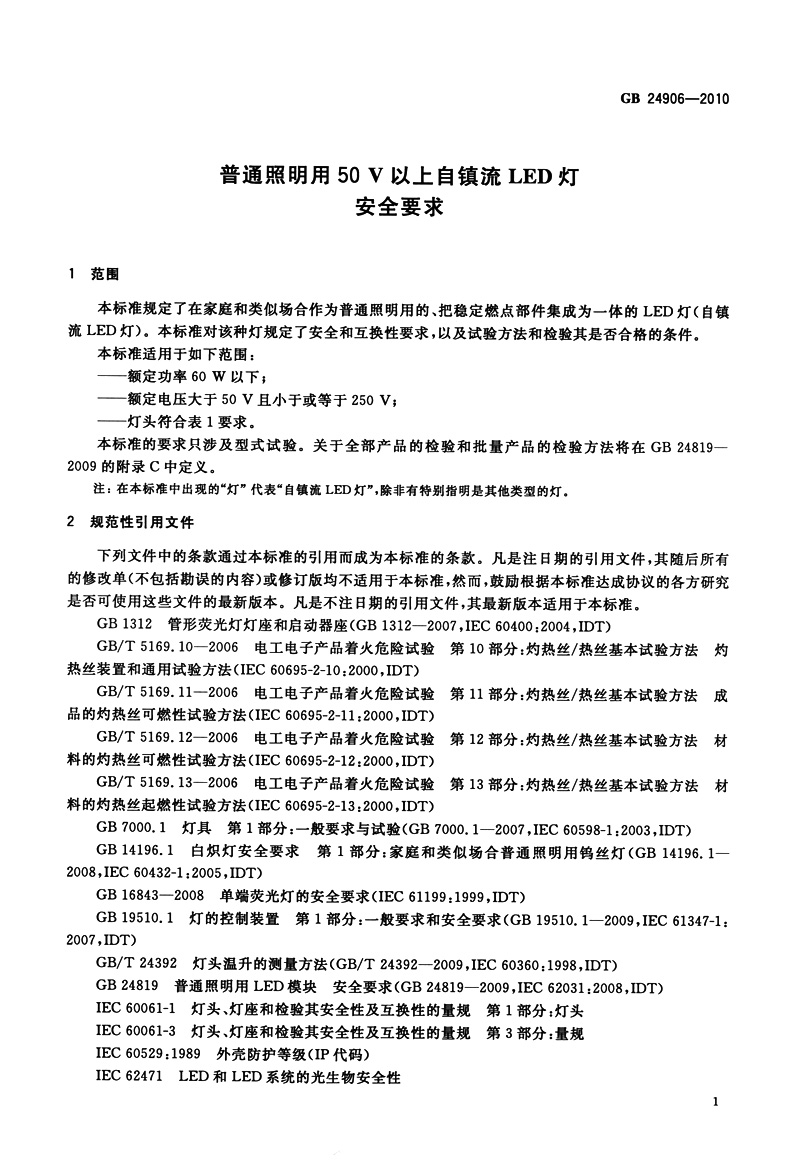 书名:速印不退 GB 24906-2010普通照明用50V以上自镇流LED灯 安全要求
