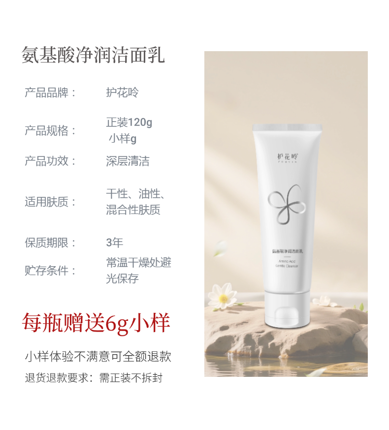 护花呤氨基酸净润洁面乳深层清洁 120g/瓶