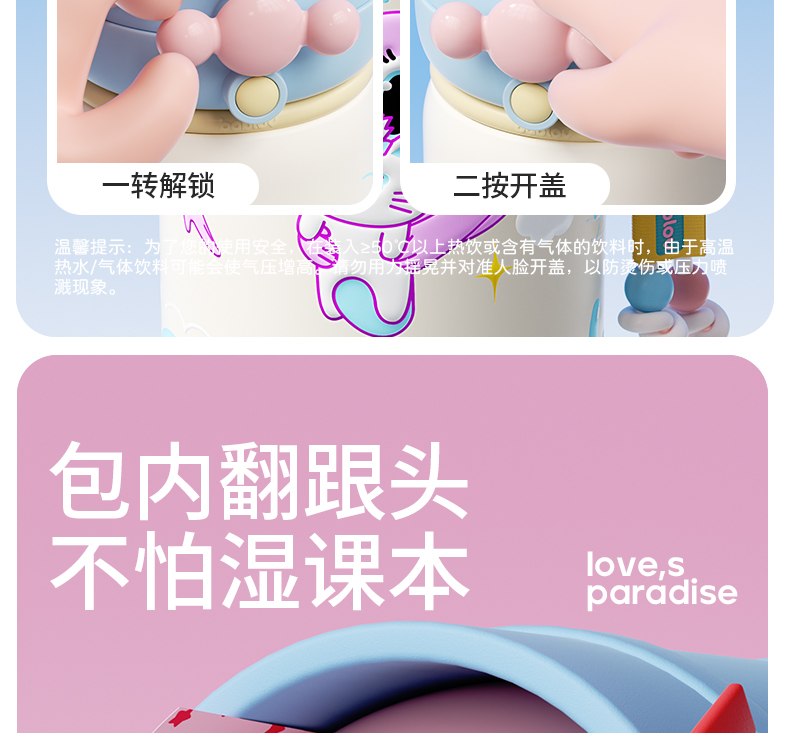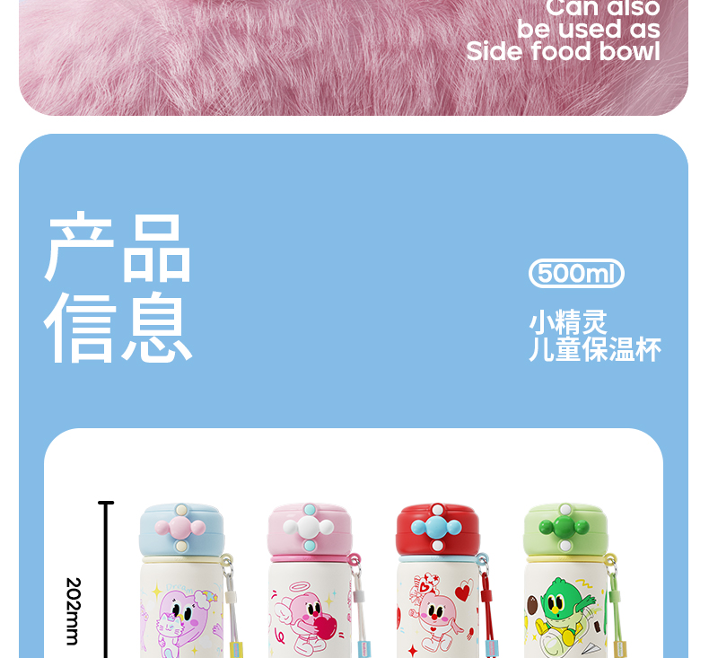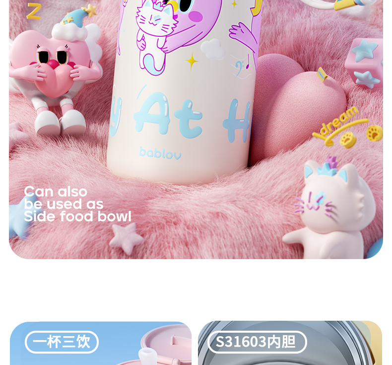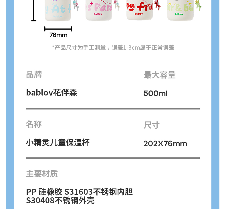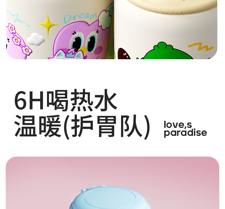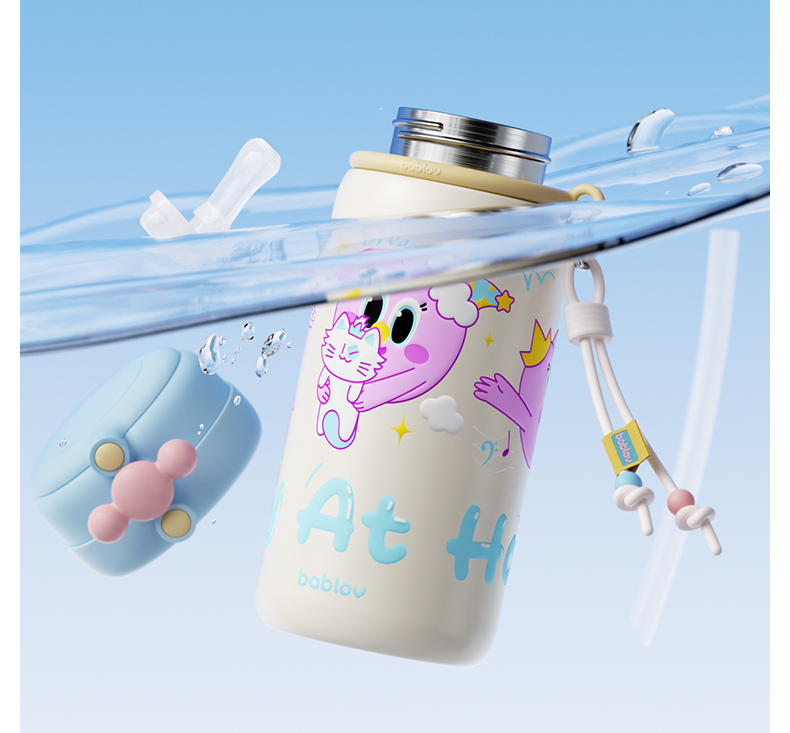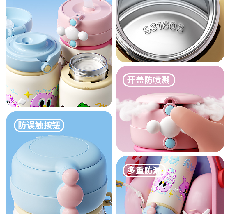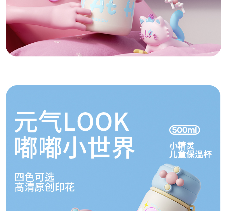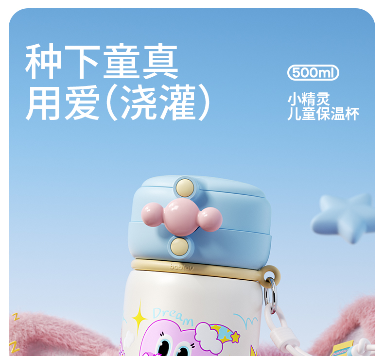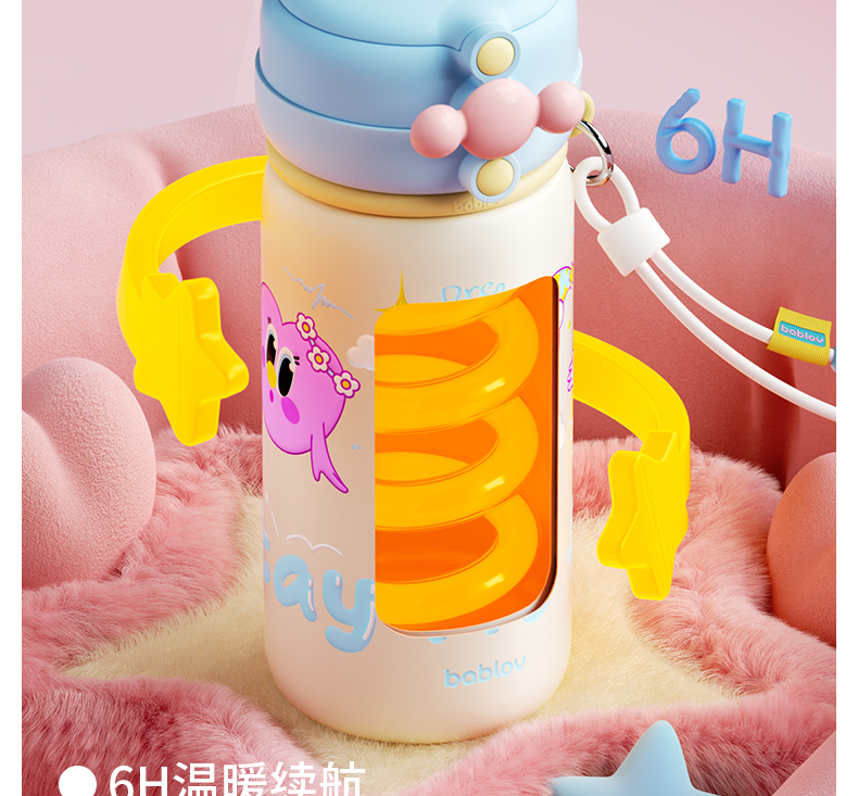 bablov花伴森儿童小精灵保温杯男女孩吸管杯学生上学专用水杯高颜值杯子