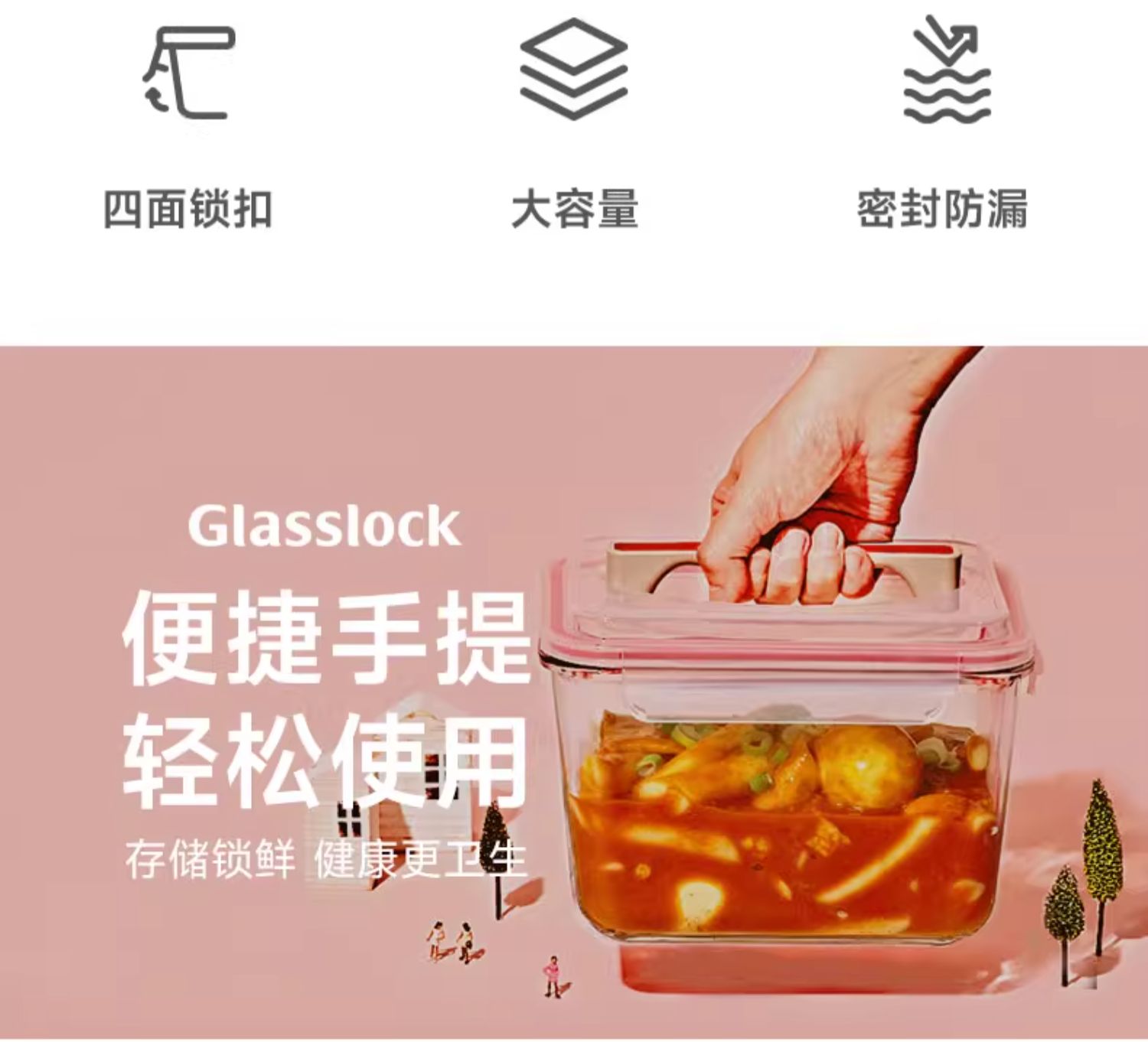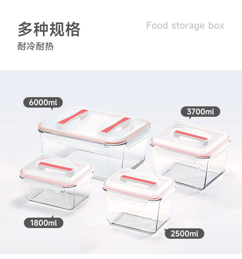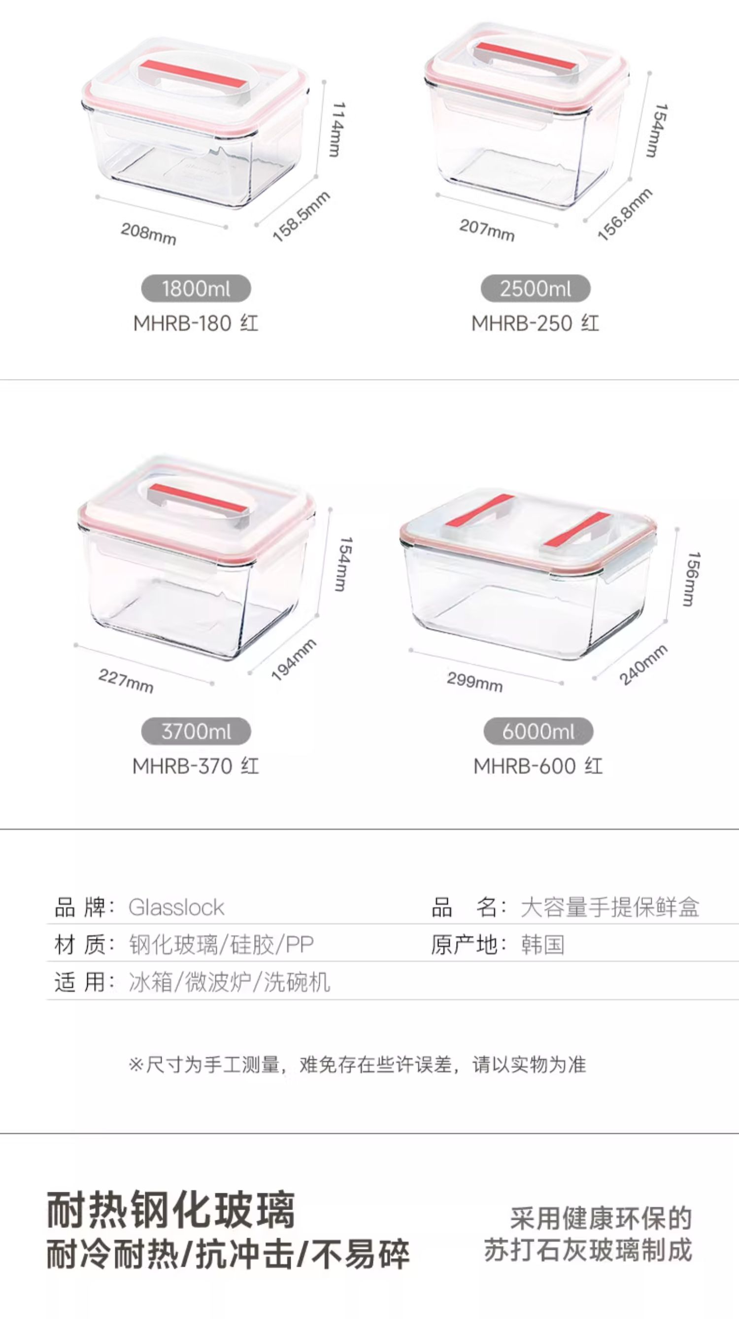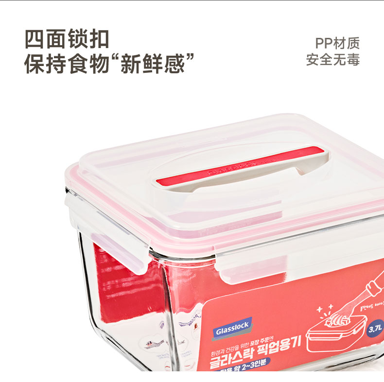 Glasslock手提大容量保鲜盒盖朗手提形密封罐红色3.7L