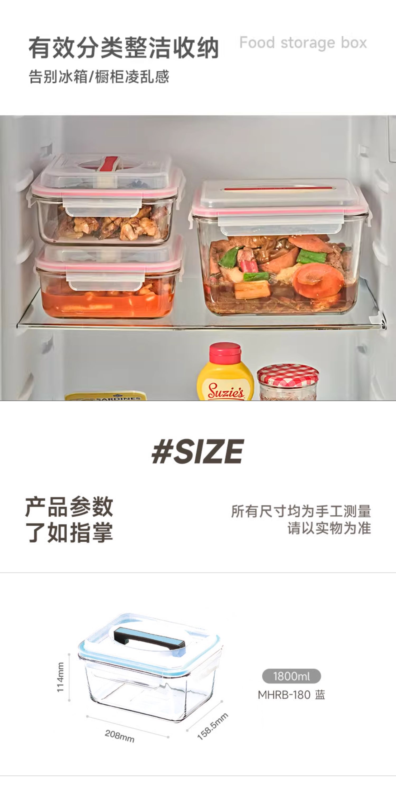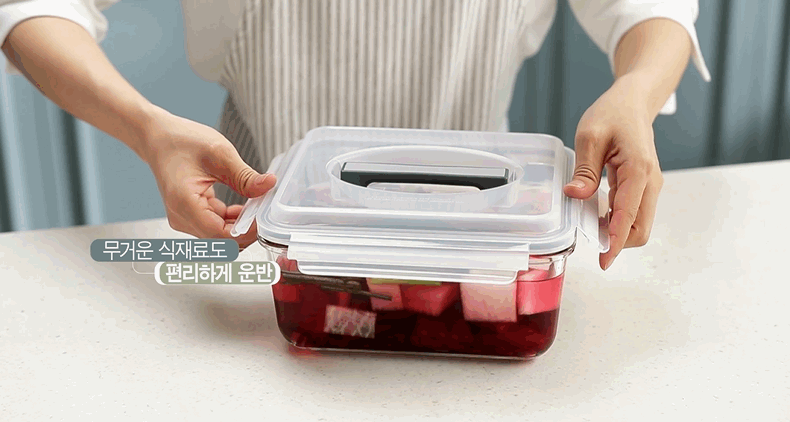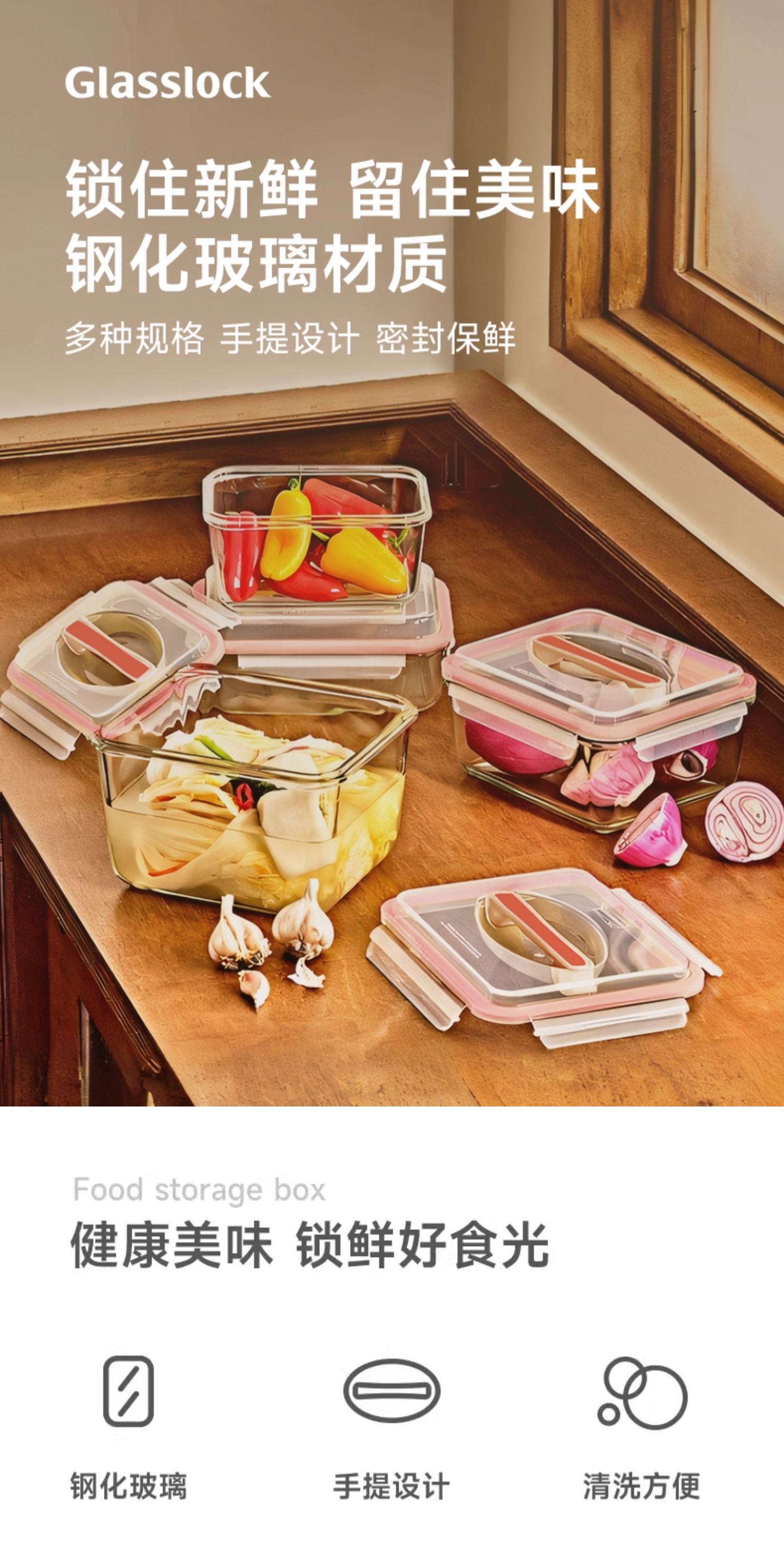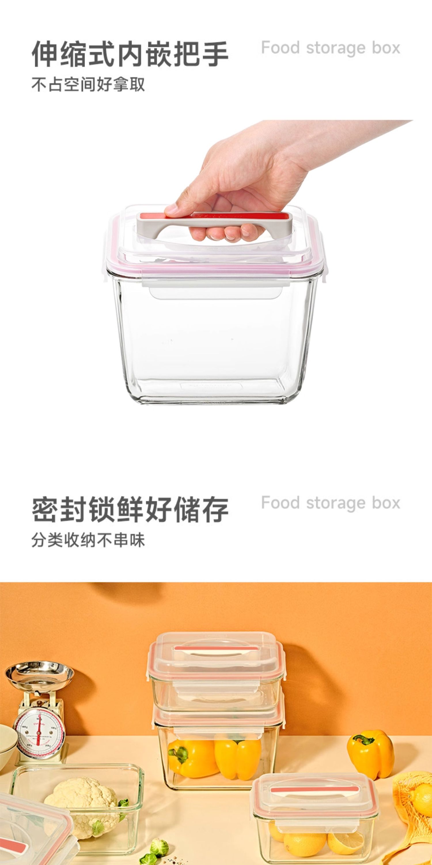 Glasslock手提大容量保鲜盒盖朗手提形密封罐红色3.7L