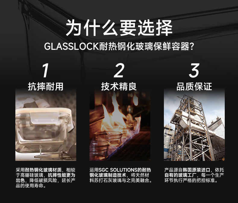 glasslock韩国进口耐热钢化玻璃保鲜盒两件套(带包)