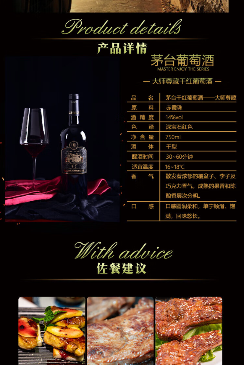 茅台集团茅台大师尊藏黑标干红葡萄酒 整箱750ml*6瓶包邮
