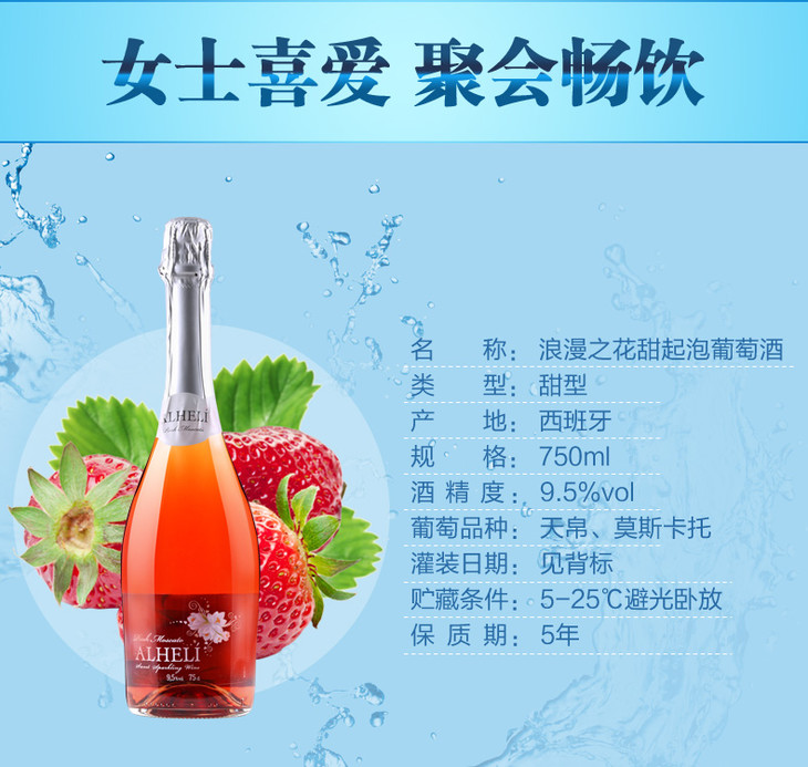 西班牙浪漫之花甜白起泡葡萄酒750ml