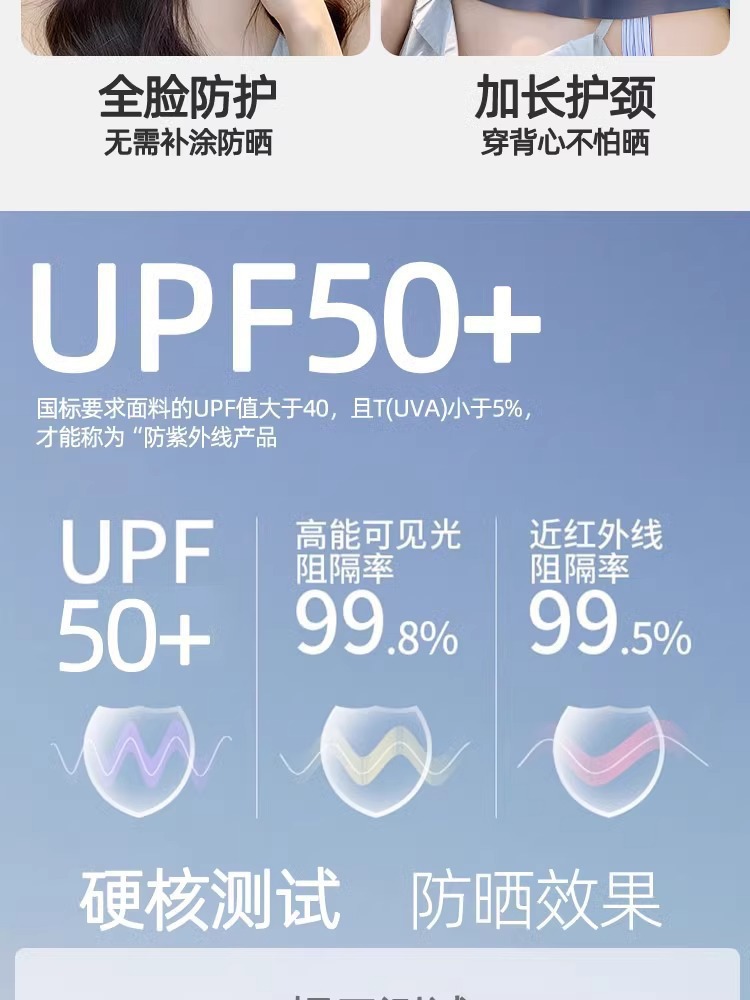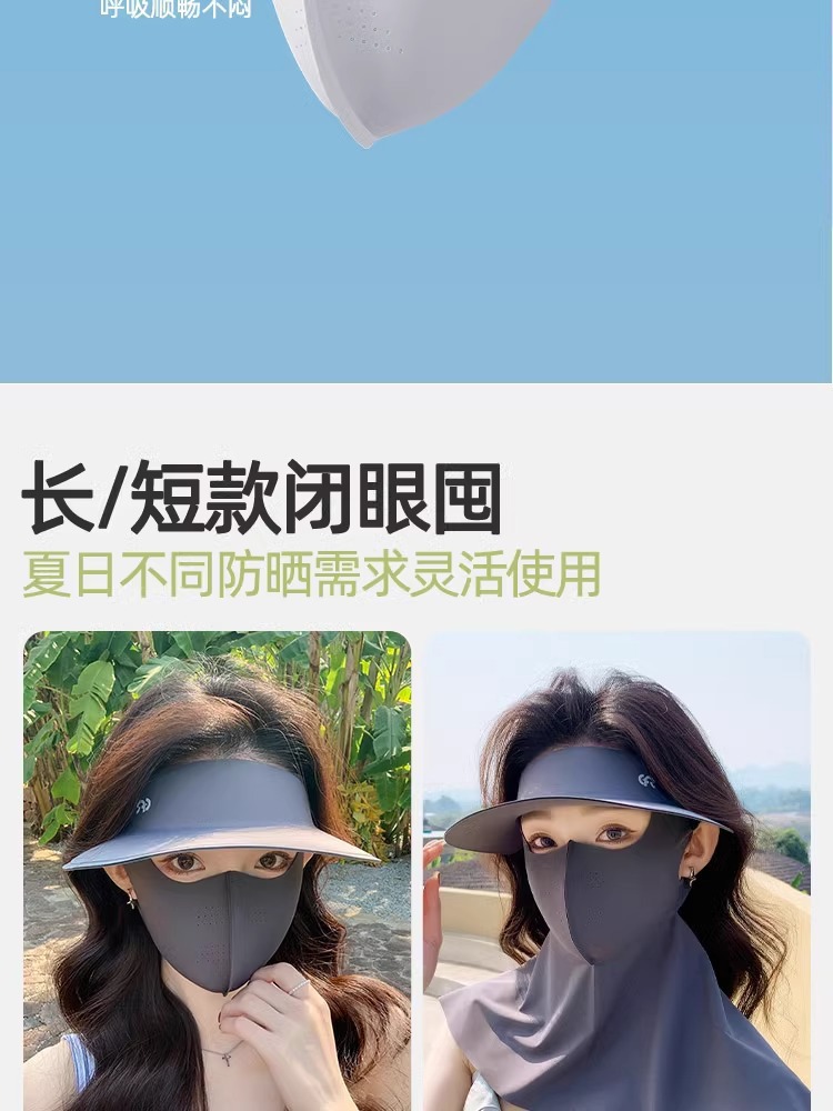 三合一防晒面罩一体帽可拆卸夏季女护全脸骑行无痕帽脸基尼口罩