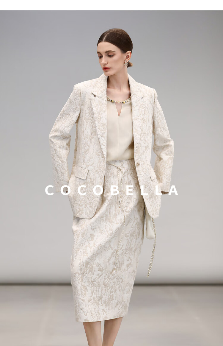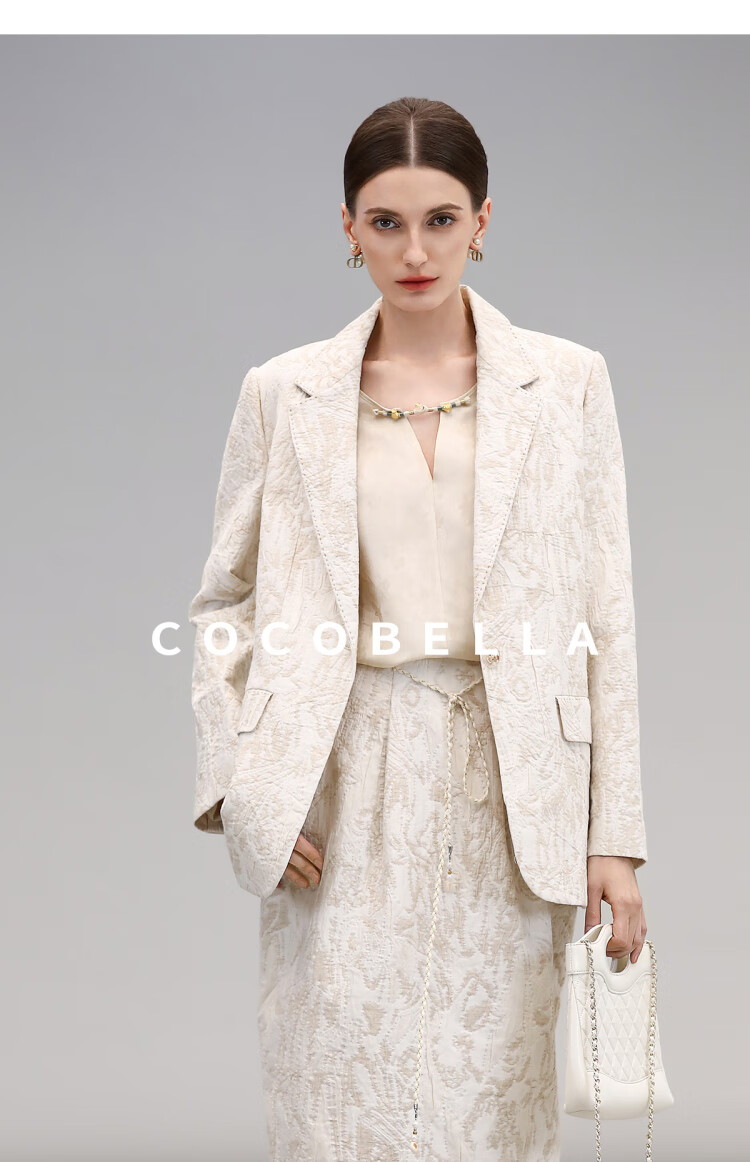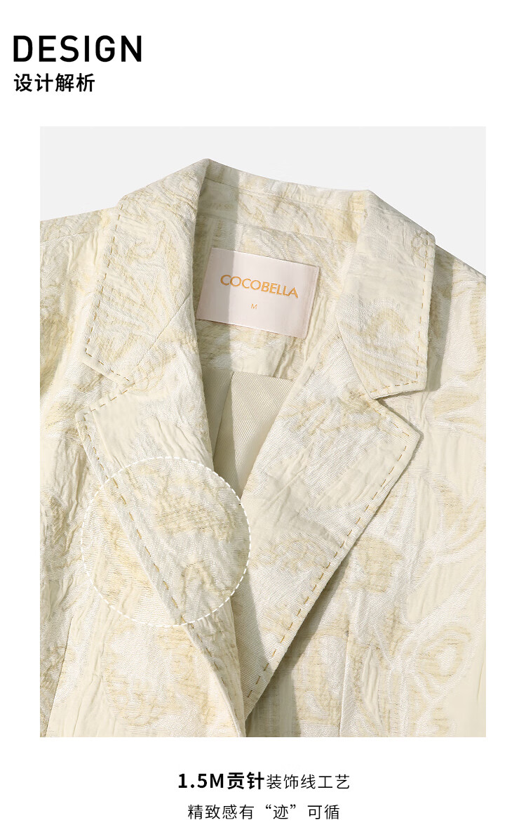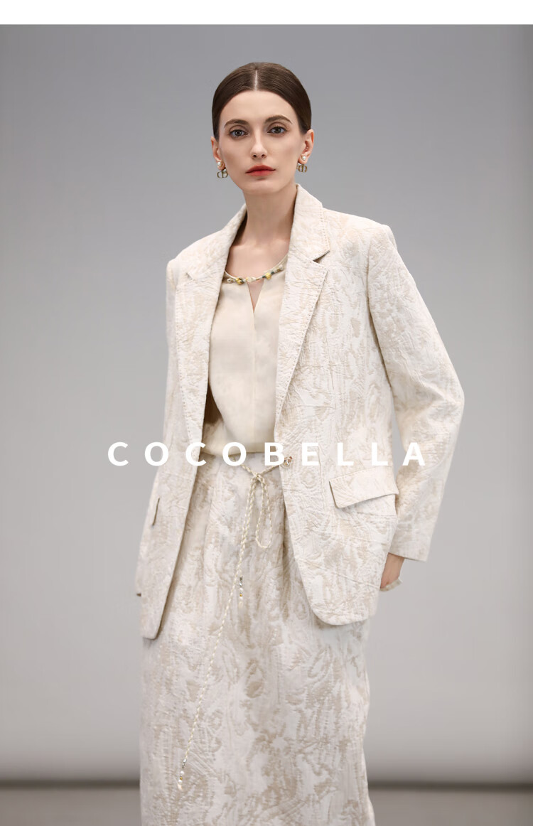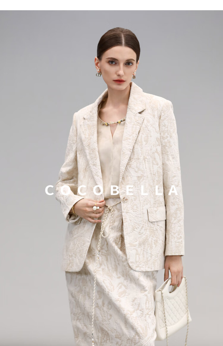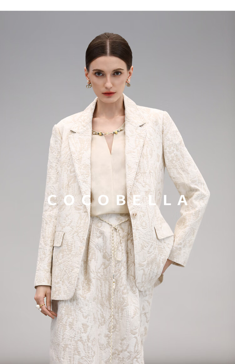 COCOBELLA肌理浮雕提花贡针西装女春夏轻奢风棉麻西服SI3015