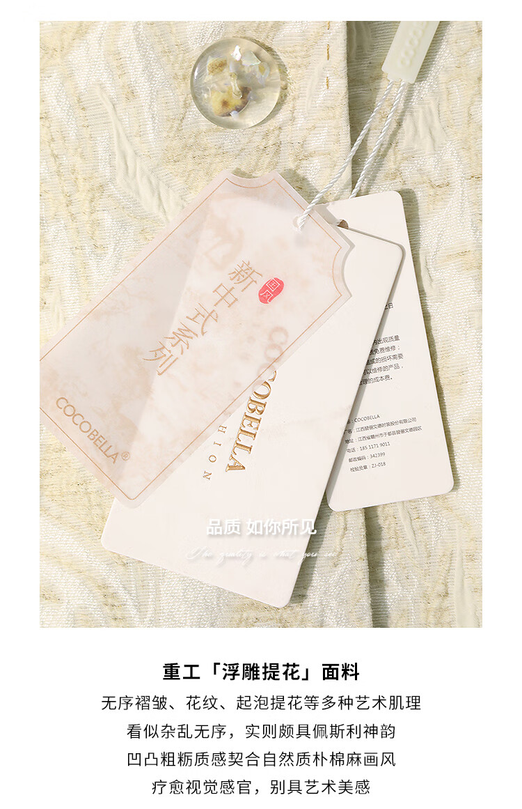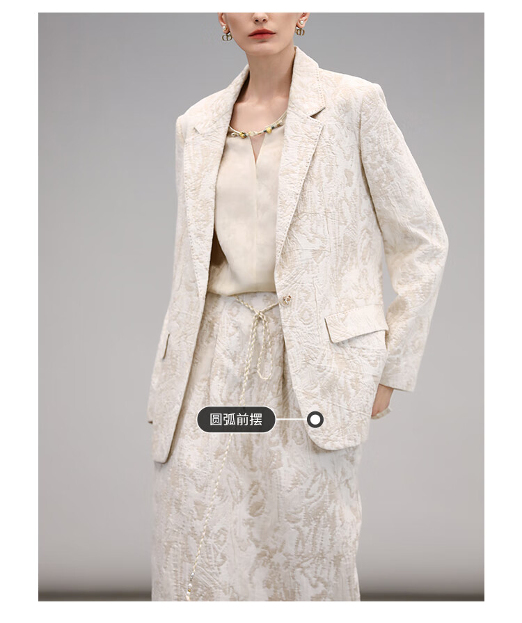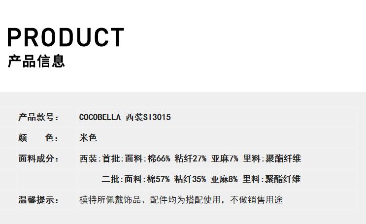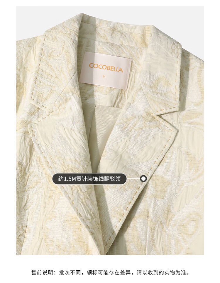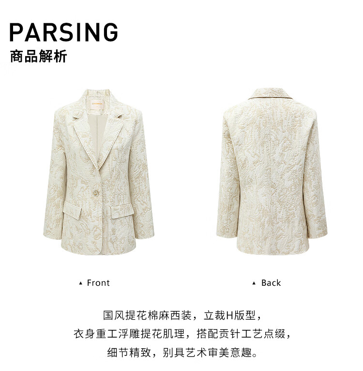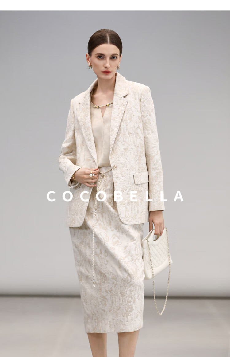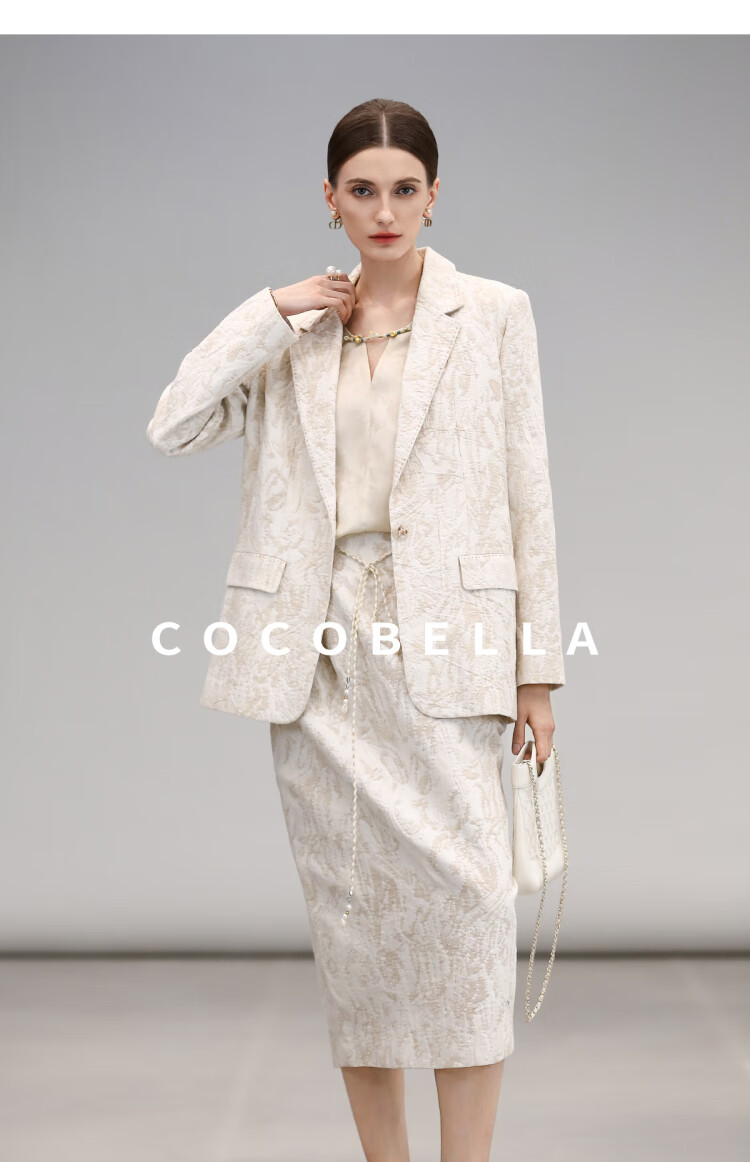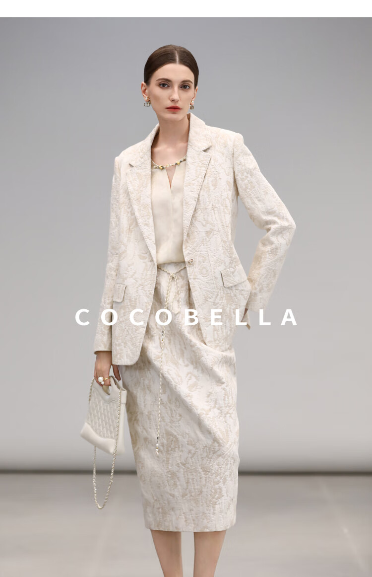 COCOBELLA肌理浮雕提花贡针西装女春夏轻奢风棉麻西服SI3015