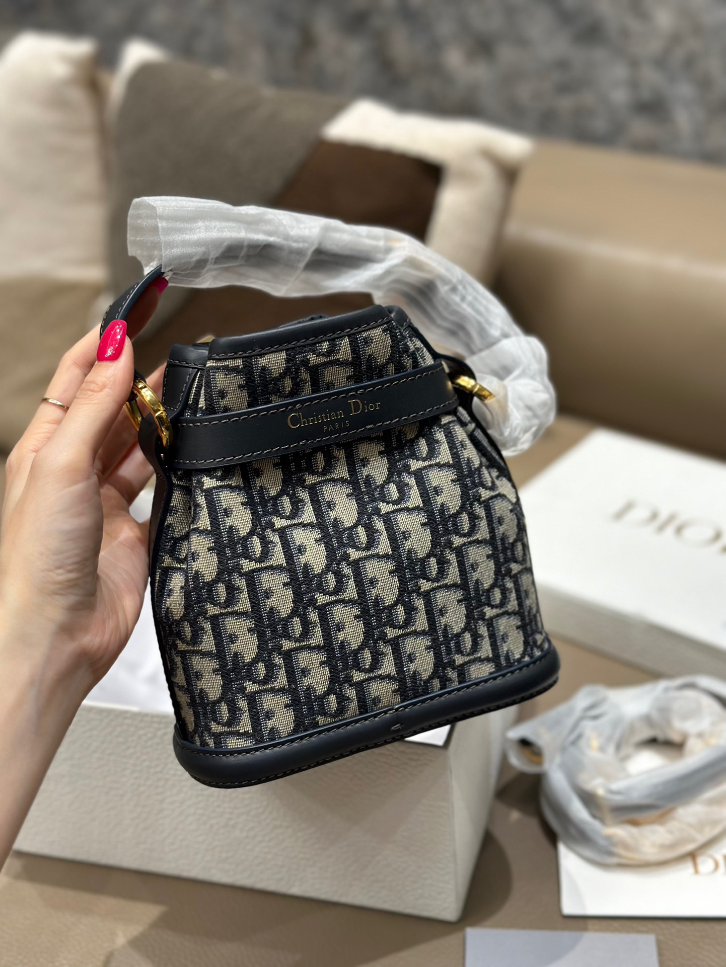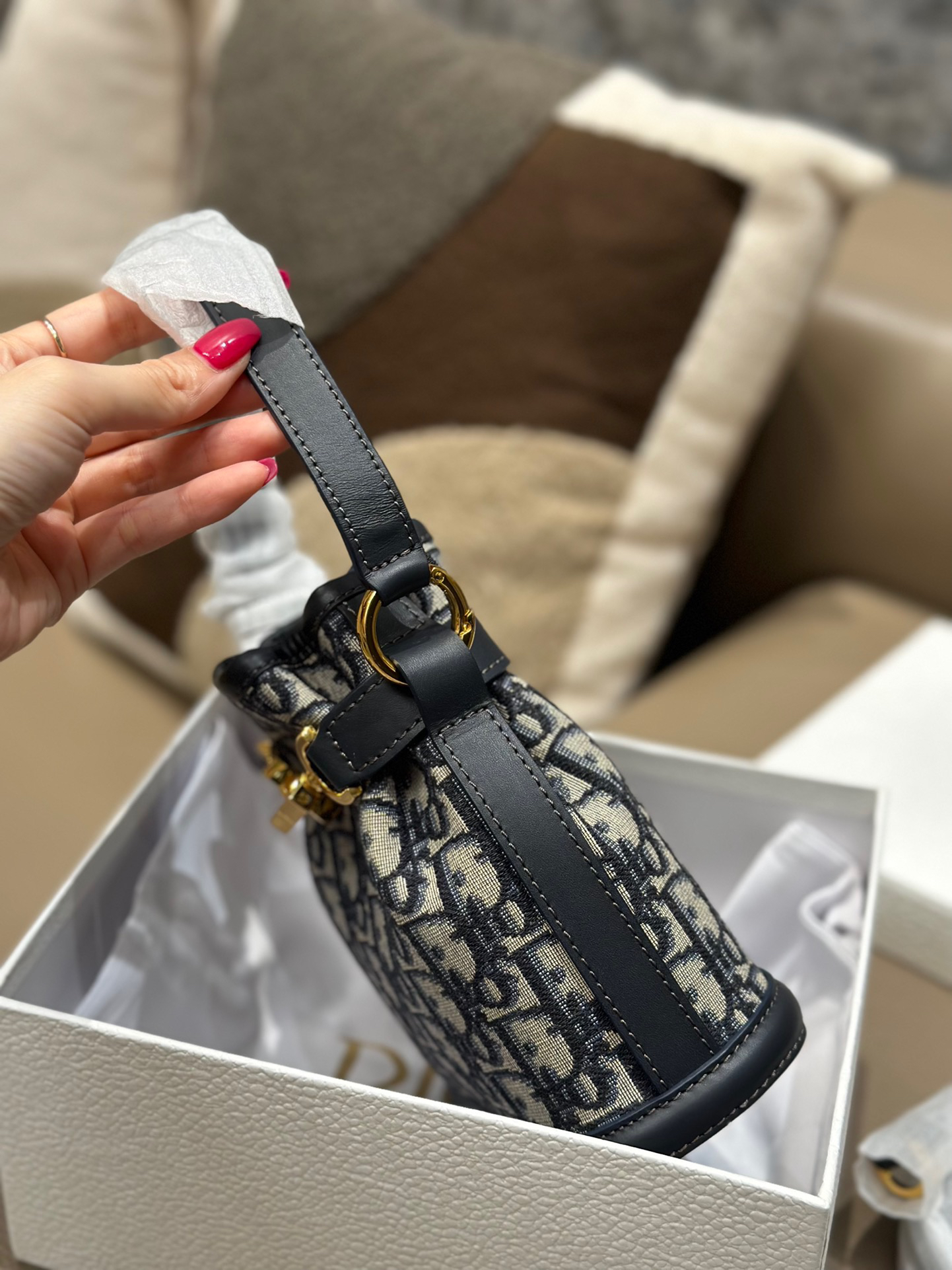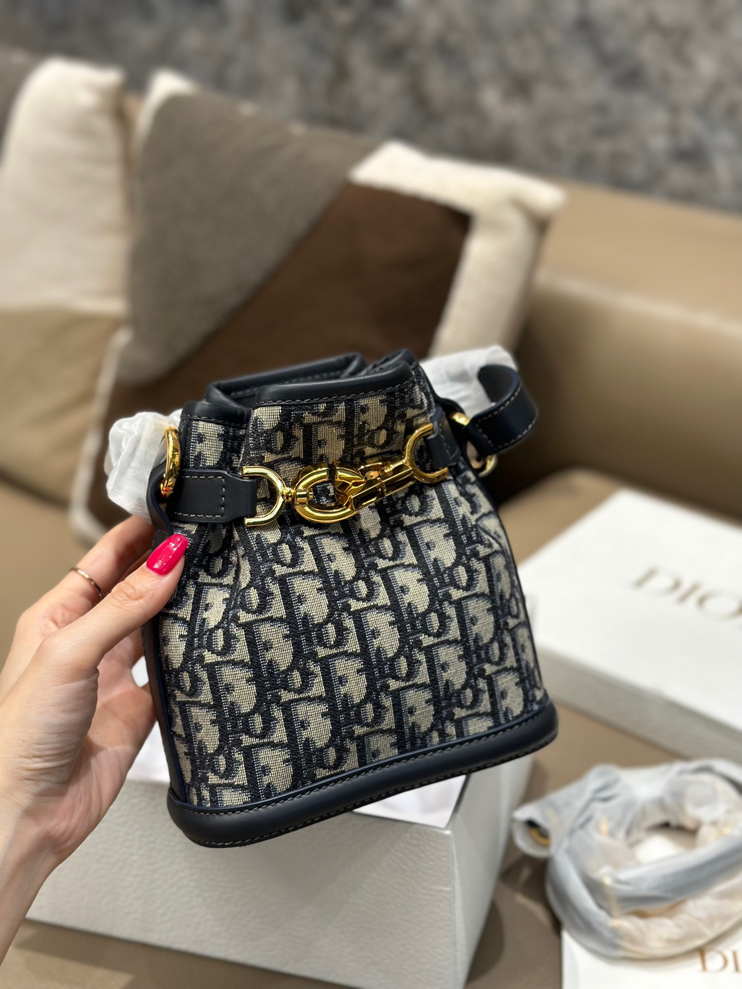 蓝色的oblique 老花面料