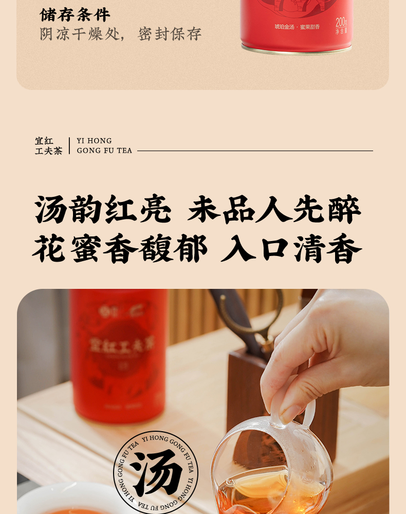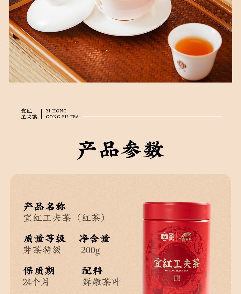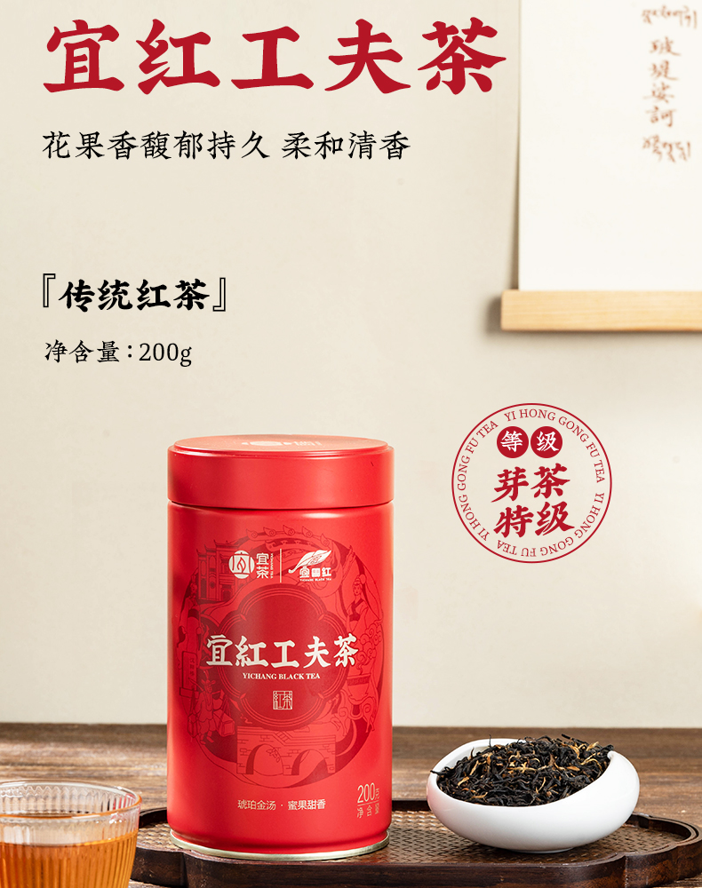 【宜茶甄选】宜红工夫茶花果蜜香高山红茶叶罐装 200g