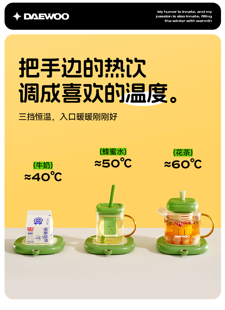 【韩国大宇恒温杯垫】大宇加热杯垫办公室恒温杯垫热牛奶神器家用保温垫暖杯垫加热底座IC06