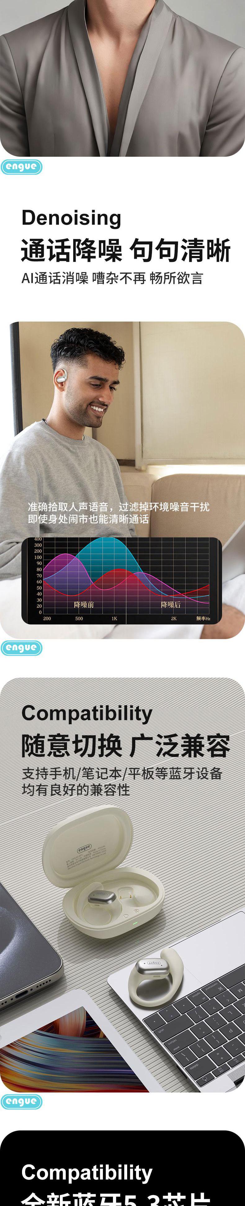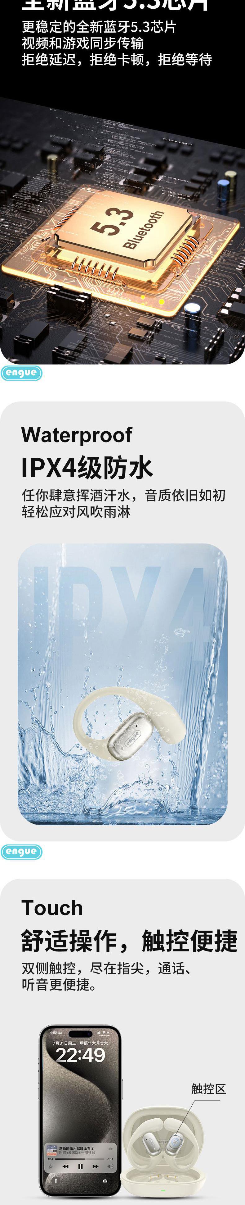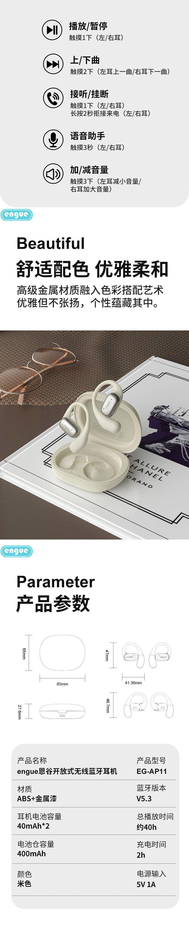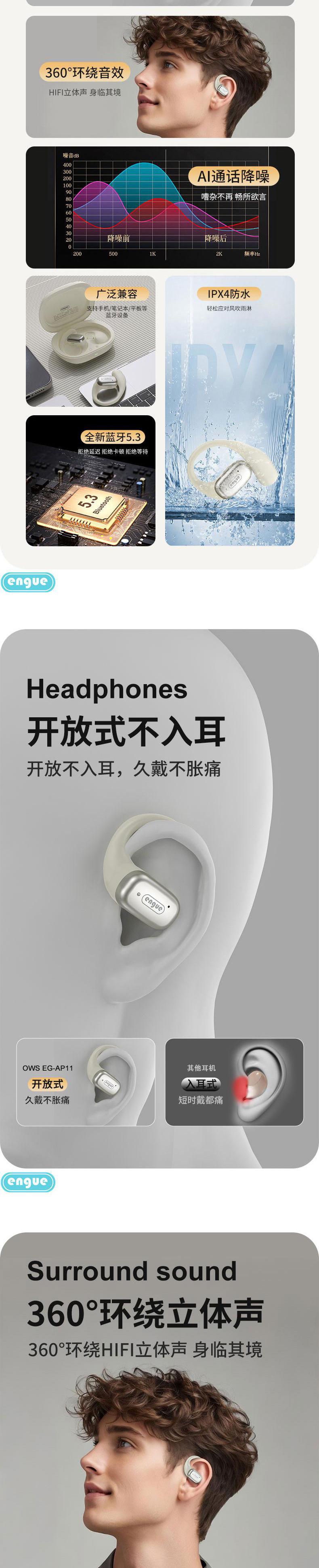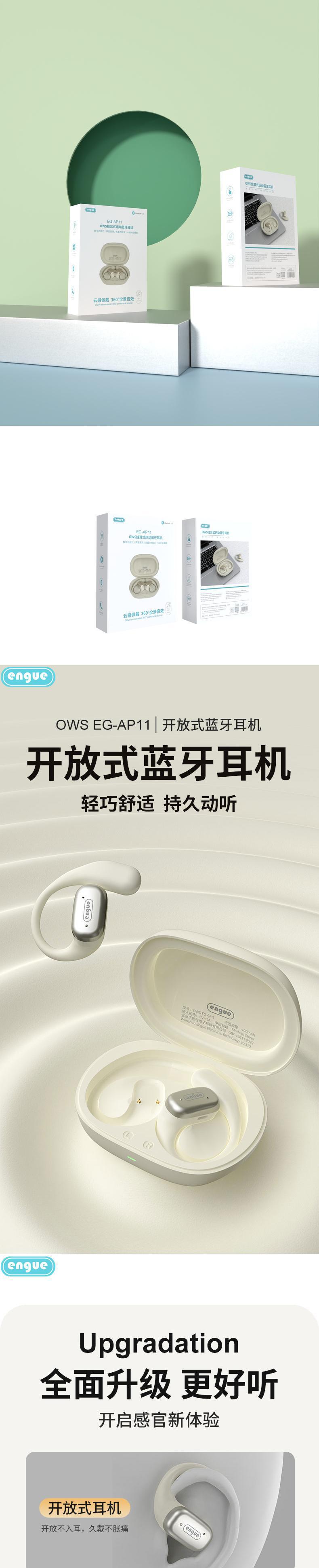 【自营】engue恩谷OWS挂耳式运动蓝牙耳EG-AP11开放式不堵耳道久戴不胀痛