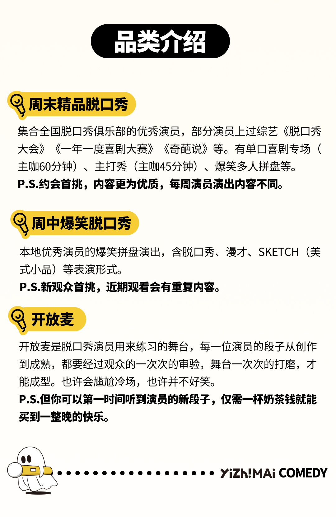 - 一支麦成立于2018年,其小剧场于2021年正式开业,致力于打造年轻人更喜欢的城市文娱新空间。目前主营单口喜剧、脱口秀、漫才、即兴喜剧以及近景魔术等商业演出,是一支麦喜剧的常驻场地。