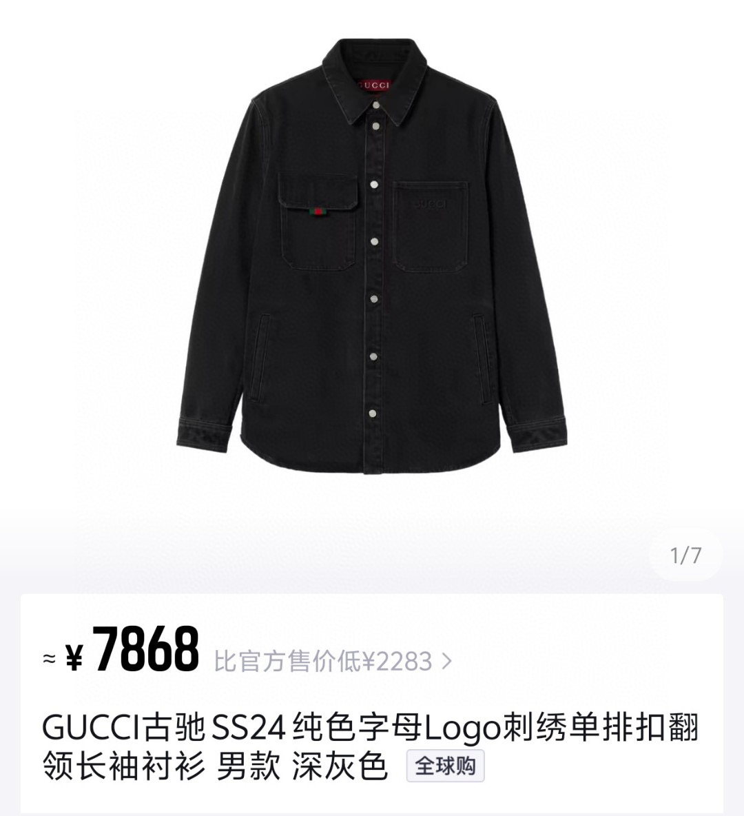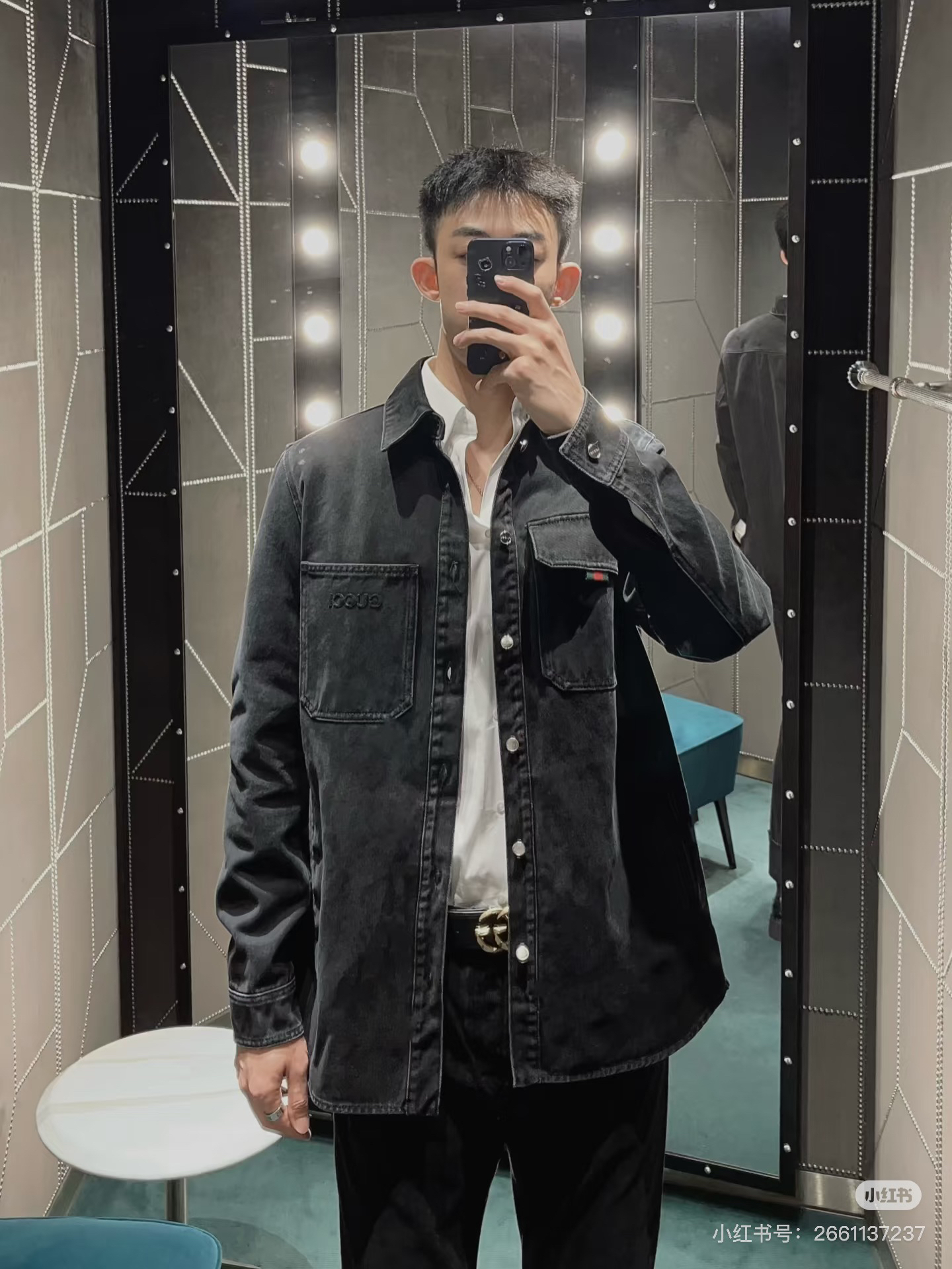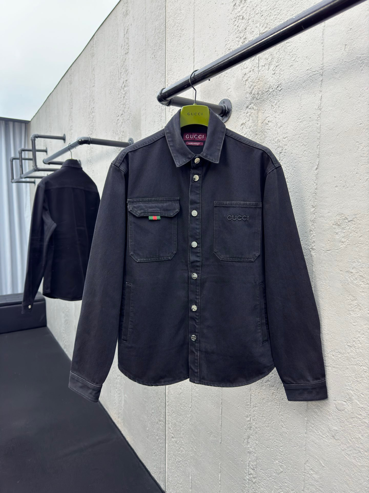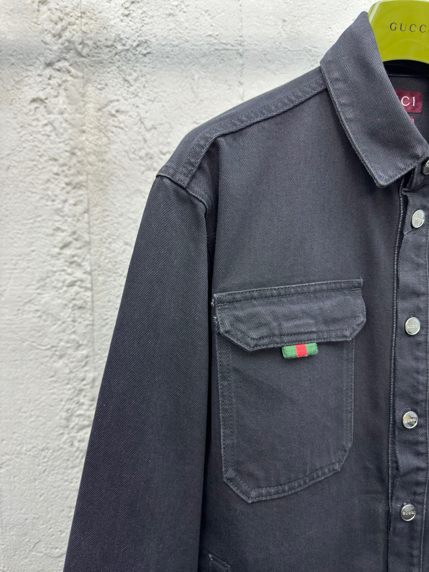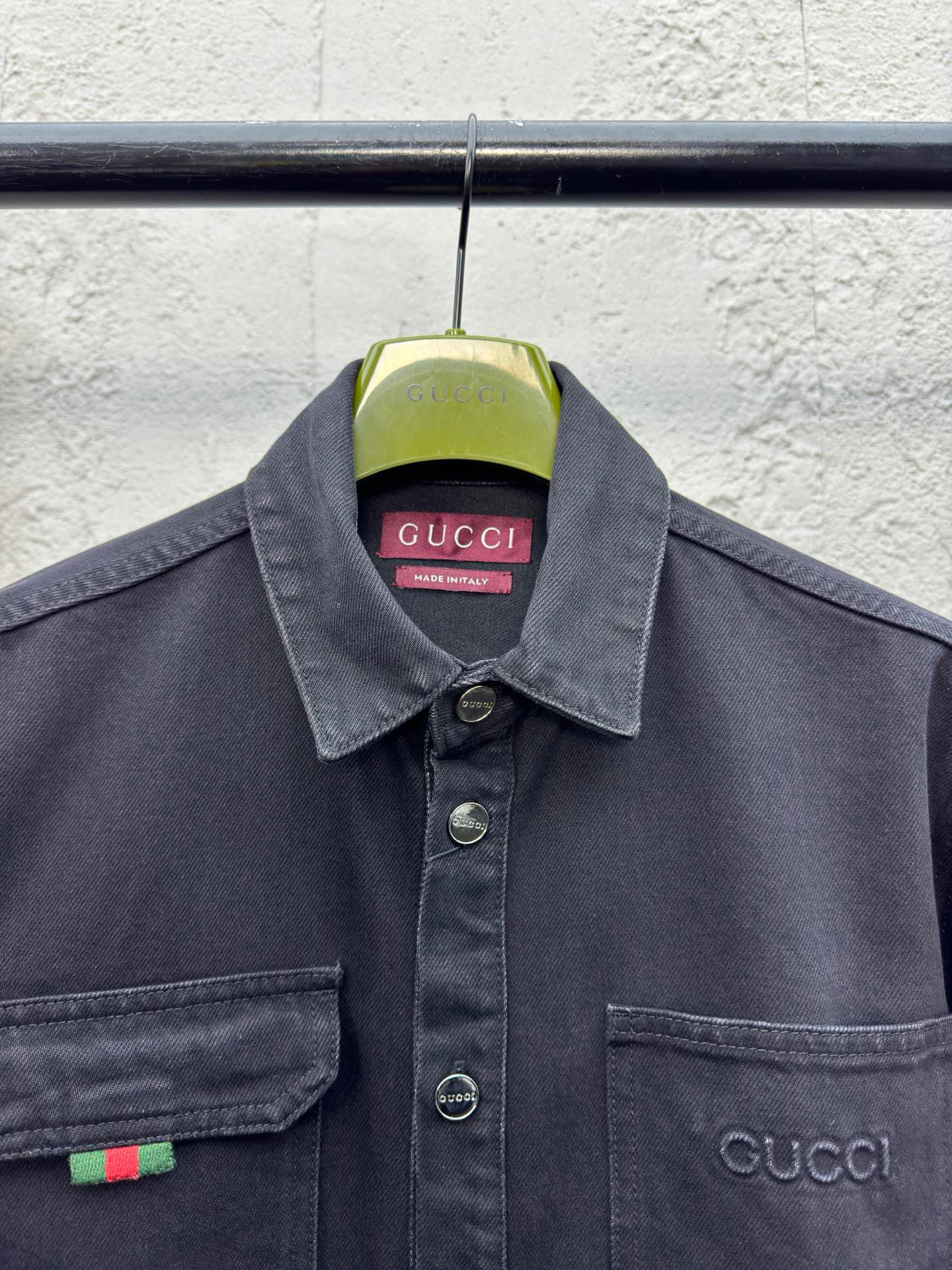 工艺说明:深色配色匠心演绎早秋氛围感满溢的精致套装,朴实无华的色彩背后潜藏着复杂的内部构造和低调内敛的细节,简约而不简单。这款常规版型衬衫以石磨水洗丹宁面料匠心打造,巧妙融入Gucci刺绣和红绿织带 提环细节,令整个设计魅力倍增。能与同款搭配营造时尚造型,驾驭各种场合,定制辅料,三标齐全,男女同款!