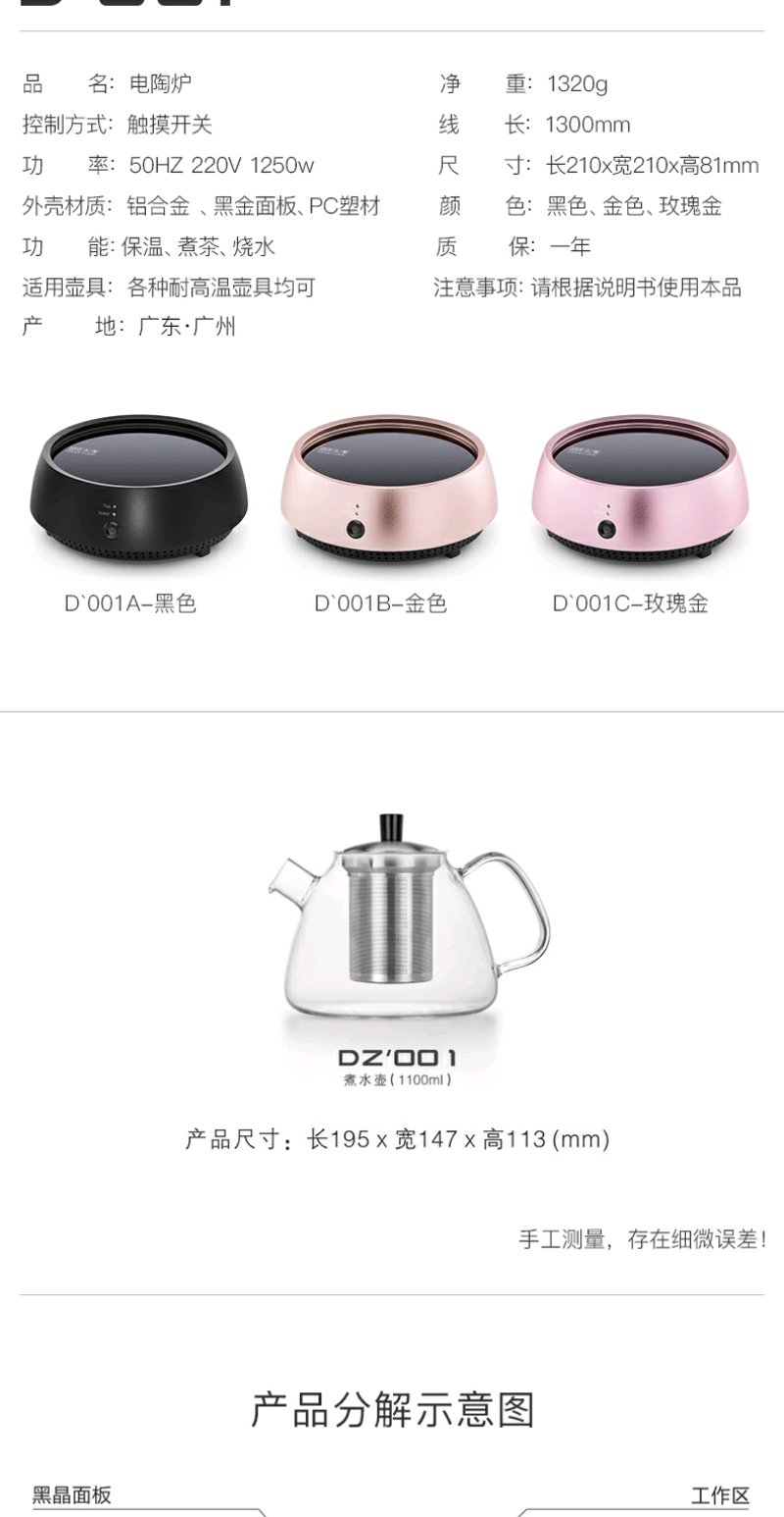 尚明 D001电陶炉茶炉家用静音电热茶炉 专用泡茶