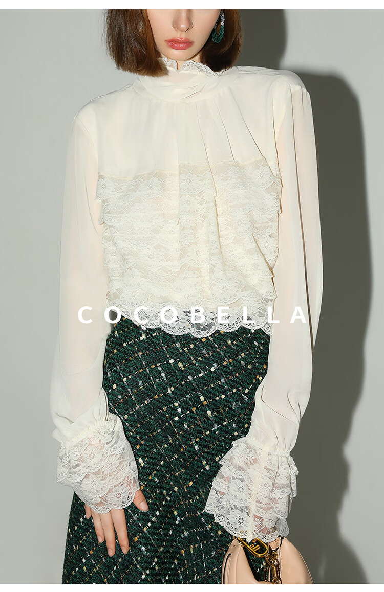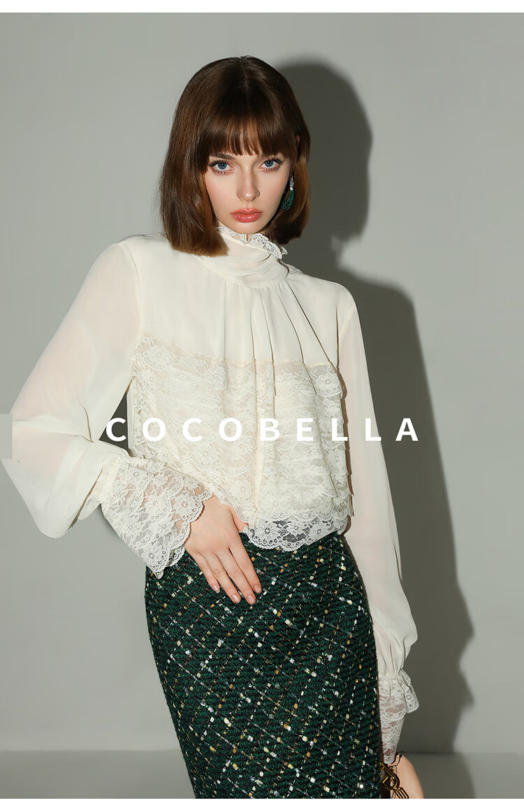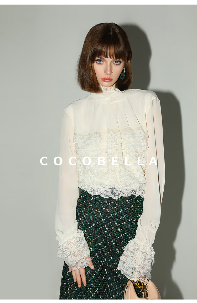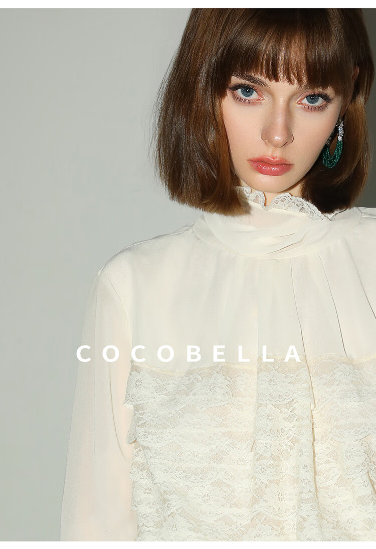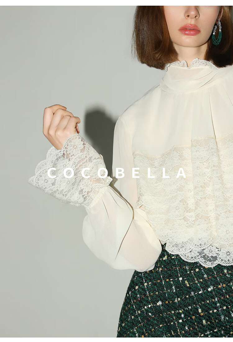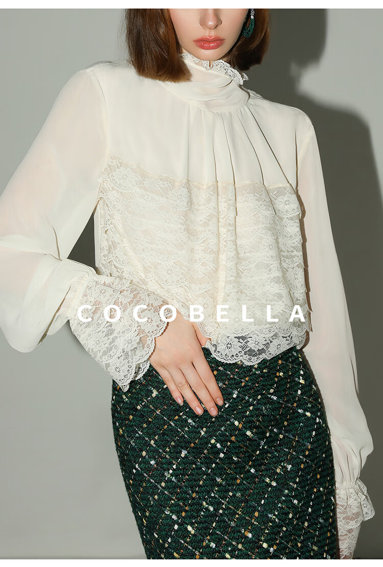 COCOBELLA精致女人味优雅多层蕾丝衫女赫本风白色衬衫LC7028