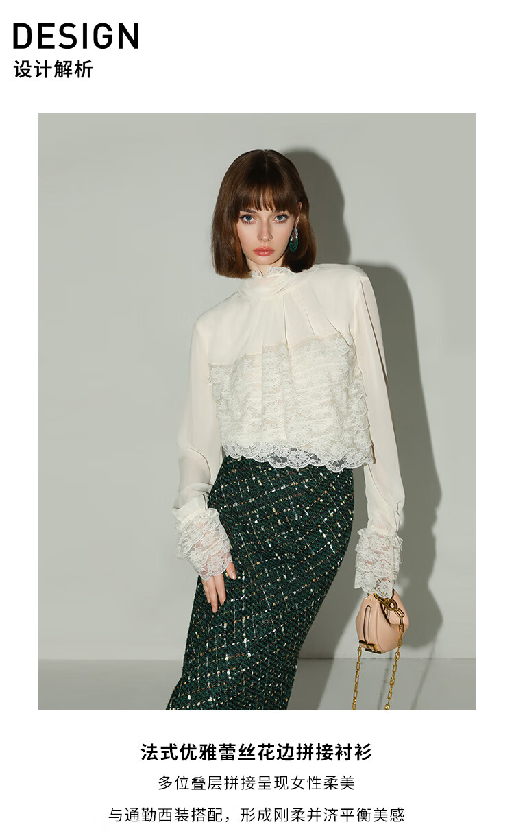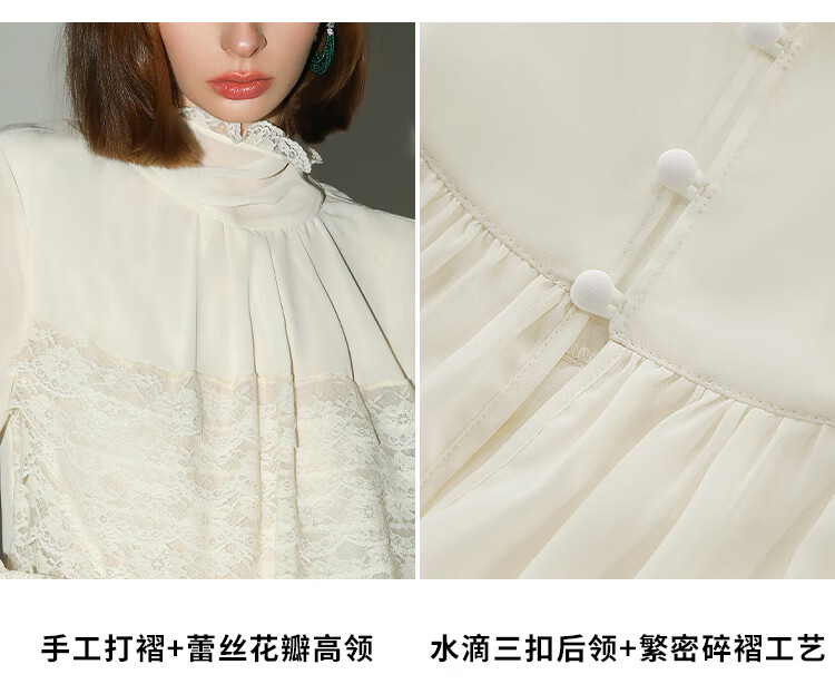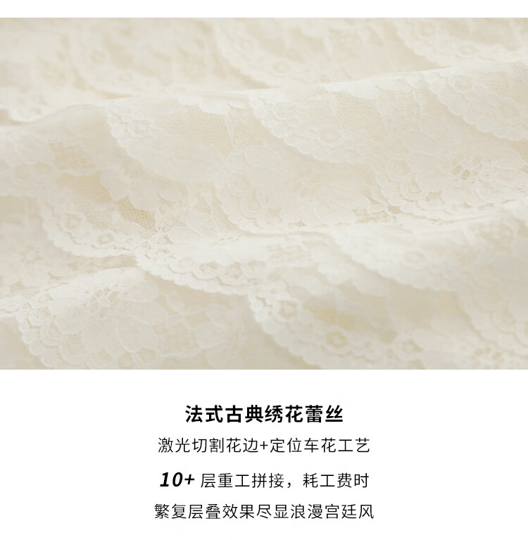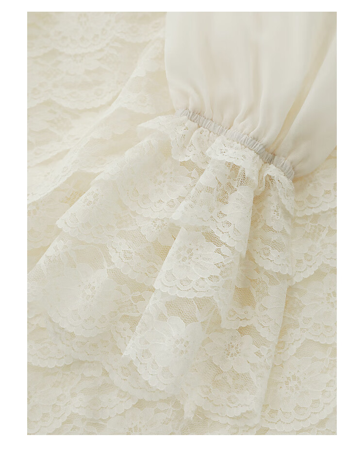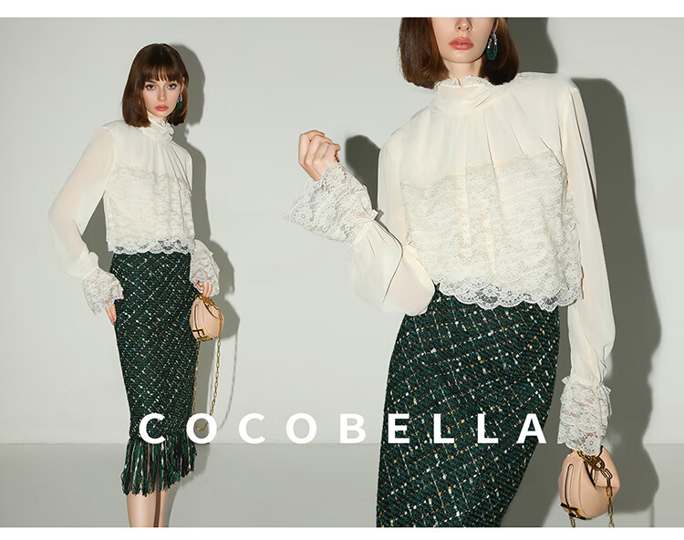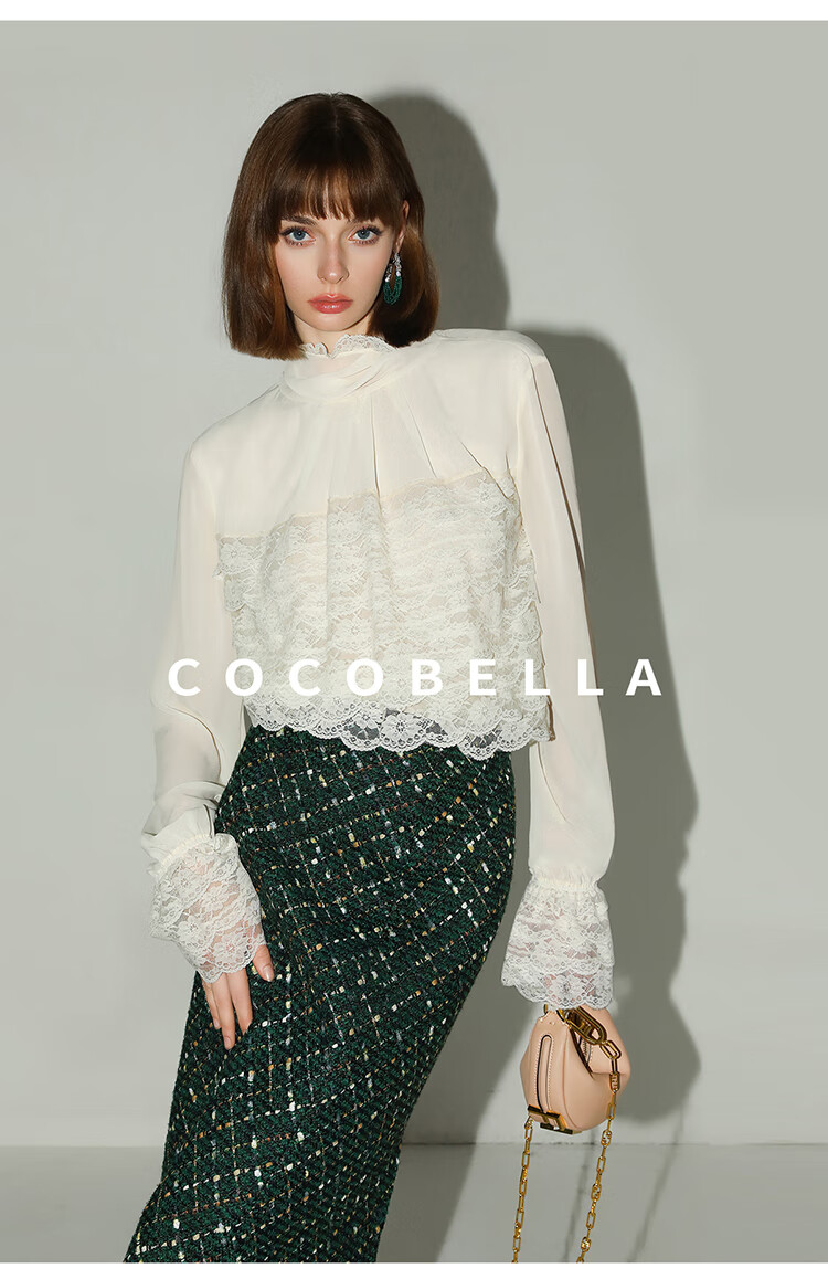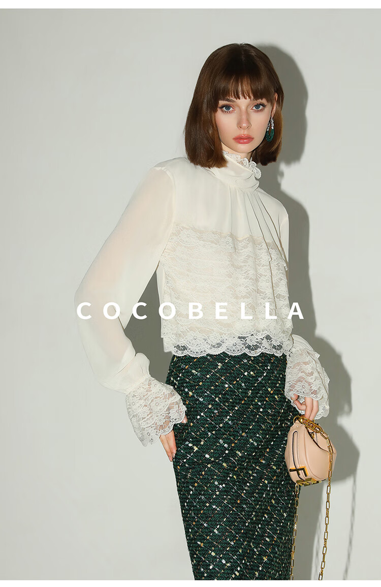 COCOBELLA精致女人味优雅多层蕾丝衫女赫本风白色衬衫LC7028