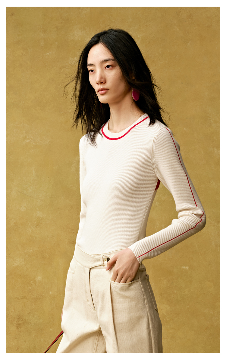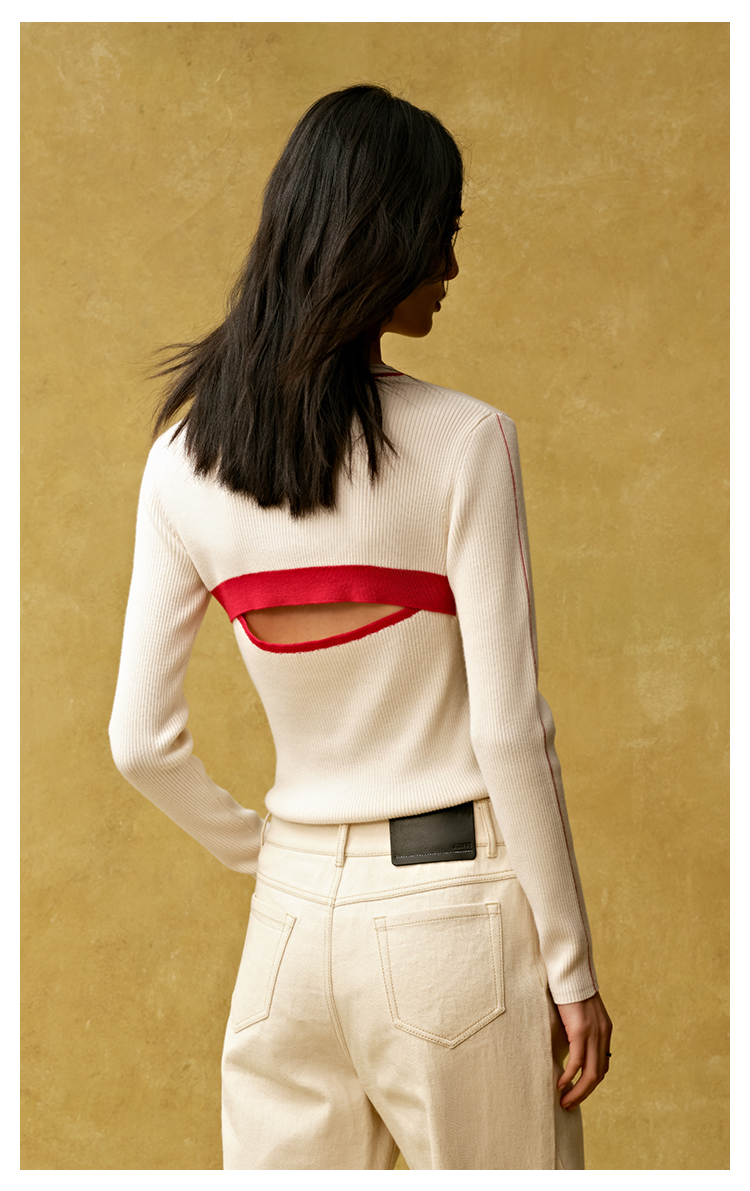 【JASON WU】秋冬新款后背镂空含羊毛上衣针织套头衫女