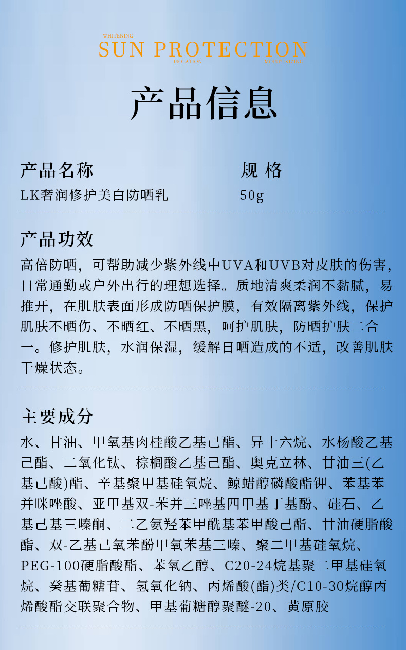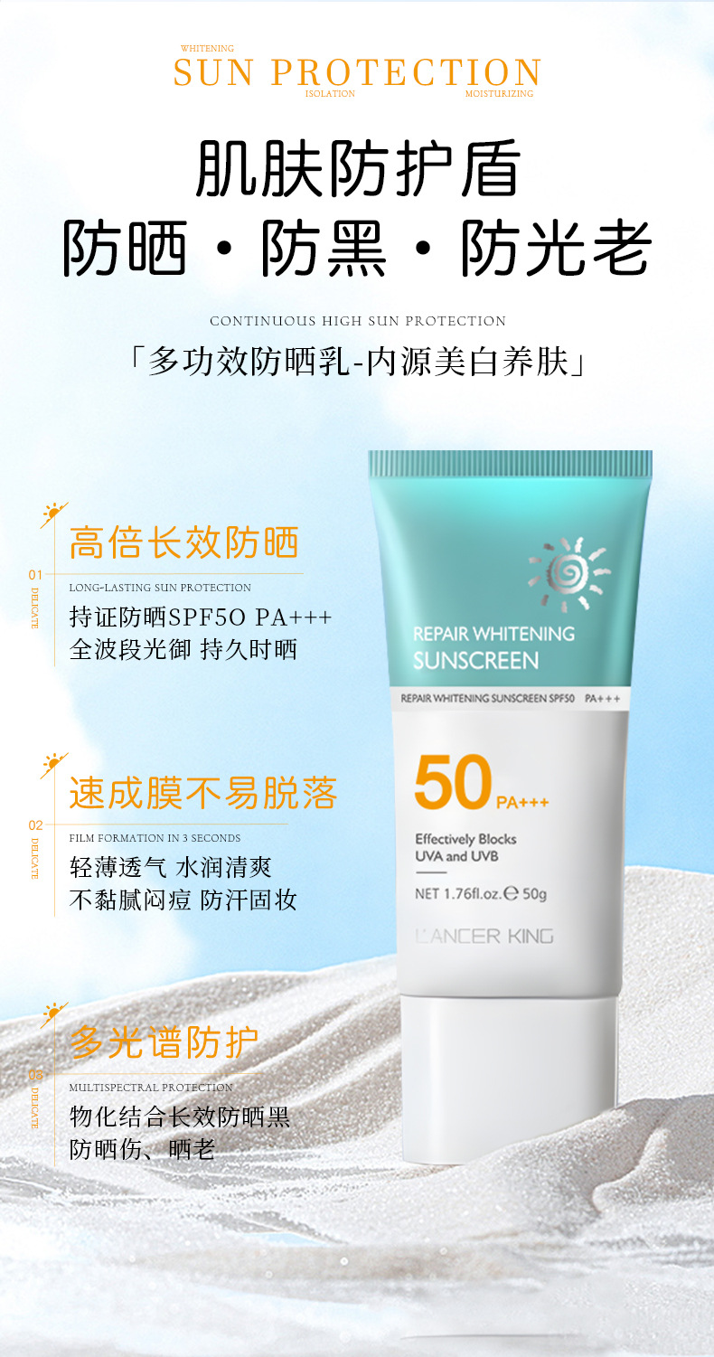 高倍防晒[劲爆价!49发3瓶】LK防晒霜50+++正品不假白 清爽保湿不油腻提亮肤色女士防晒乳