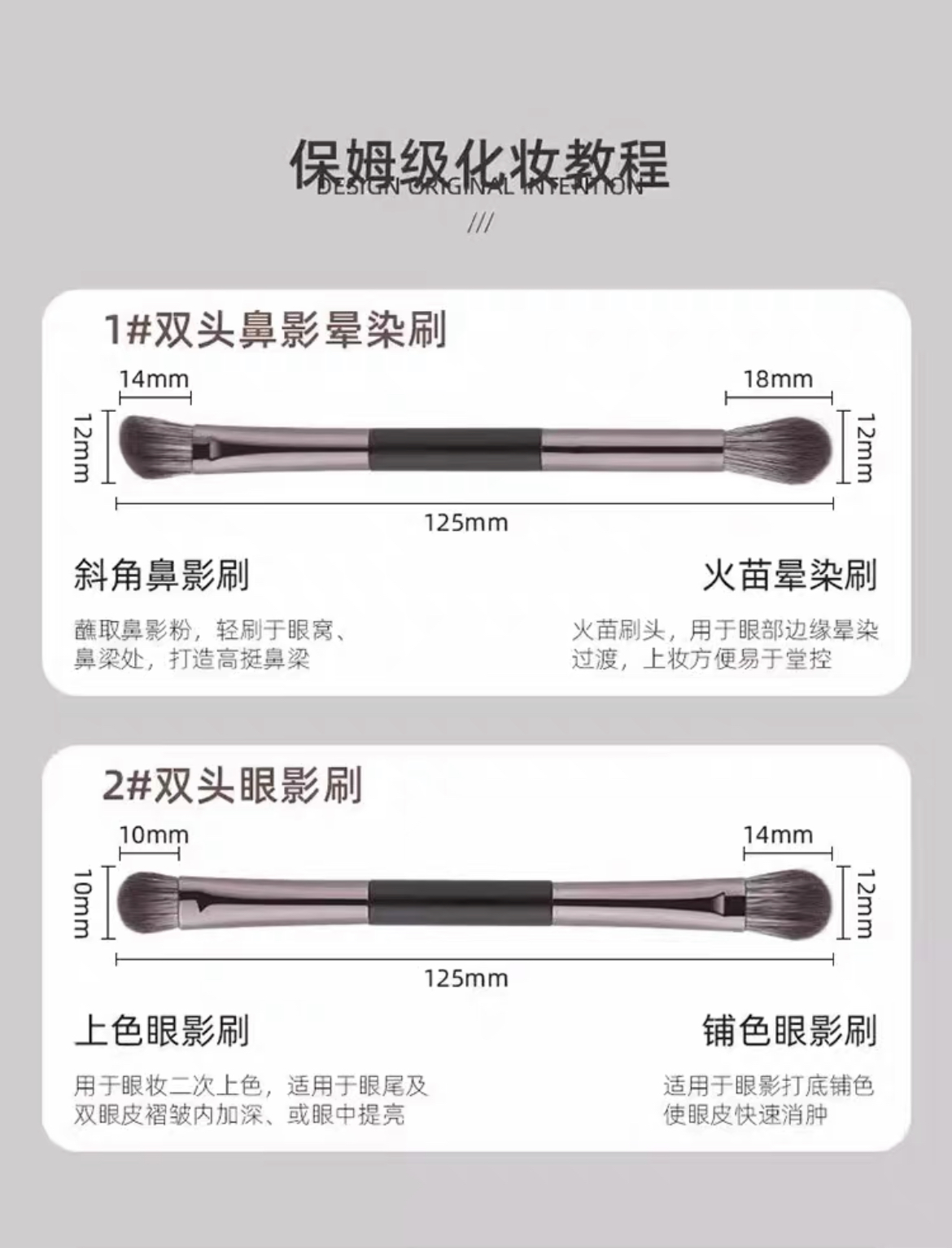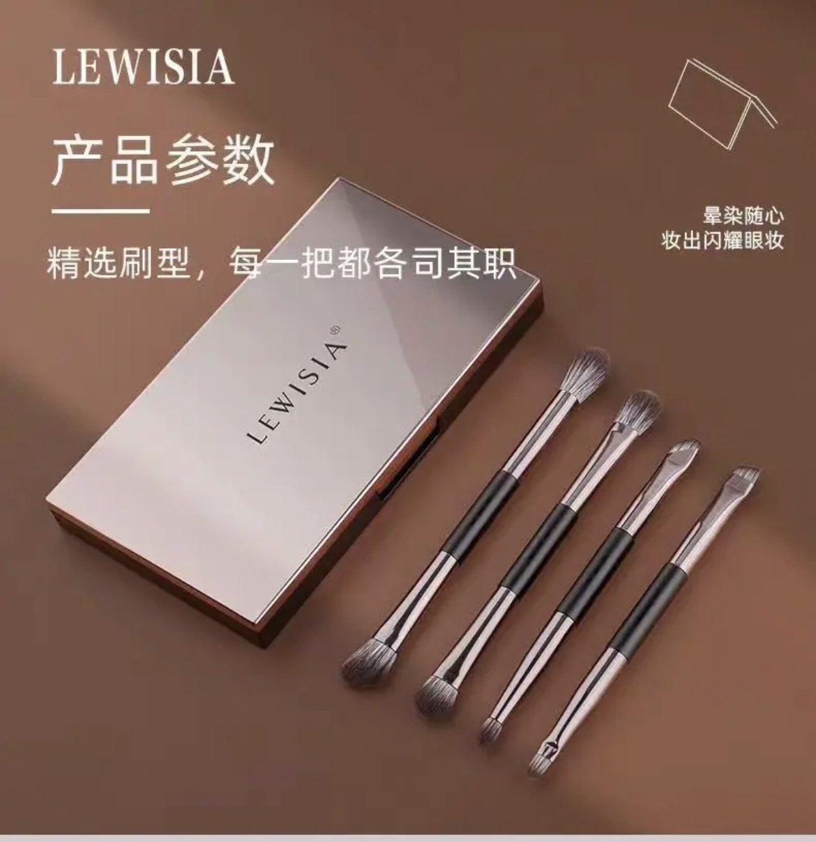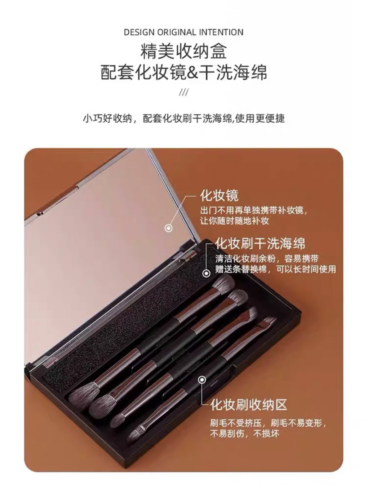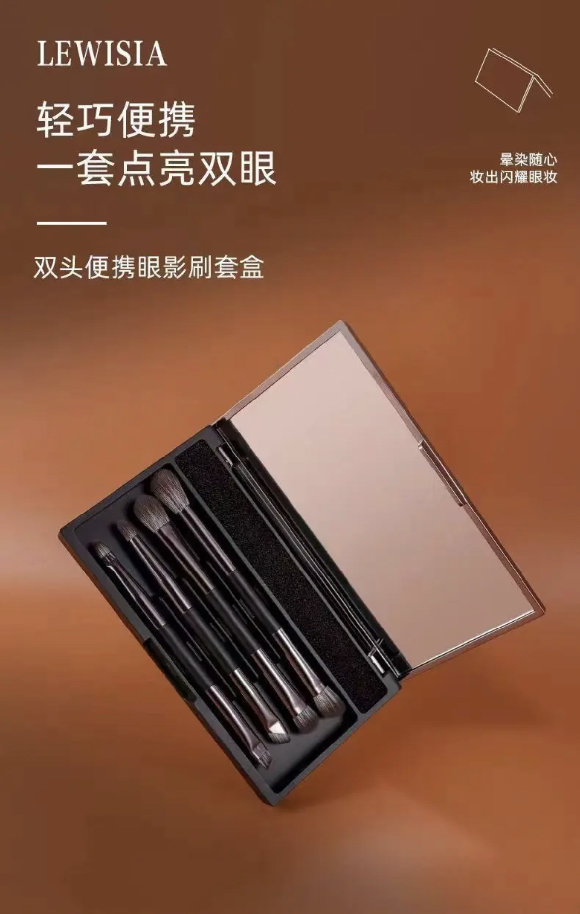 【出门就带这一套】爆款露薇雅化妆刷4支装8种刷头带小镜子 双头眼影刷套盒便携款眼影刷套刷