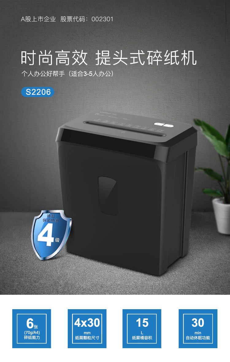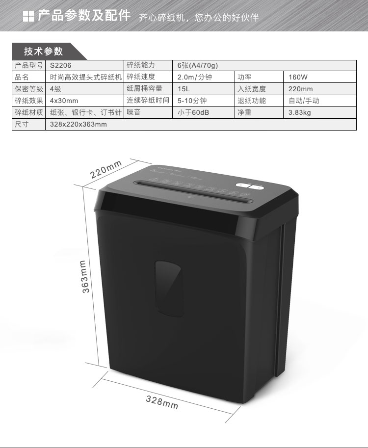 齐心 S2206 时尚高效系列提头式碎纸机