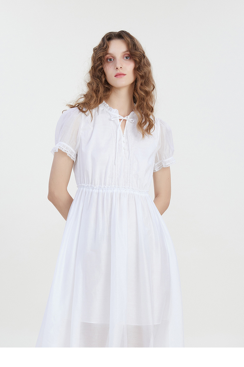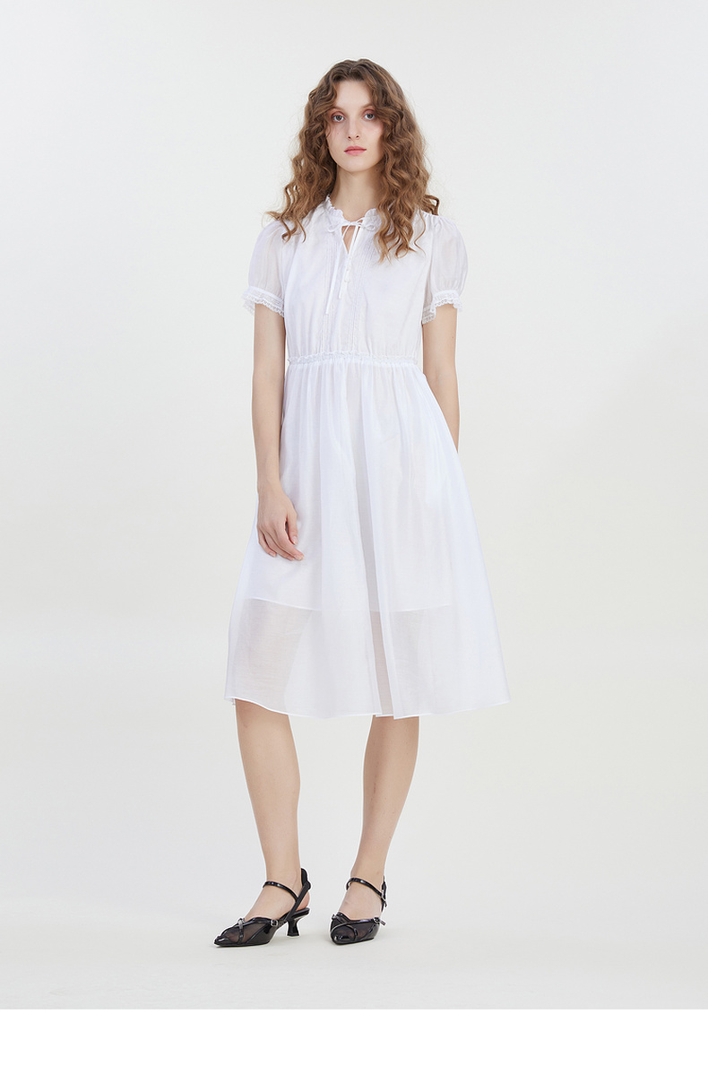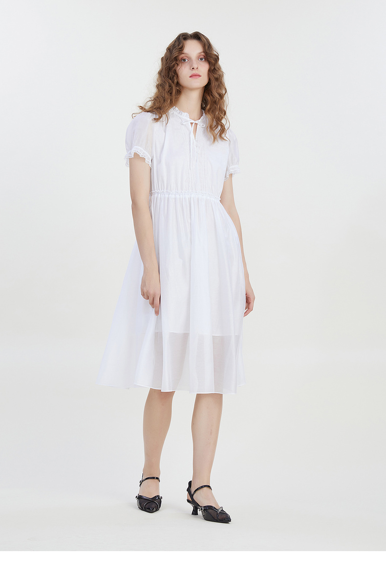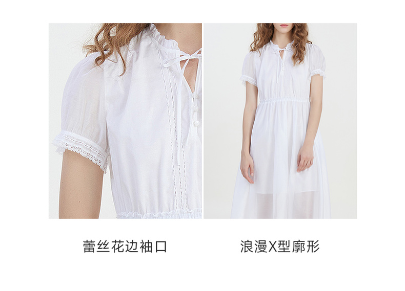 谜底2023夏新款荷叶领小白裙短袖甜美温柔中长款连衣裙232ML0650