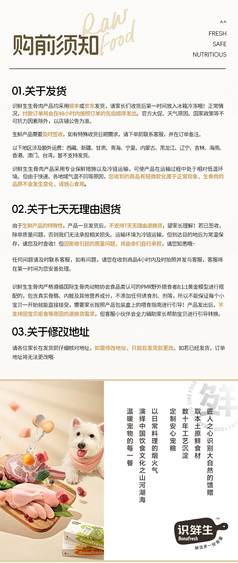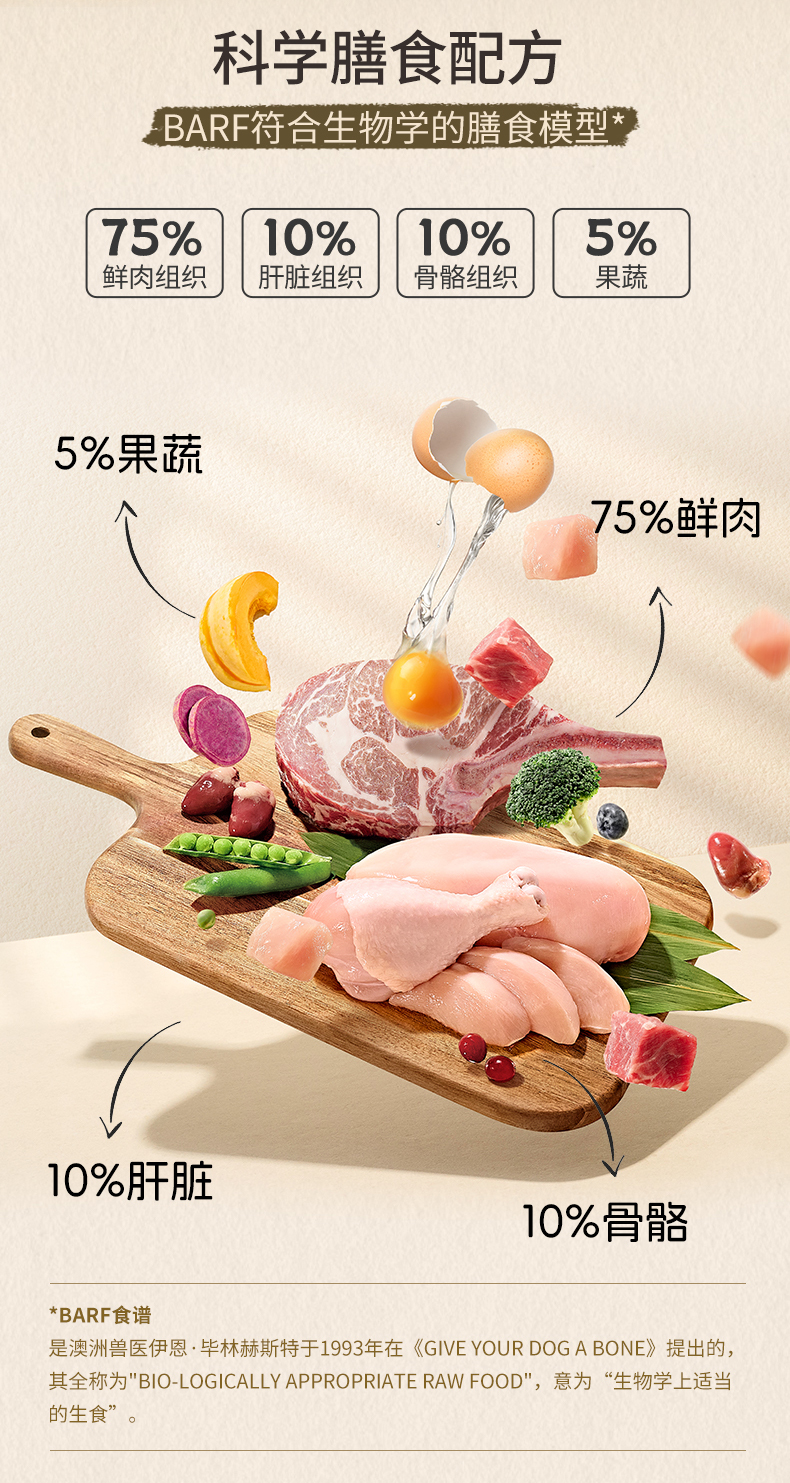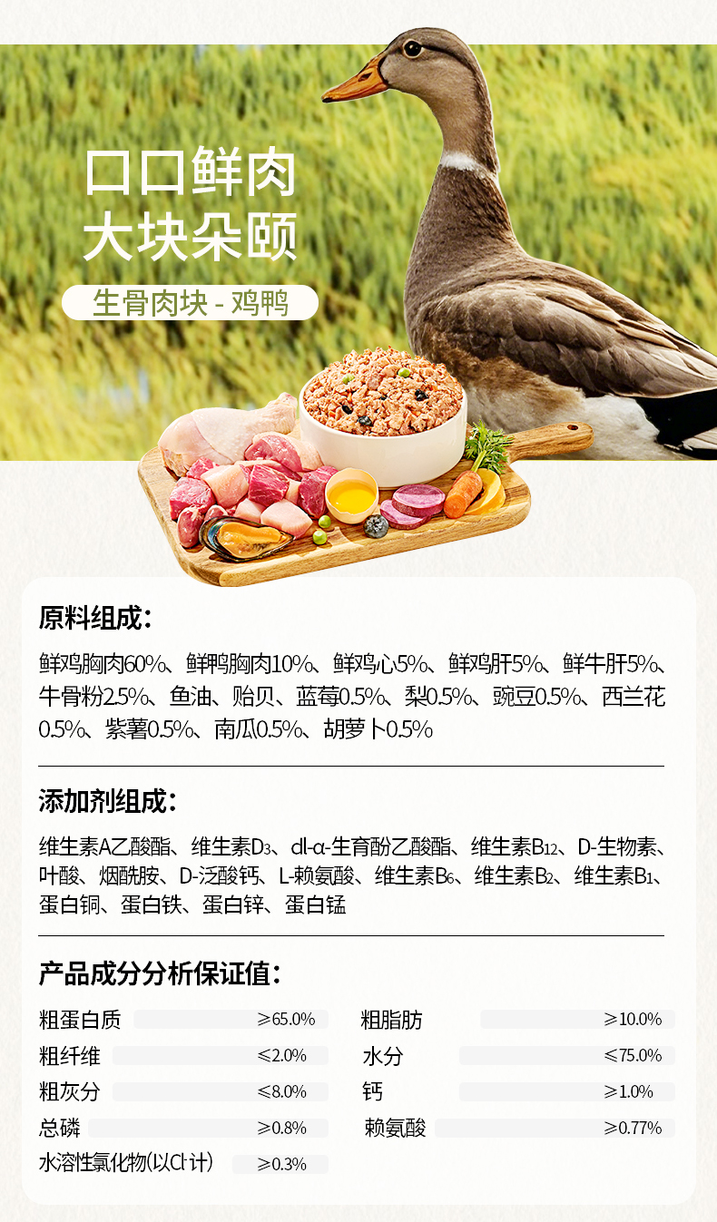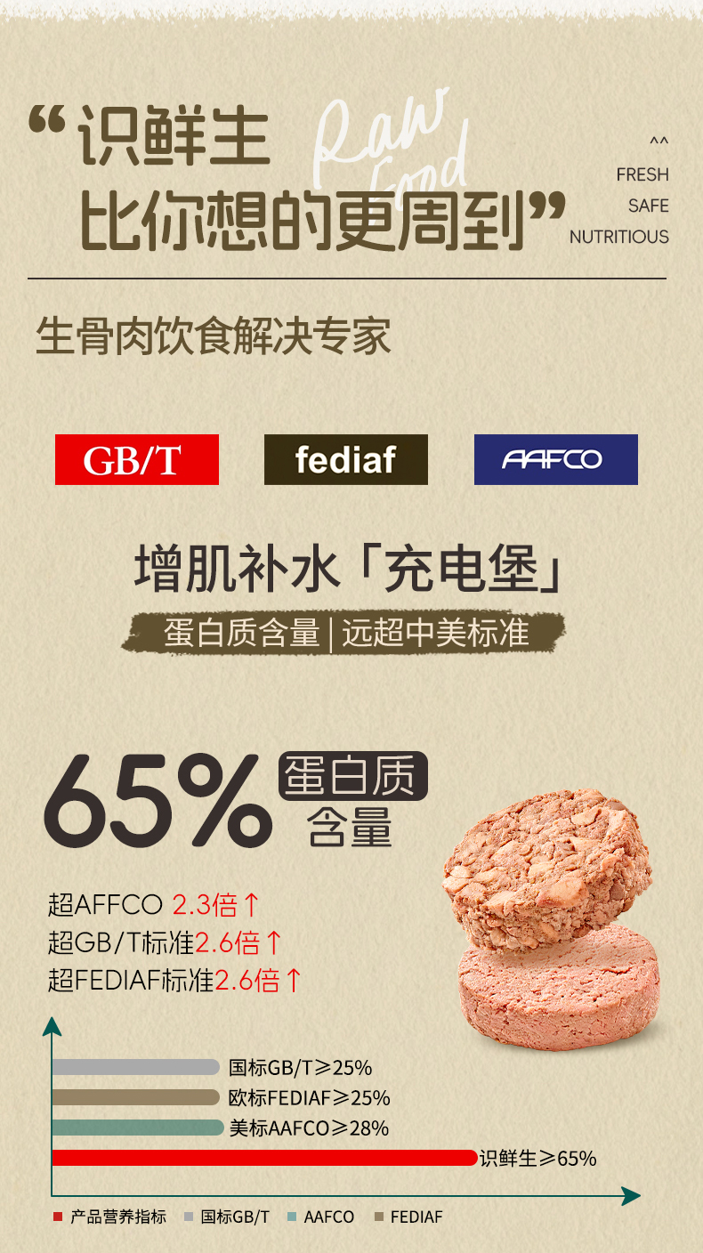 识鲜生全价犬用生骨肉块鸡肉鸭肉75g*9/盒