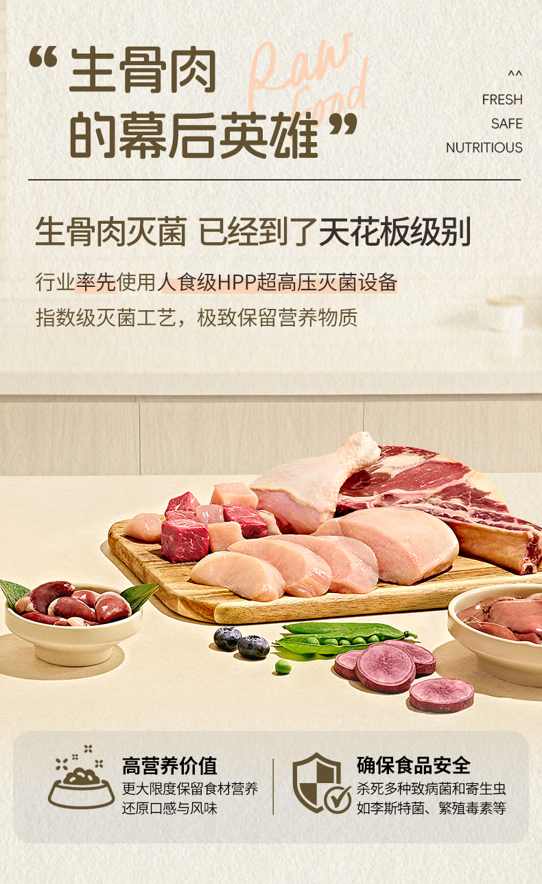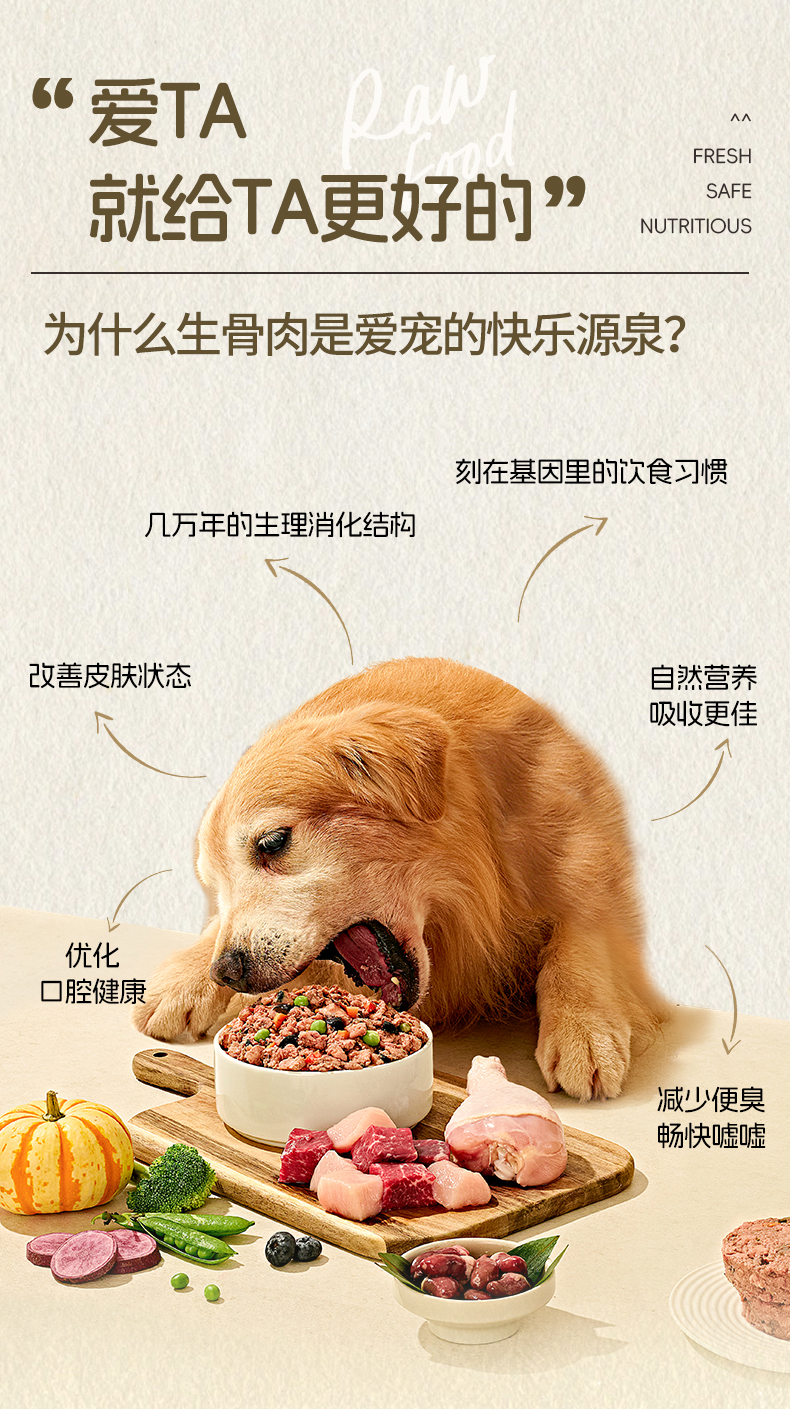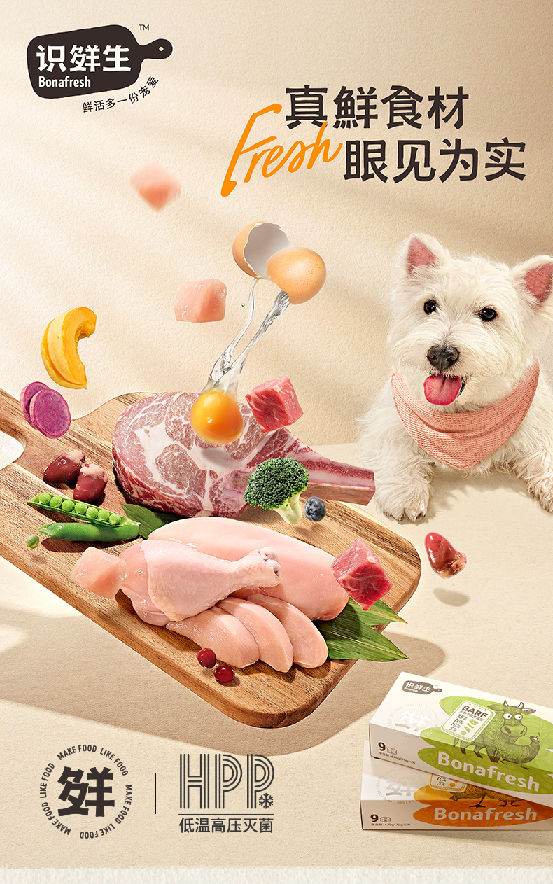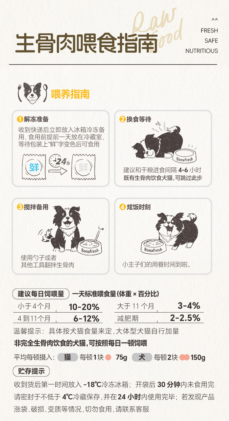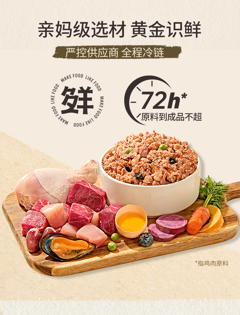 识鲜生全价犬用生骨肉块鸡肉鸭肉75g*9/盒