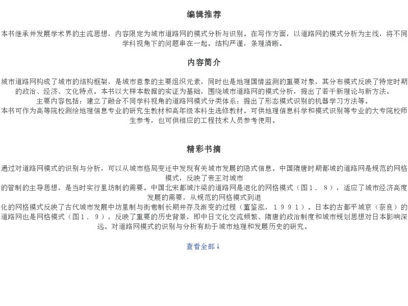 《城市道路网模式识别与分析的理论与方法》(田晶)