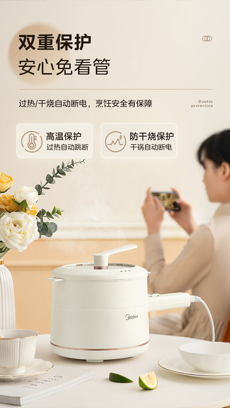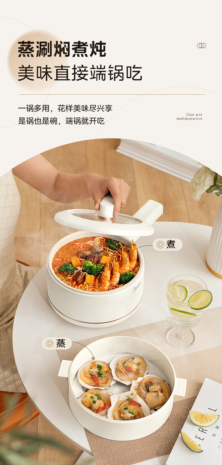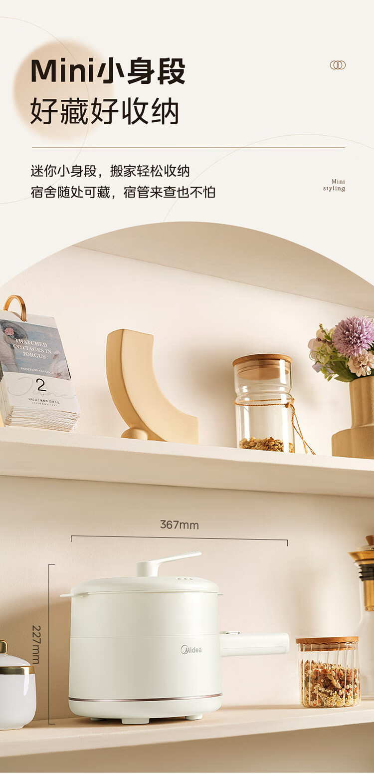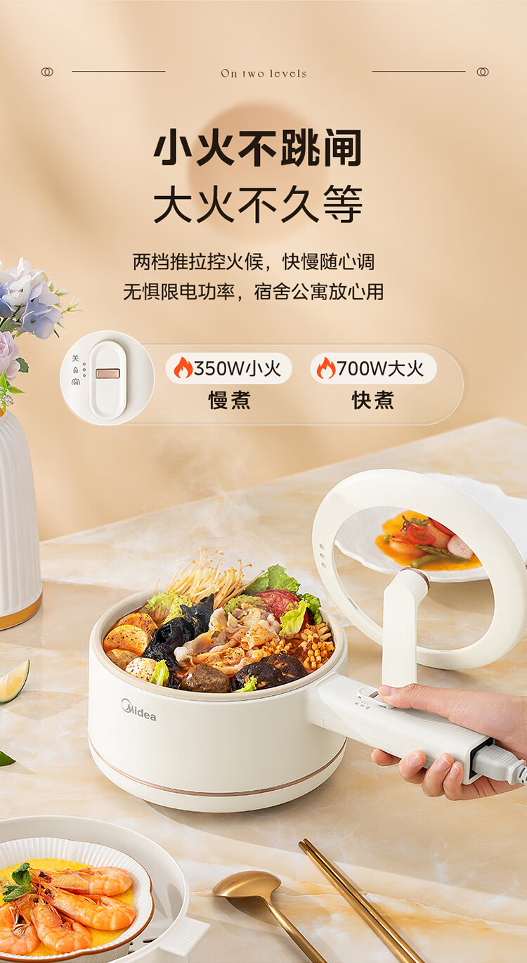 美的 多功能家用一人食电煮锅MC-XZE2007 蒸煮一体 自由控温