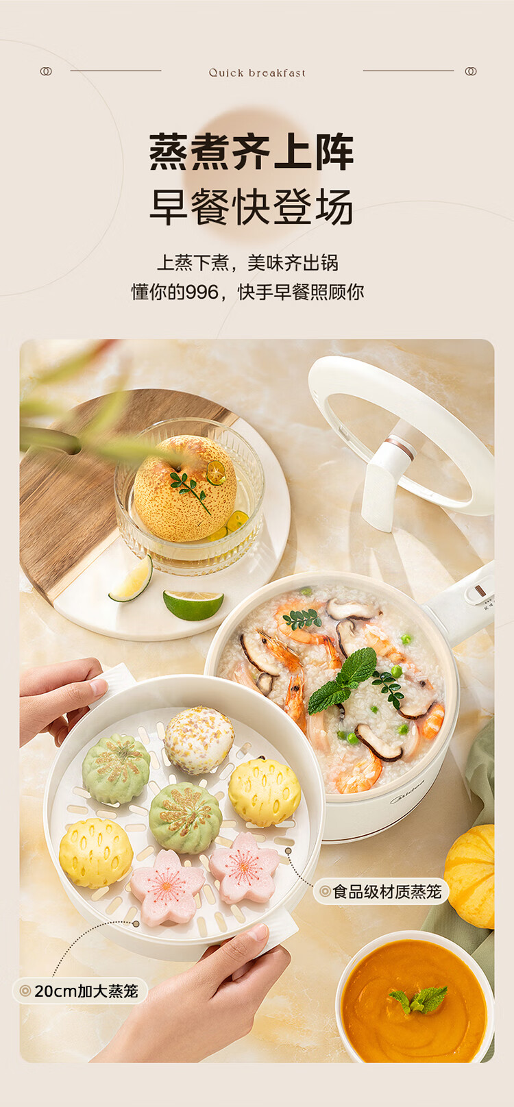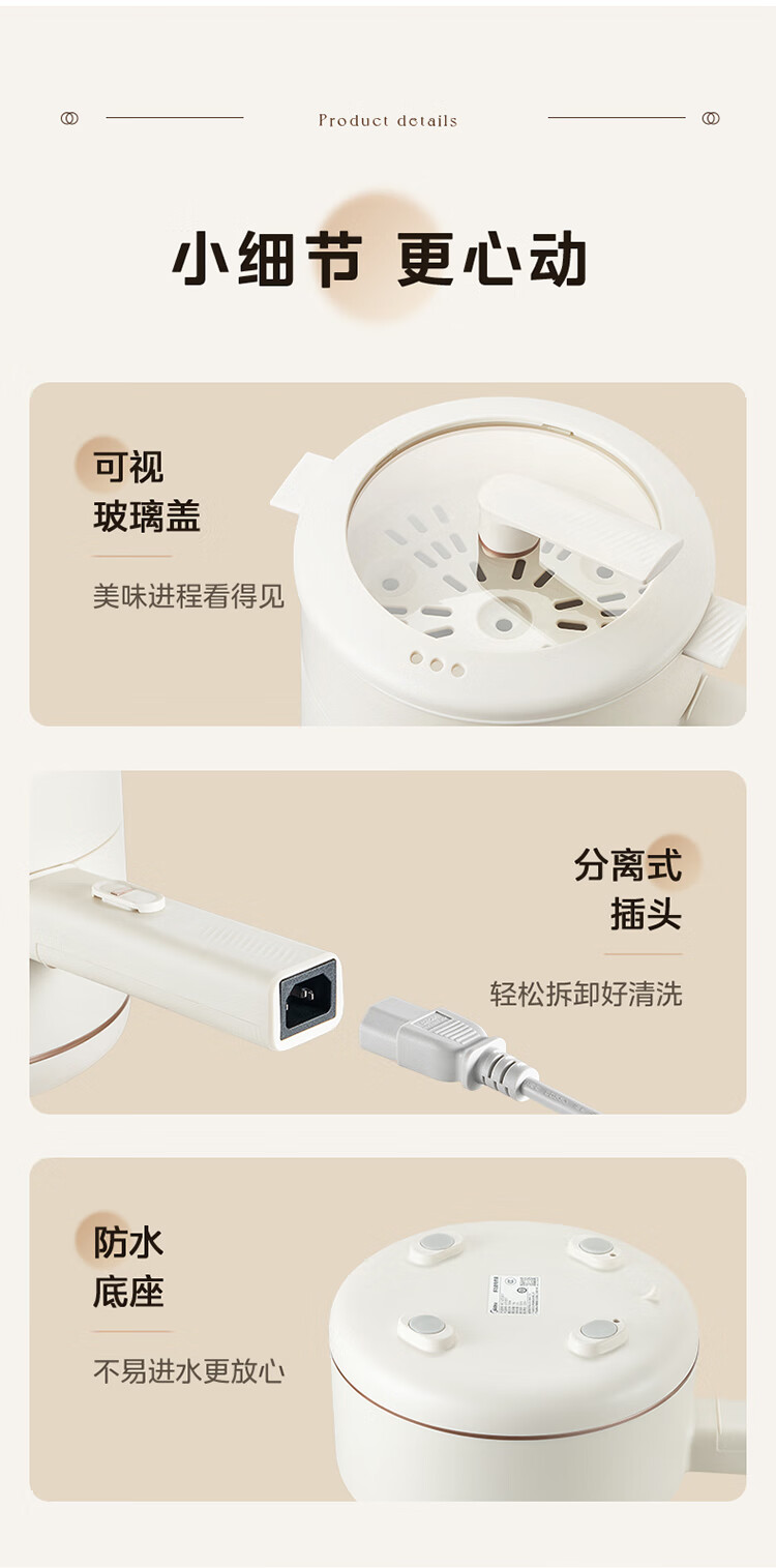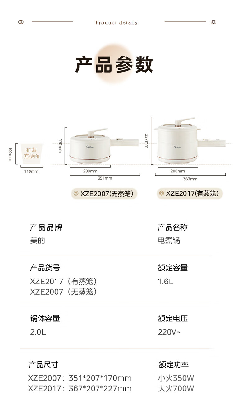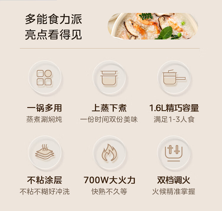 美的 多功能家用一人食电煮锅MC-XZE2007 蒸煮一体 自由控温