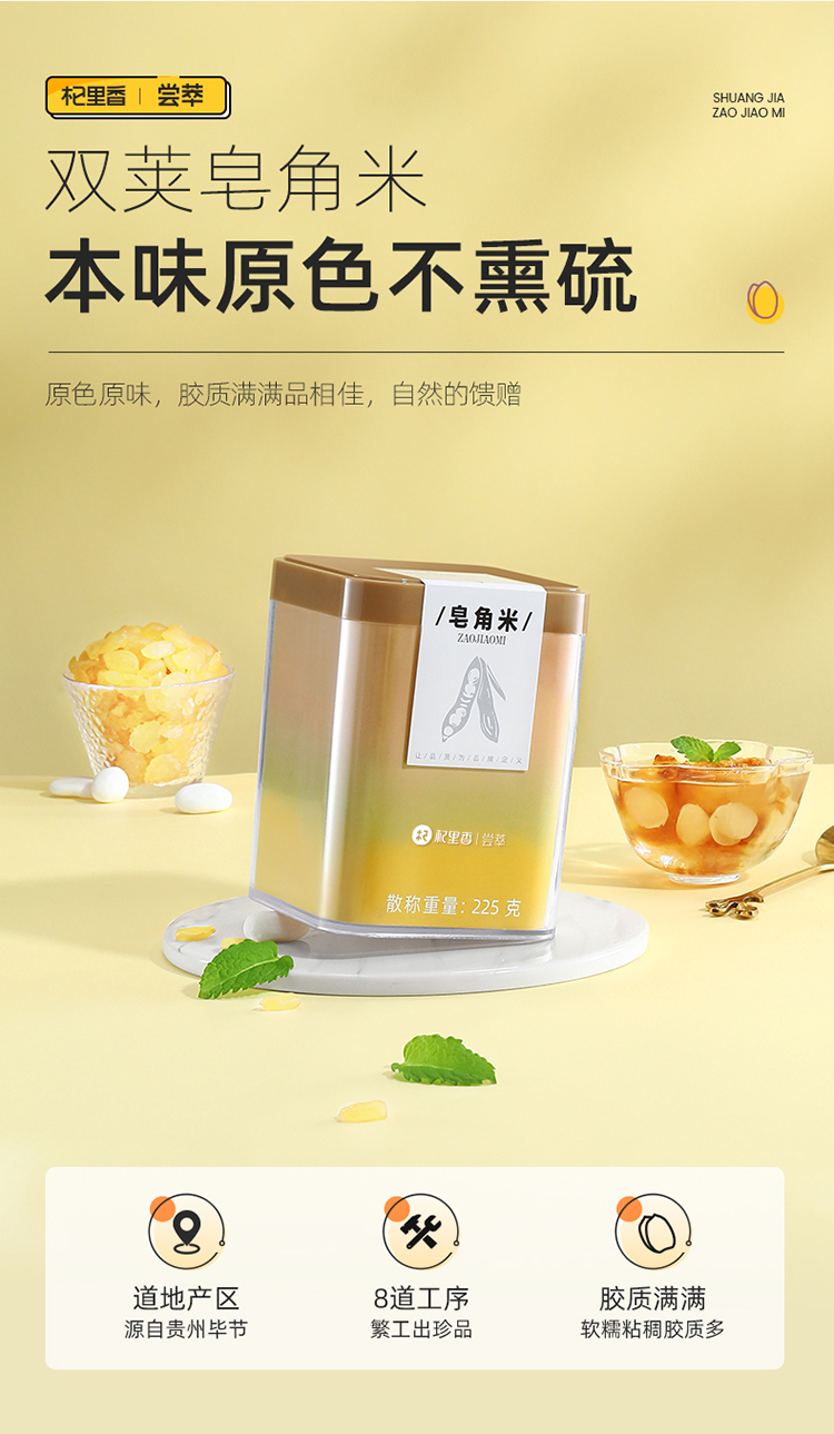 【杞里香双荚皂角米】贵州毕节皂米角60g 100g 225g精挑手剥 胶质浓稠 粒粒晶莹