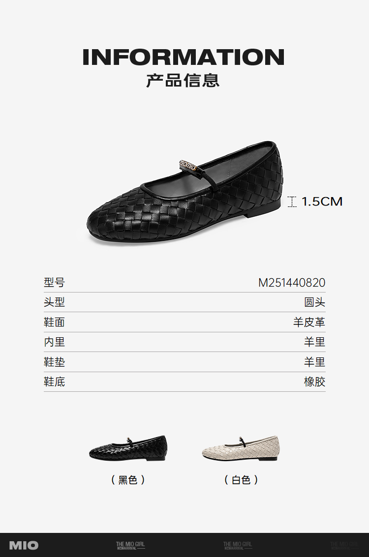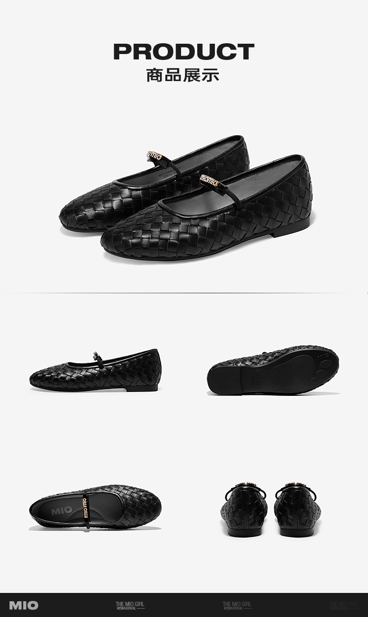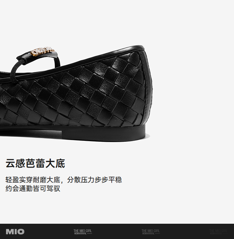 MIO米奥优雅简约玛丽珍鞋羊皮编织松紧带舒适平跟鞋M251440820