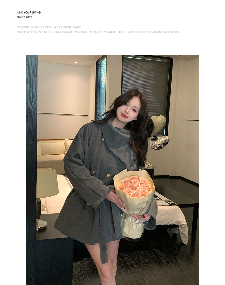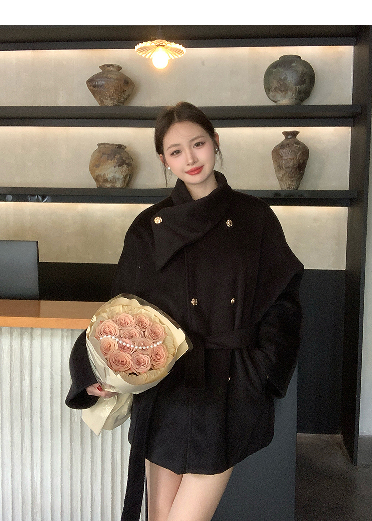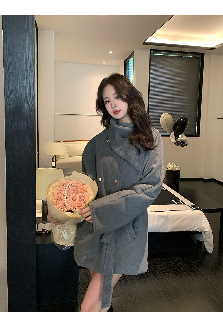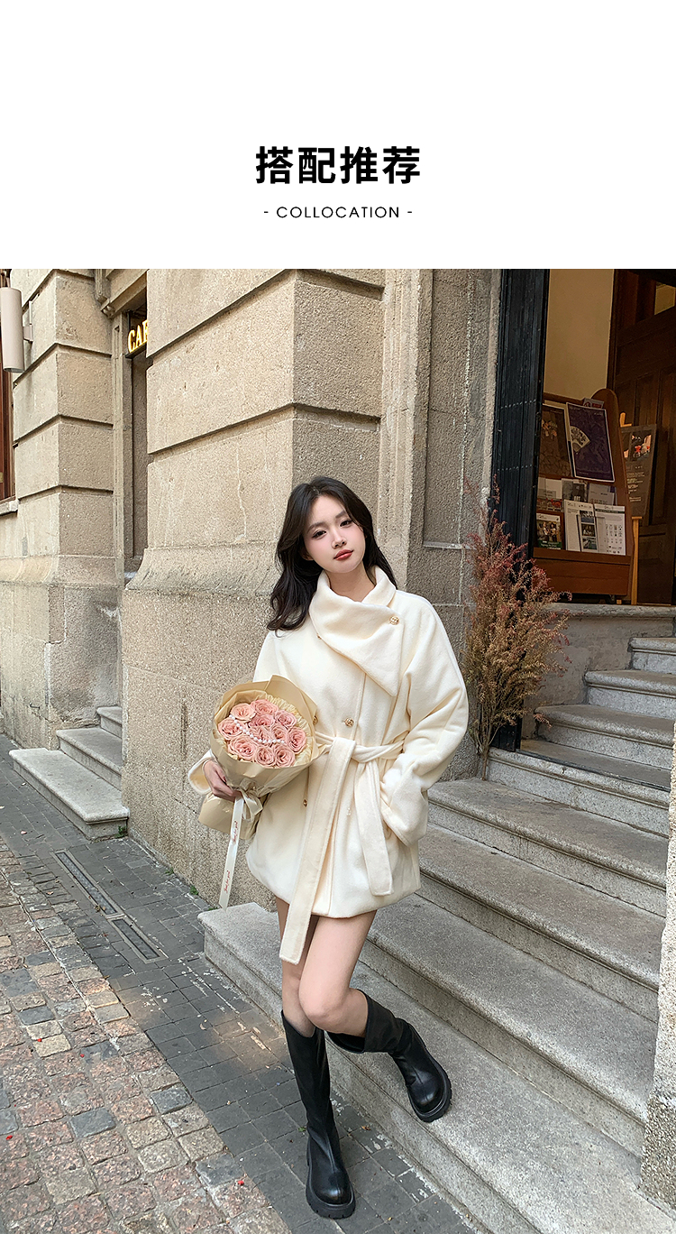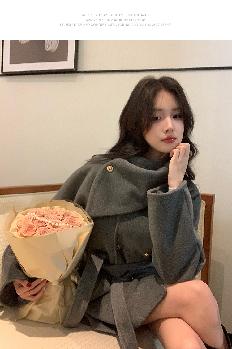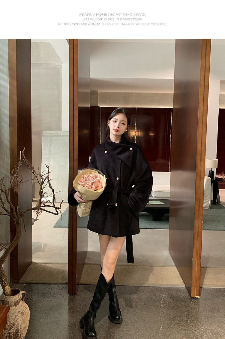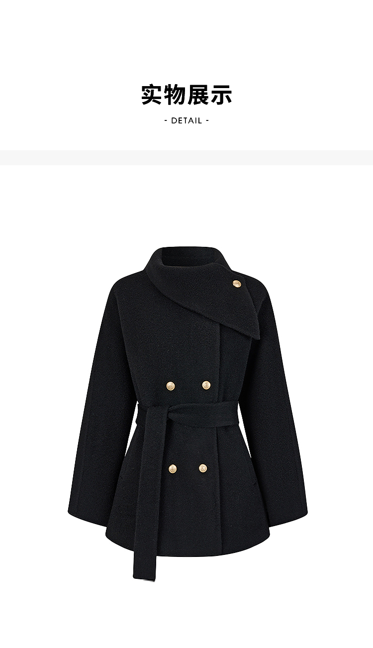 西遇高领短款毛呢外套女冬季新款富家千金收腰双排扣大衣SS141375/SS141376