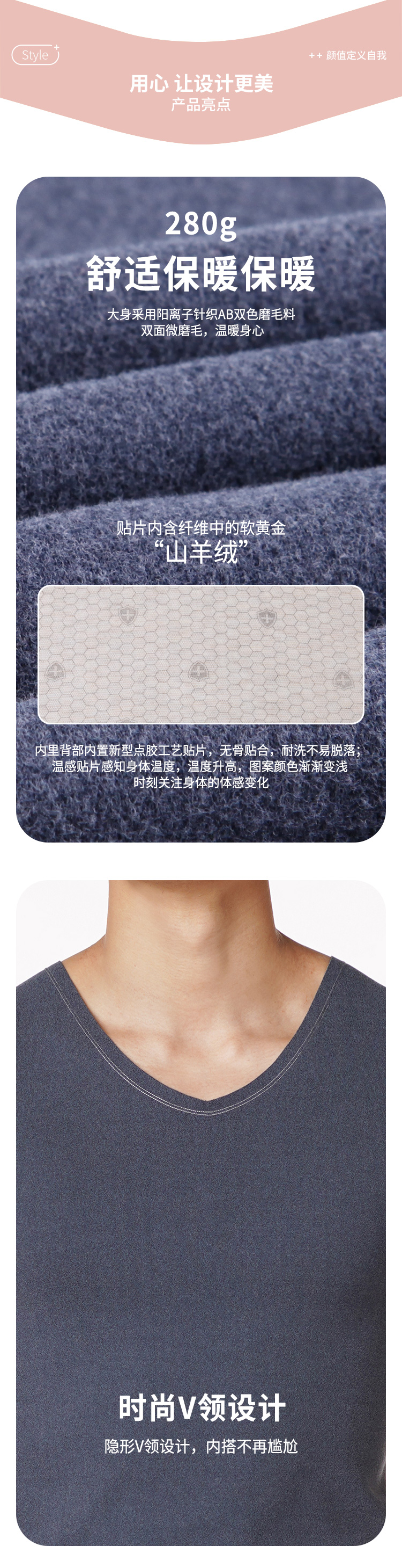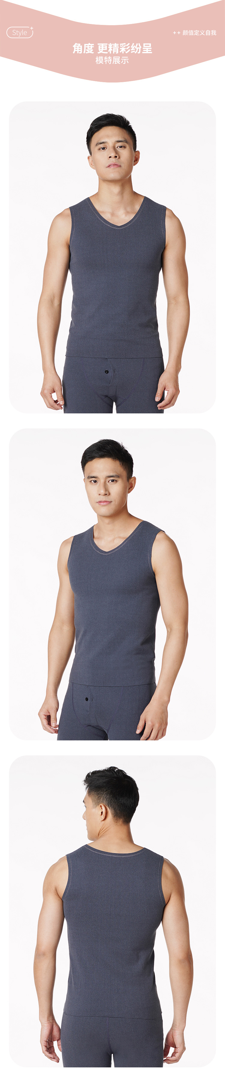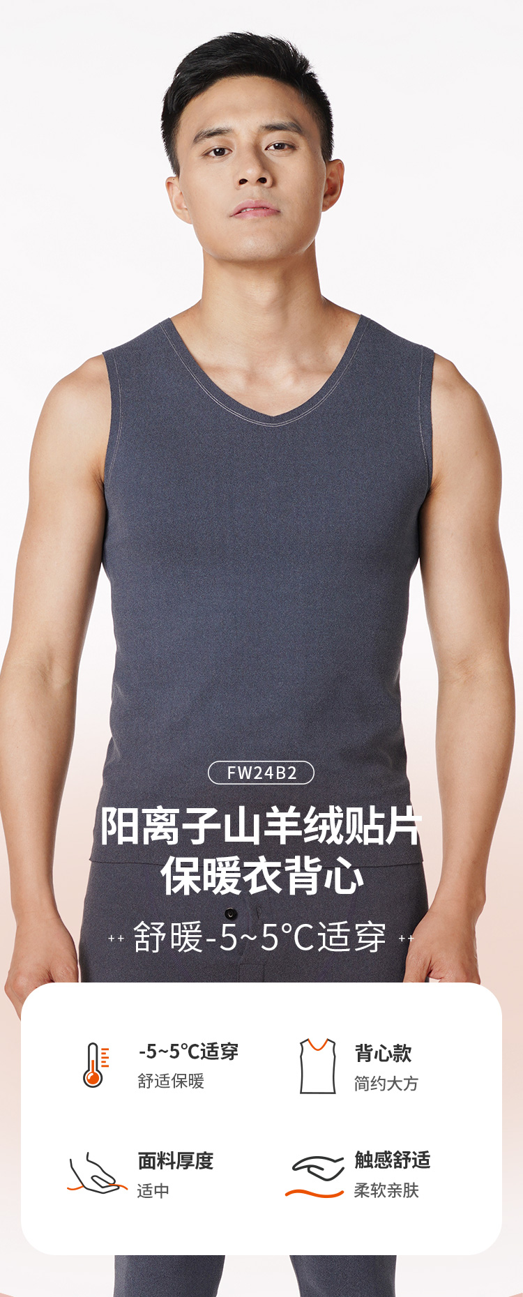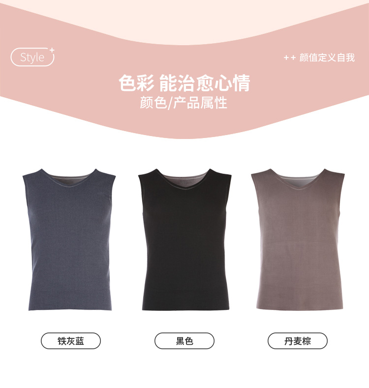 都市丽人都市锋尚舒暖负5度至5度男士保暖背心阳离子山羊绒贴片中背心保暖衣FW24B2