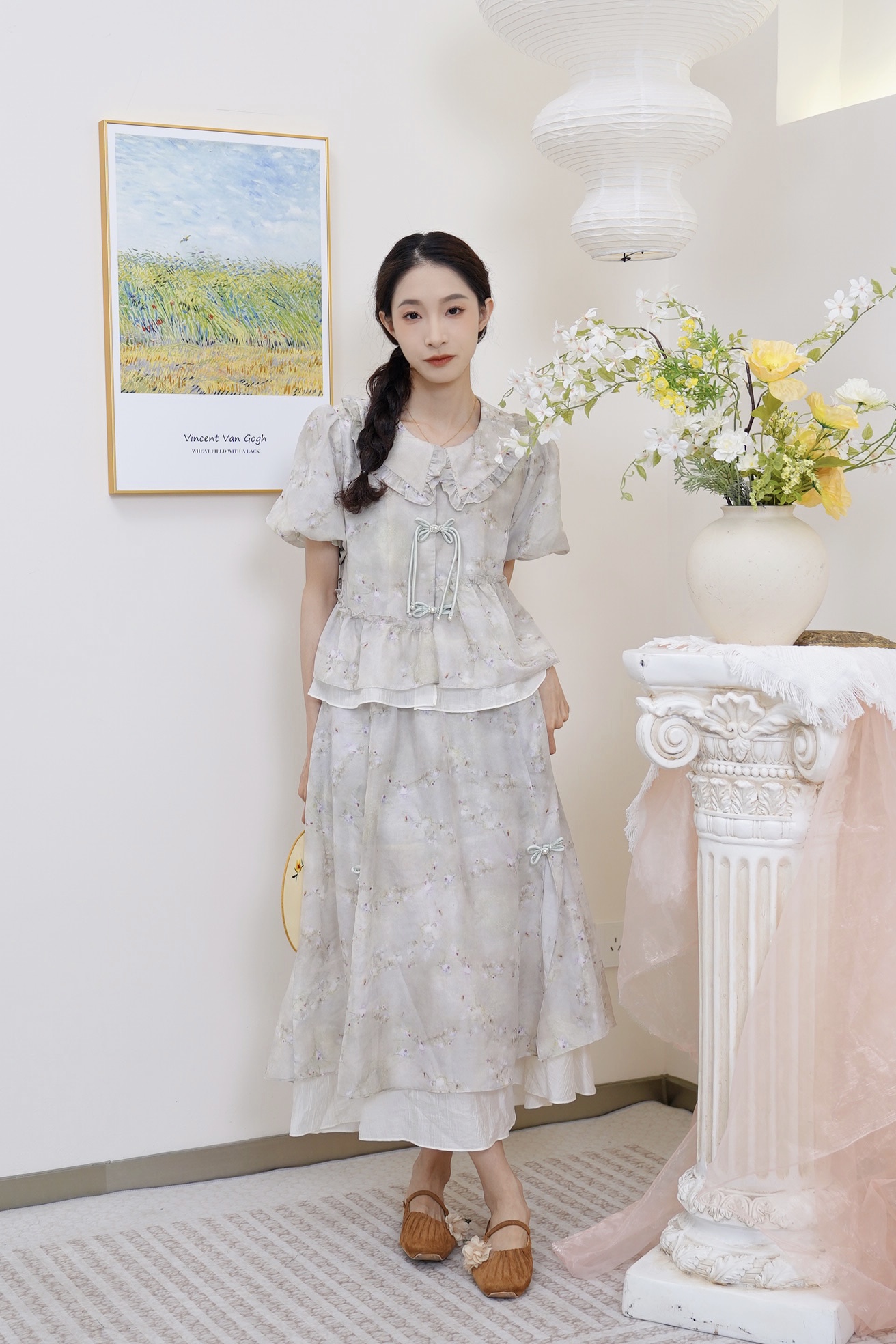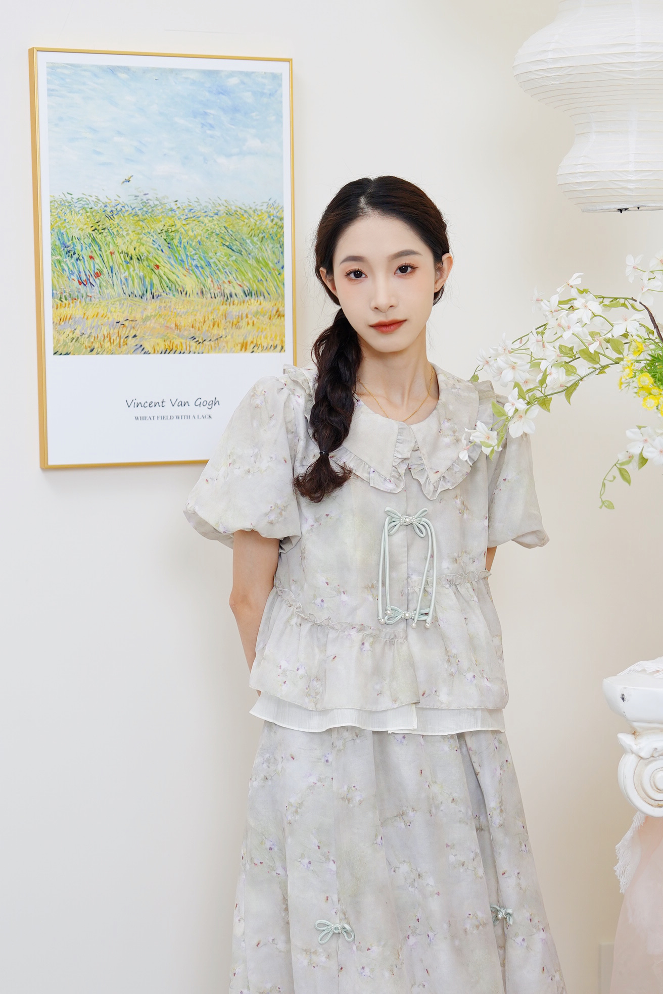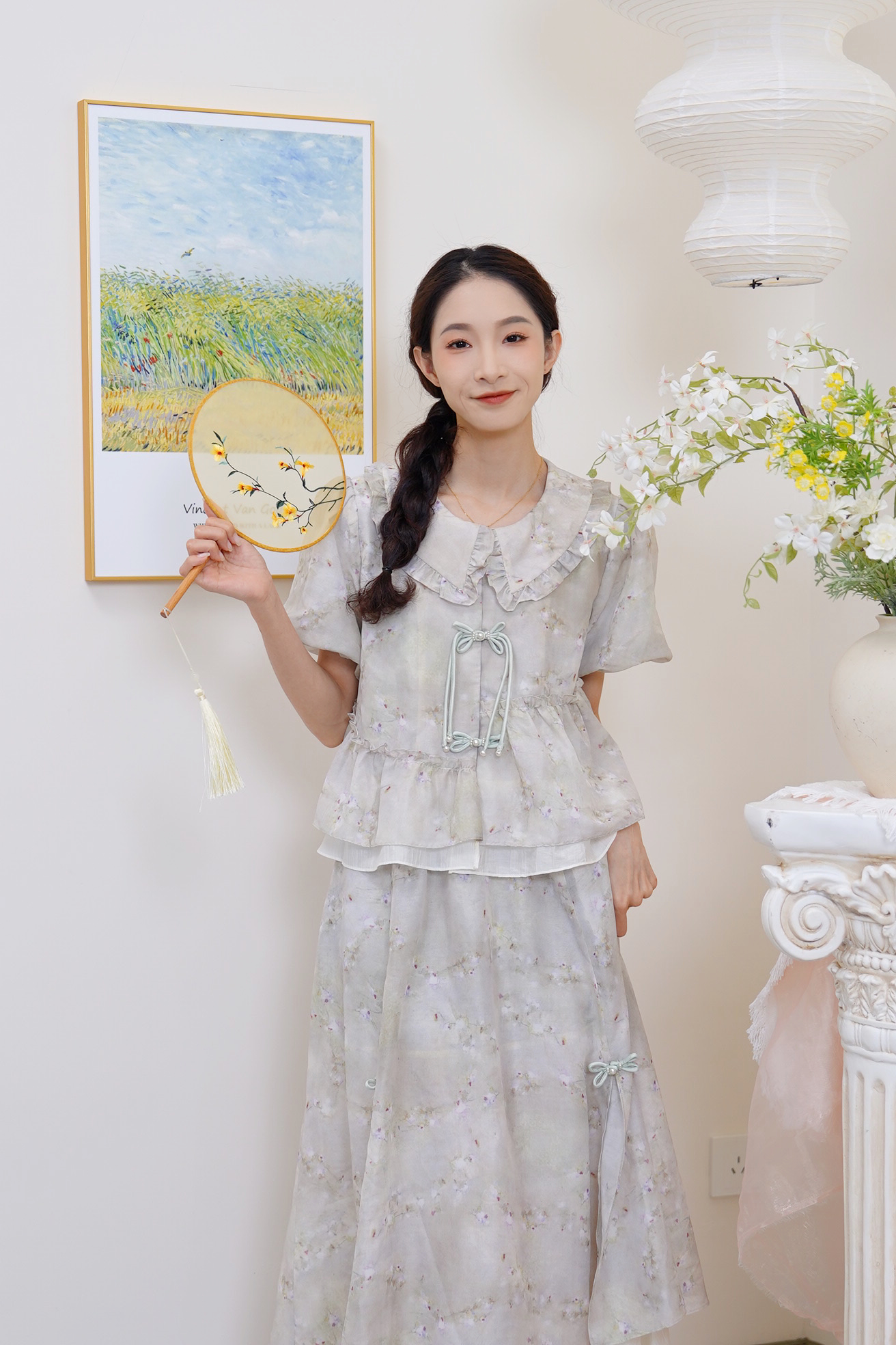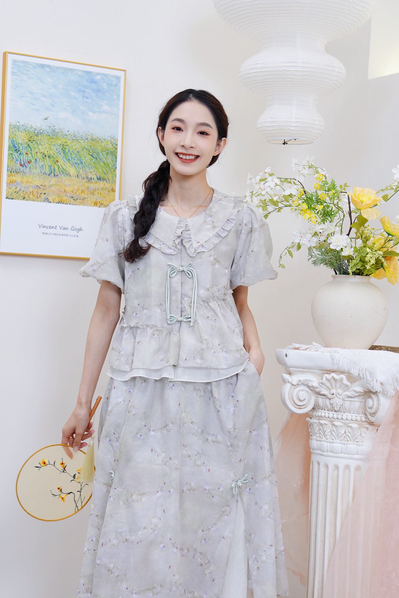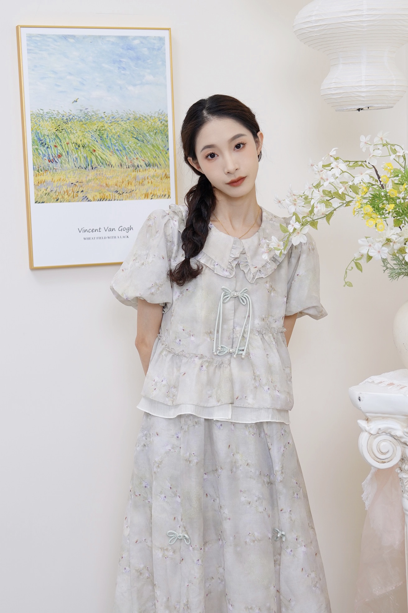 两三事漫漫度假风月夏季娃娃领甜美母亲节礼物国风时尚休闲套装