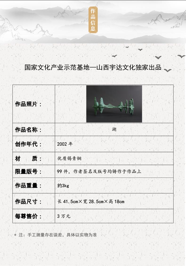 宇达青铜摆件 张伟作品《湖》限量99件 艺术摆件 长41.5cm
