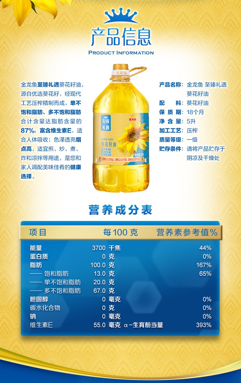 【自营】金龙鱼至臻礼遇葵花籽油5L