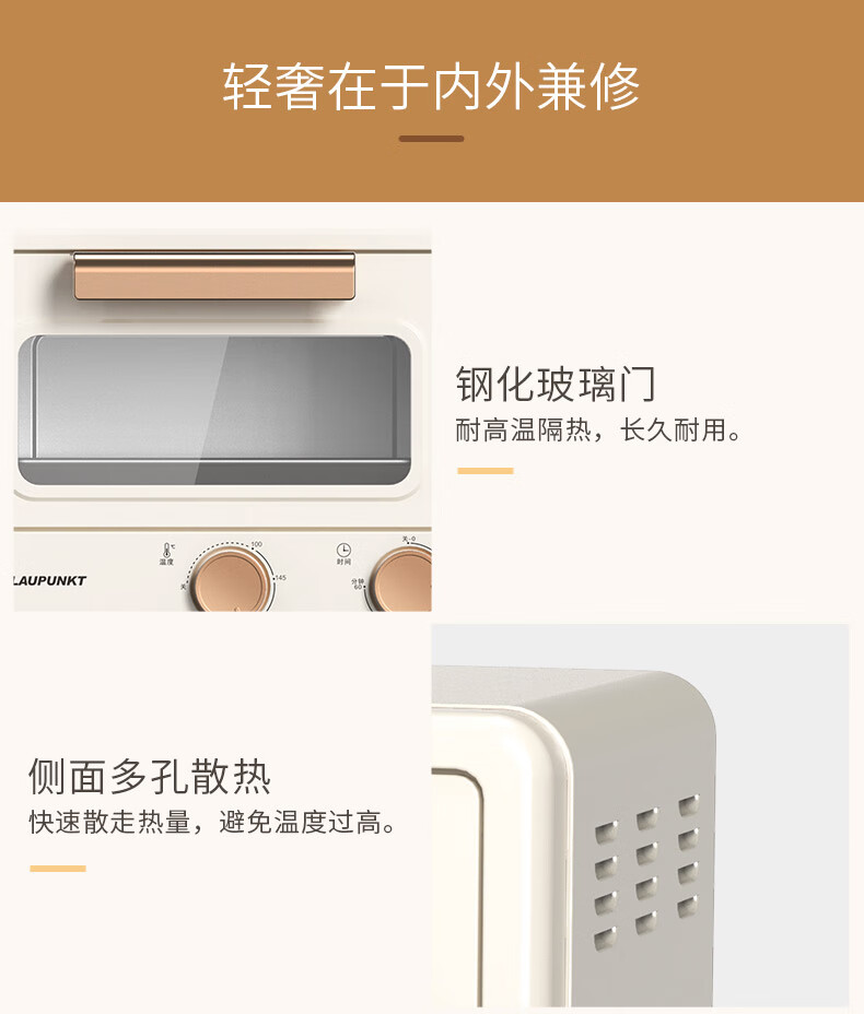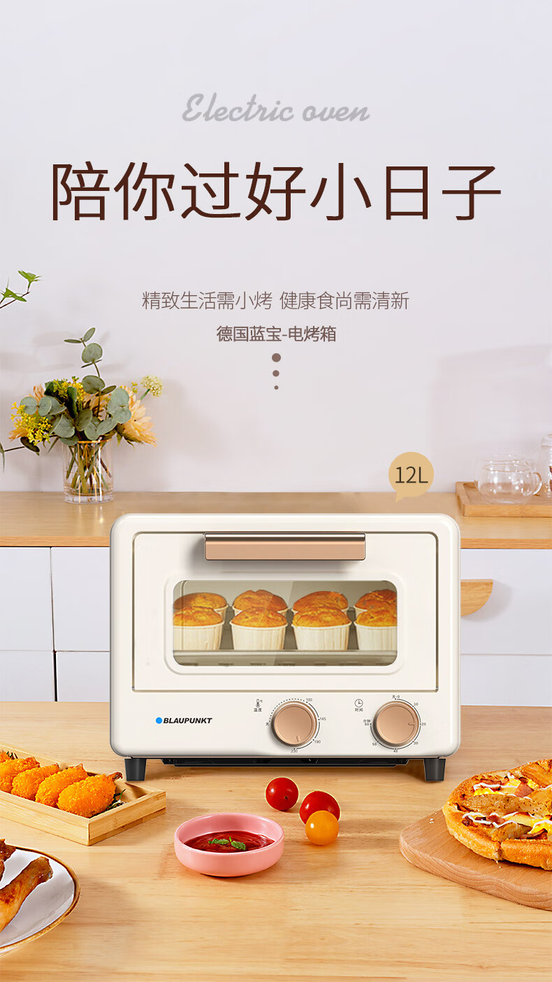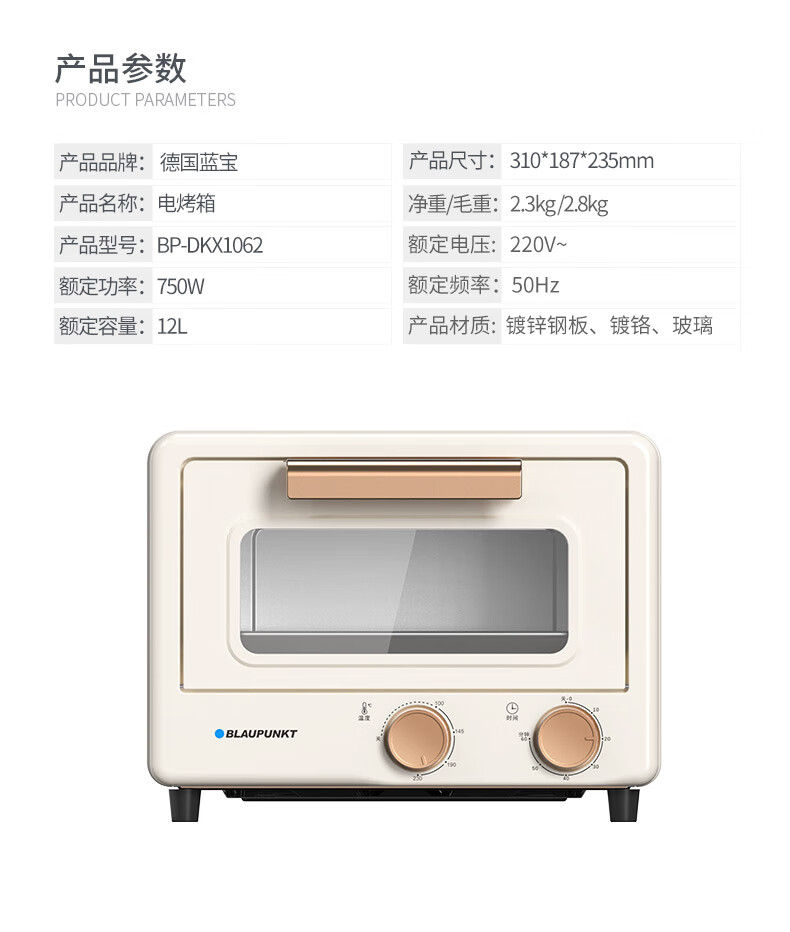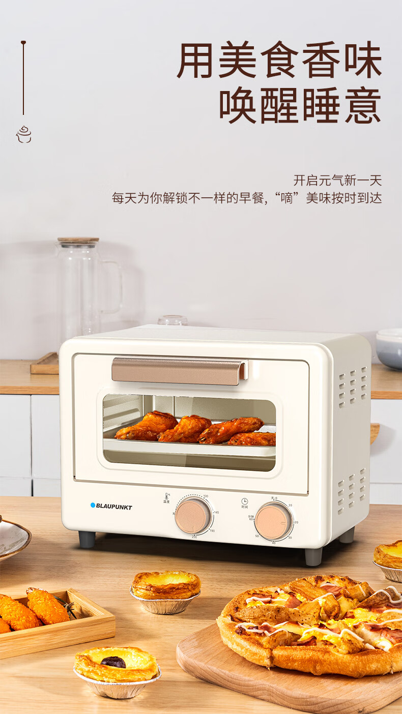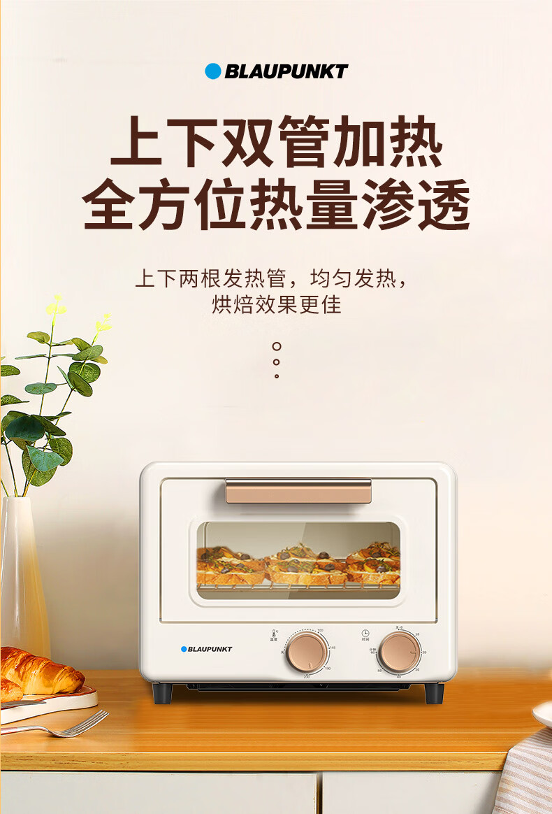 限时特惠-BLAUPUNKT 德国蓝宝 电烤箱 家用多功能迷你烤箱独立控温 旋钮式操作BP-DKX1062 小烤箱B 12L 容量