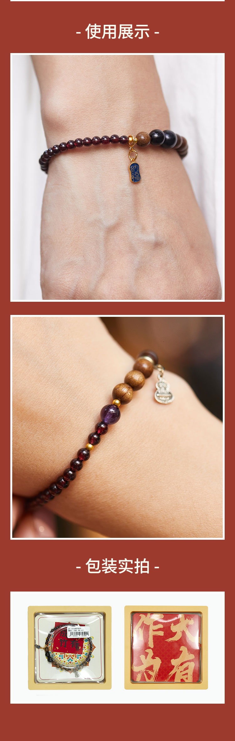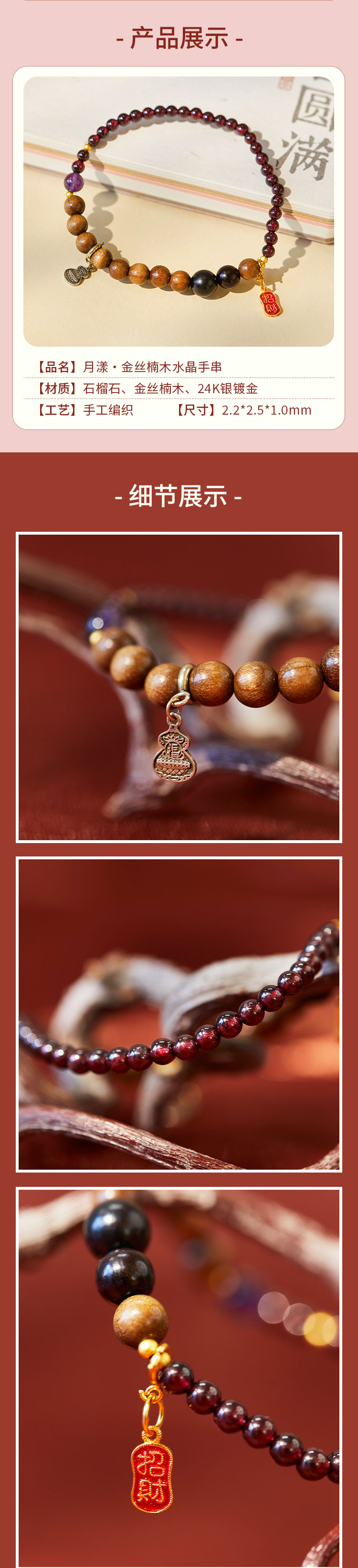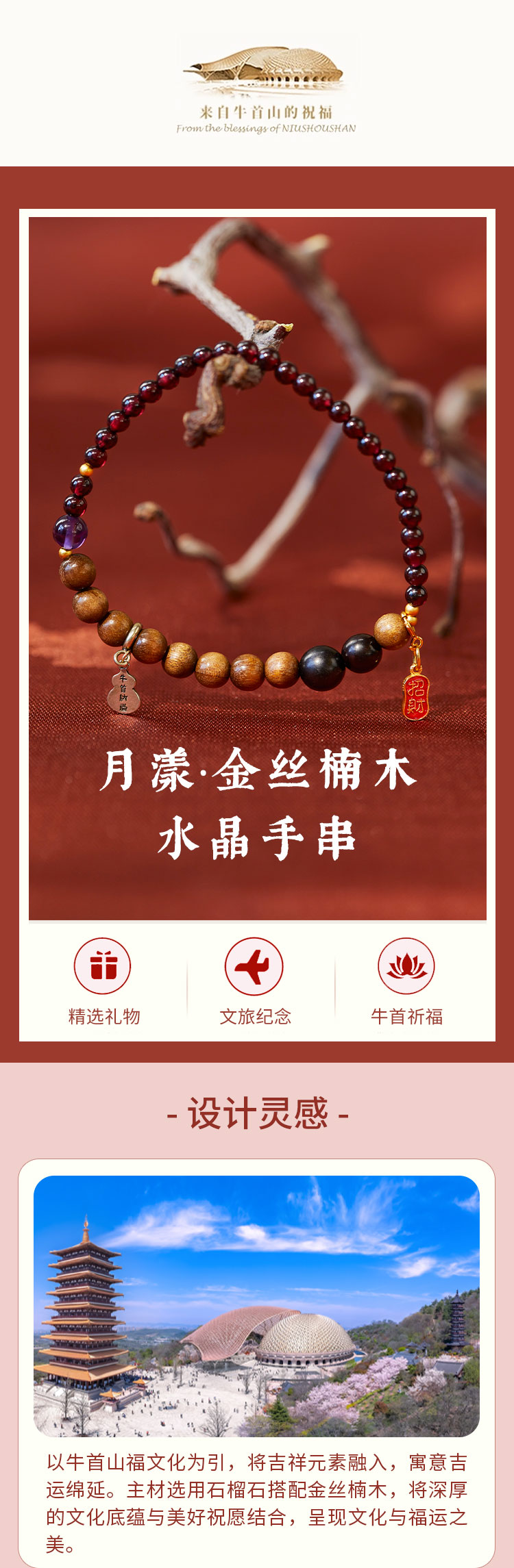 牛首山文创月漾·金丝楠木水晶手串精致国风单圈手串送女生礼物