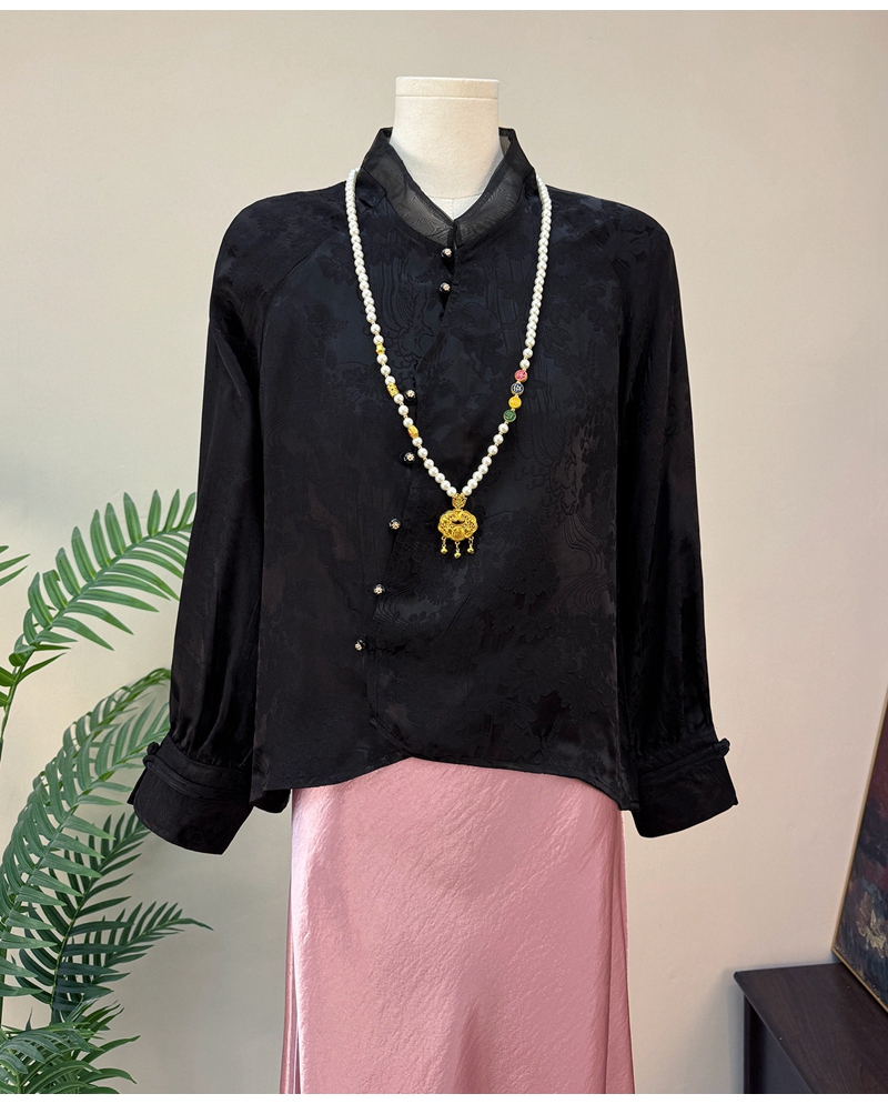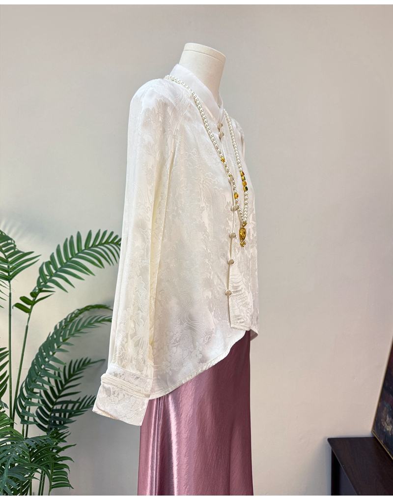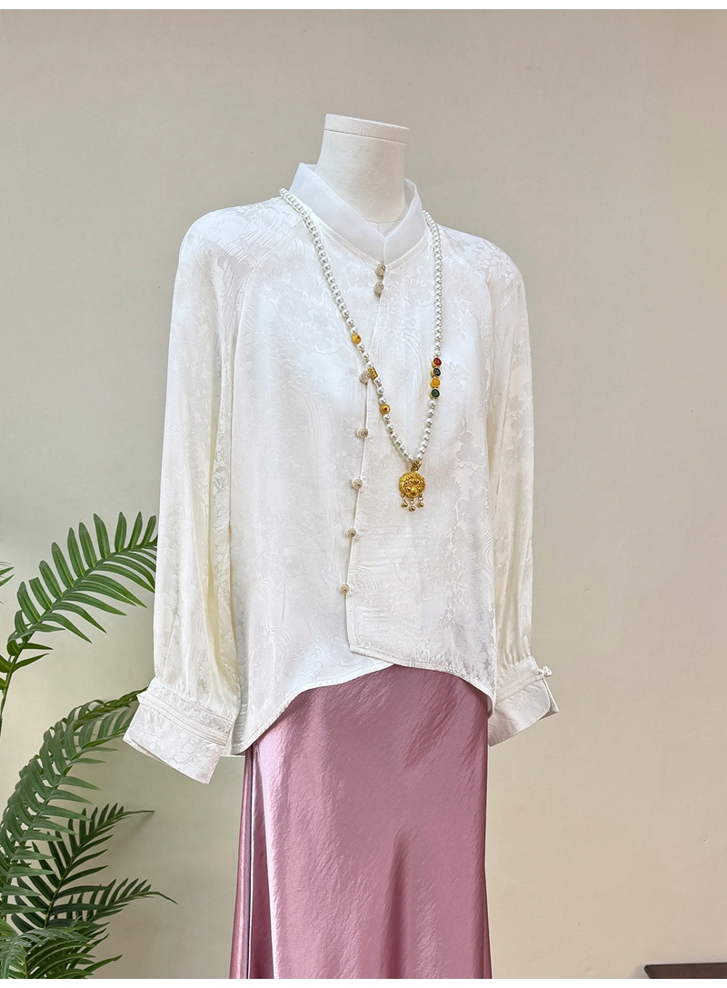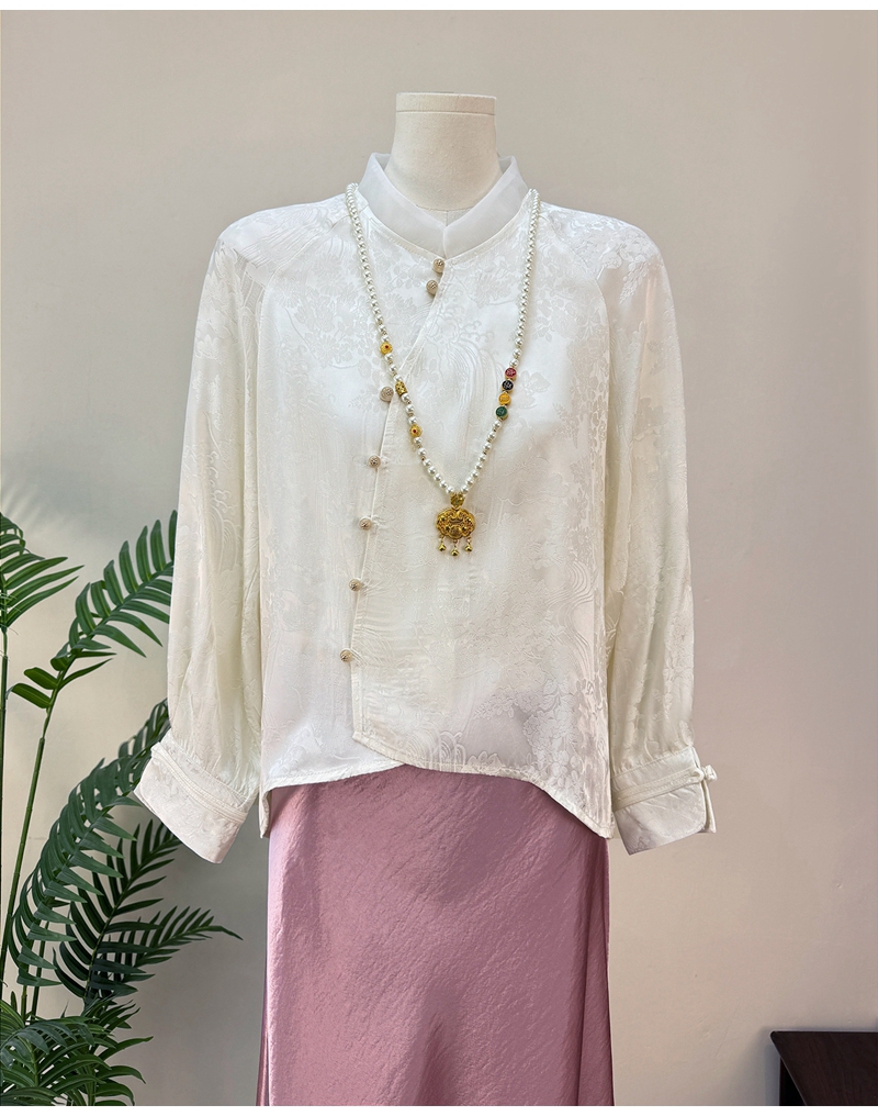 新中式提花斜襟立领长袖单排扣衬衫