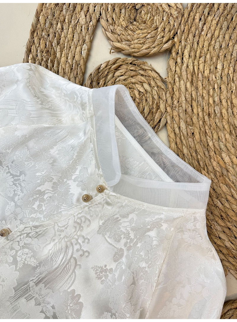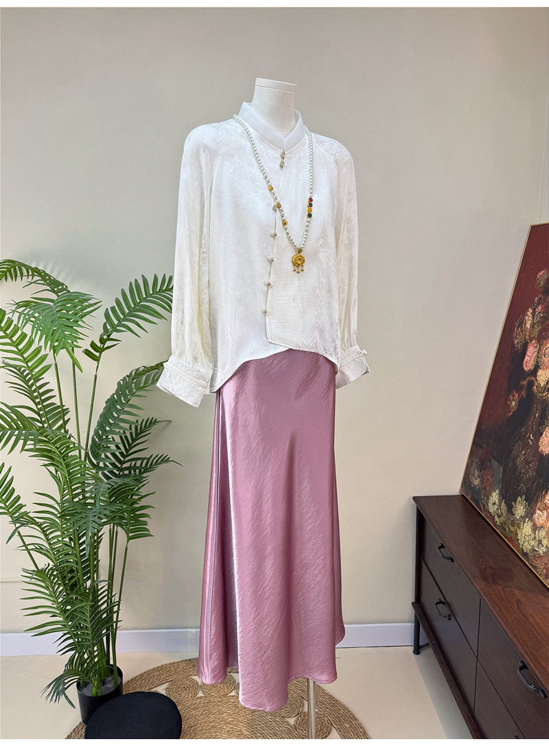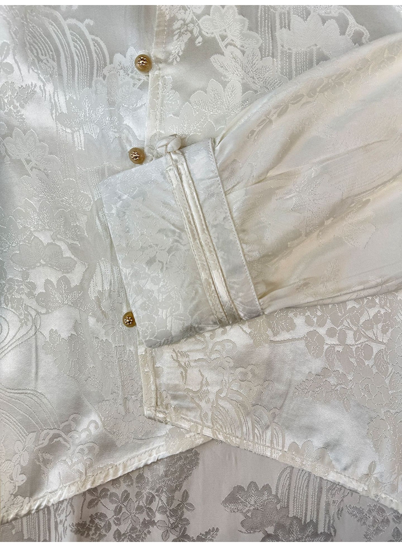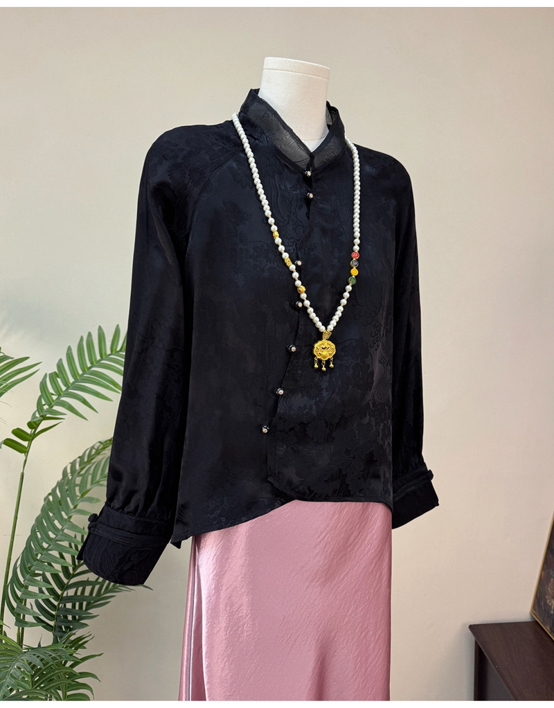 新中式提花斜襟立领长袖单排扣衬衫