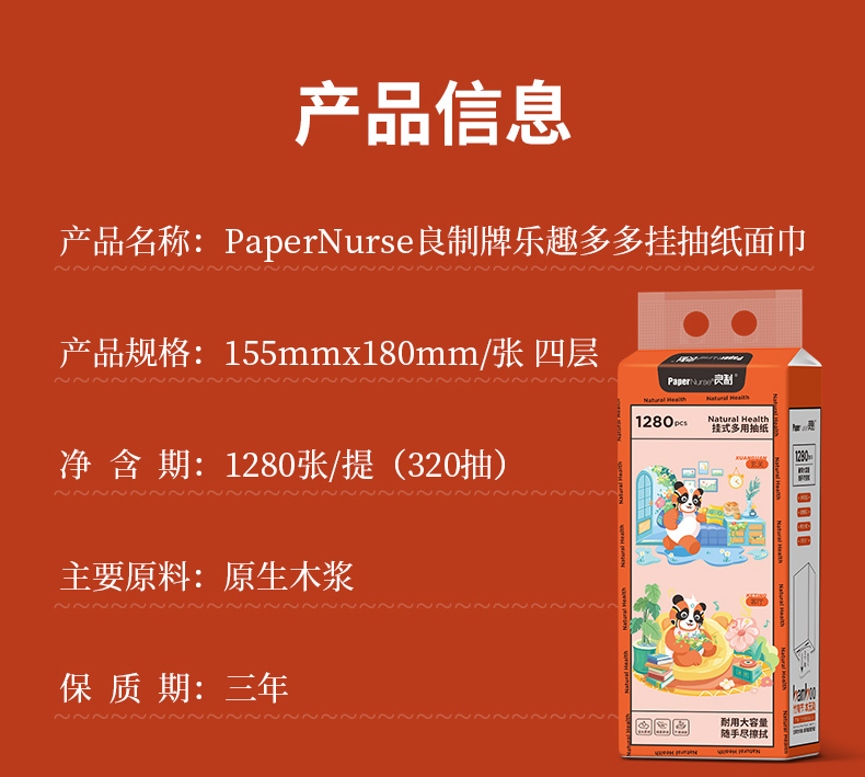 良制乐趣多多挂式多用抽纸1包 155mm*180mm/张 4层 320抽 原生木浆 亲肤柔韧
