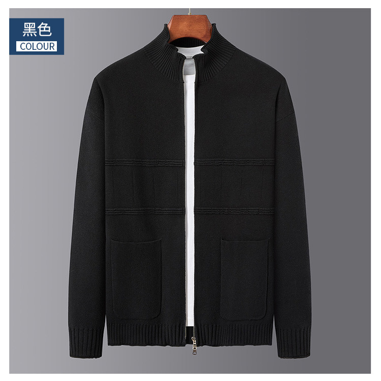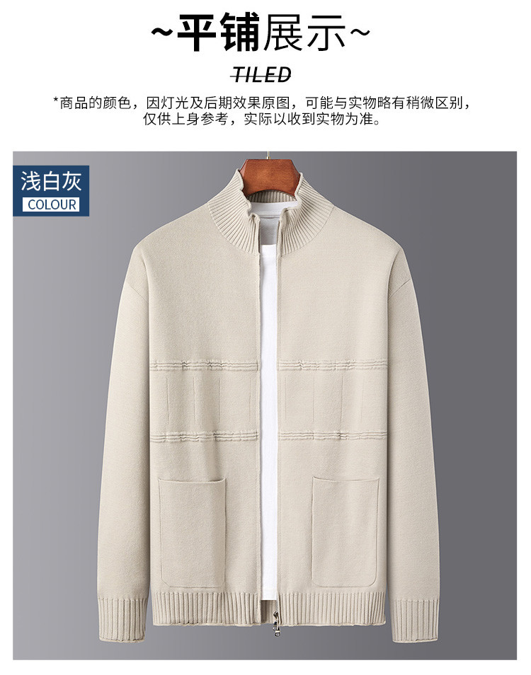 【卷边螺纹】罗蒙立领拉链针织外套男舒适针织开衫外套男士毛衣