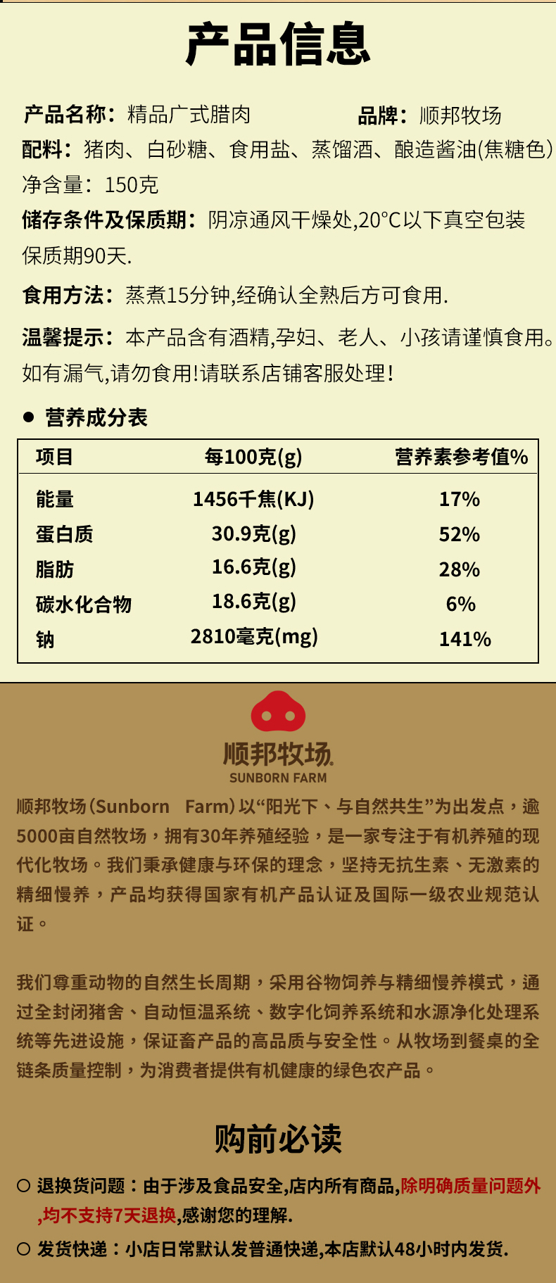 顺邦牧场 切片腊肉150克/包【龙菲精选】