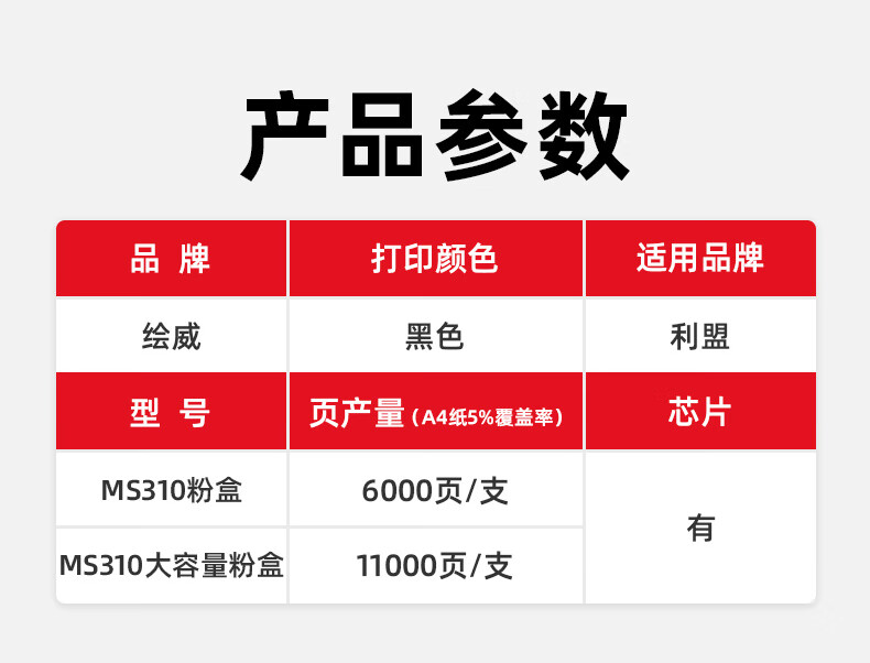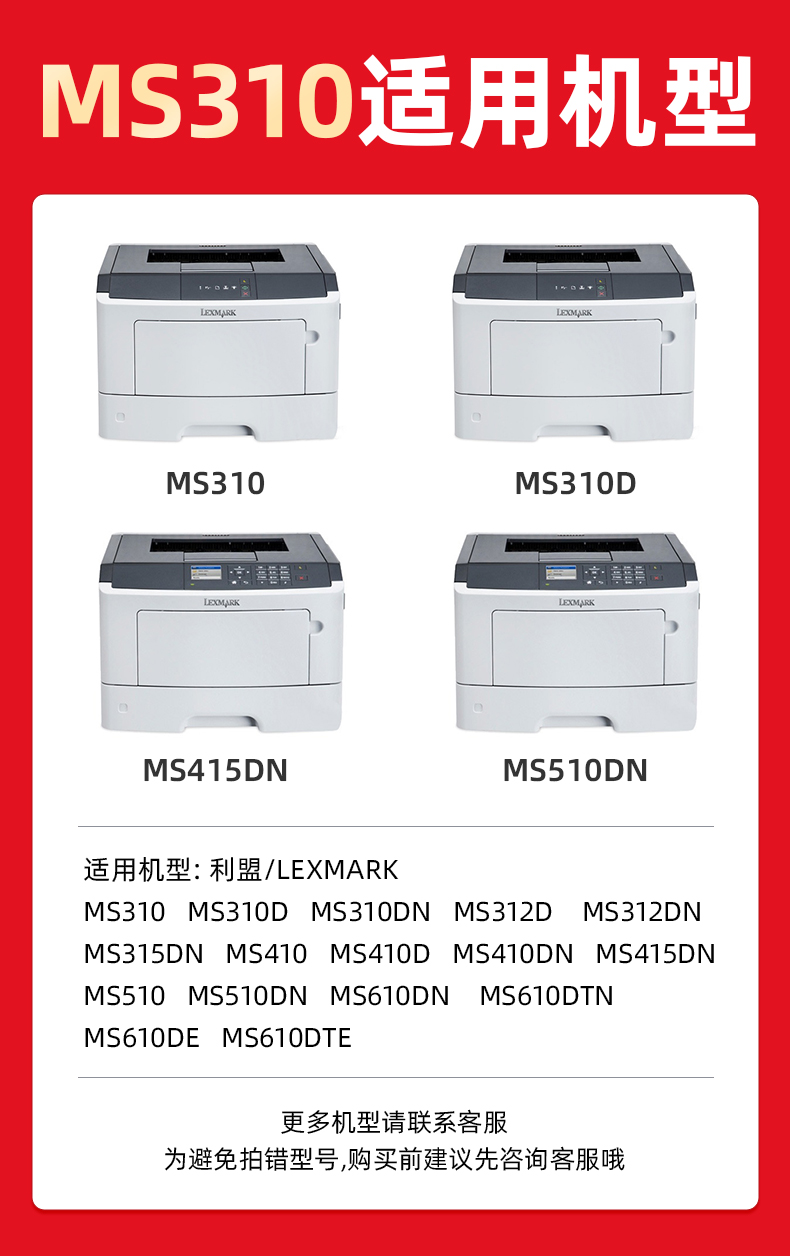 绘威MS310粉盒 适用利盟LEXMARK MS310 MS312D/DN MS315DN MS410 MS415DN MS510 MS610DN/DTN/DE/DTE碳粉盒