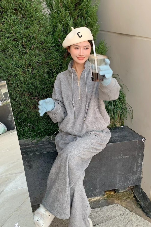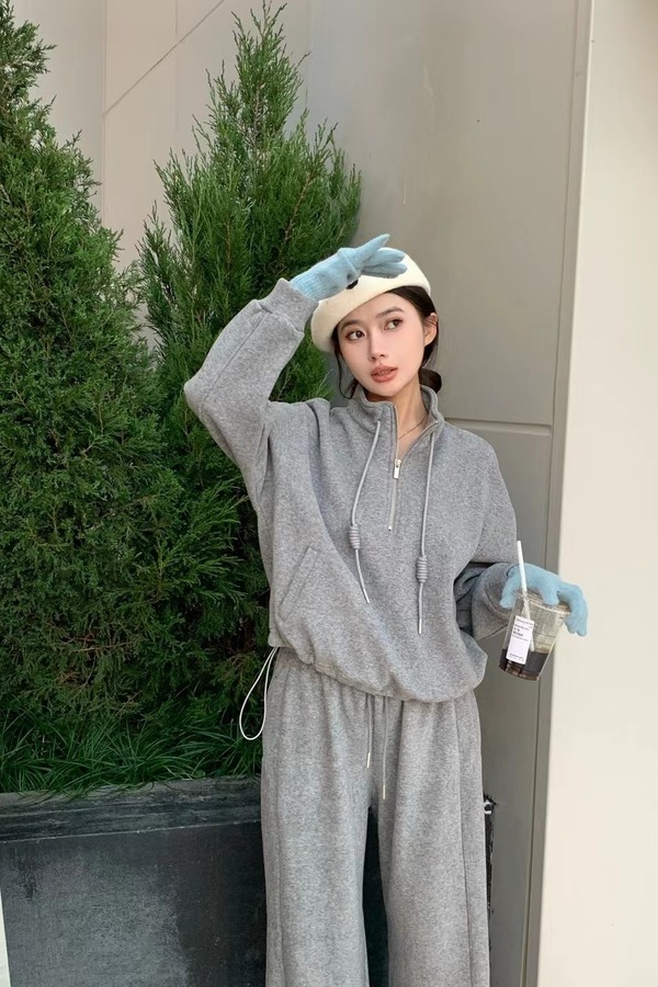 HAYES 灰色加绒运动风休闲卫衣+裤子套装 21988