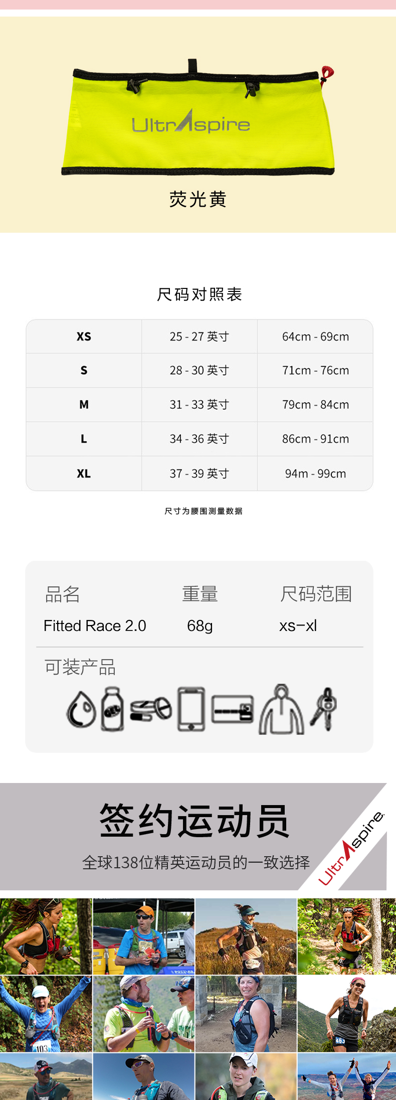 UltrAspire Fitted Race Belt 2.0跑步腰带越野跑马拉松运动腰包