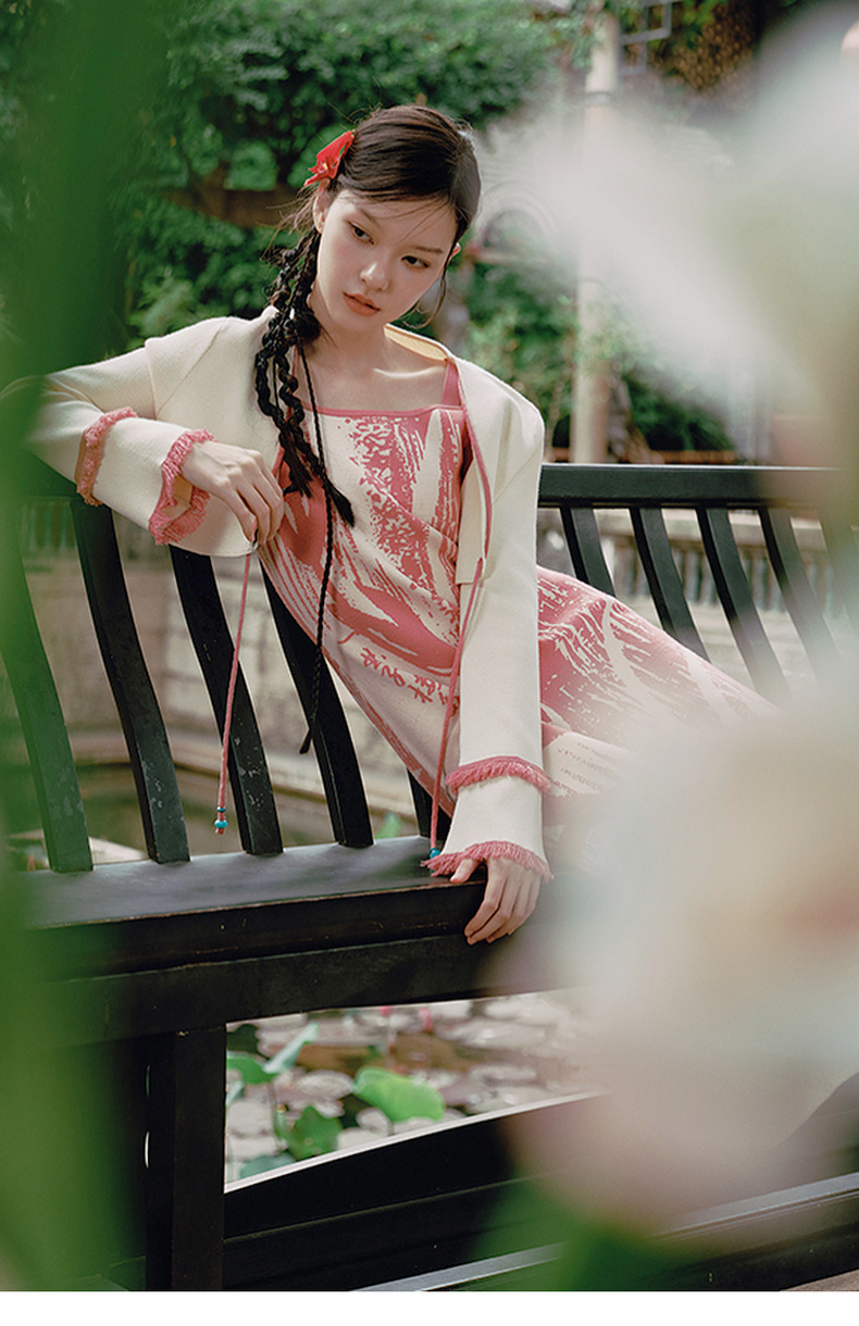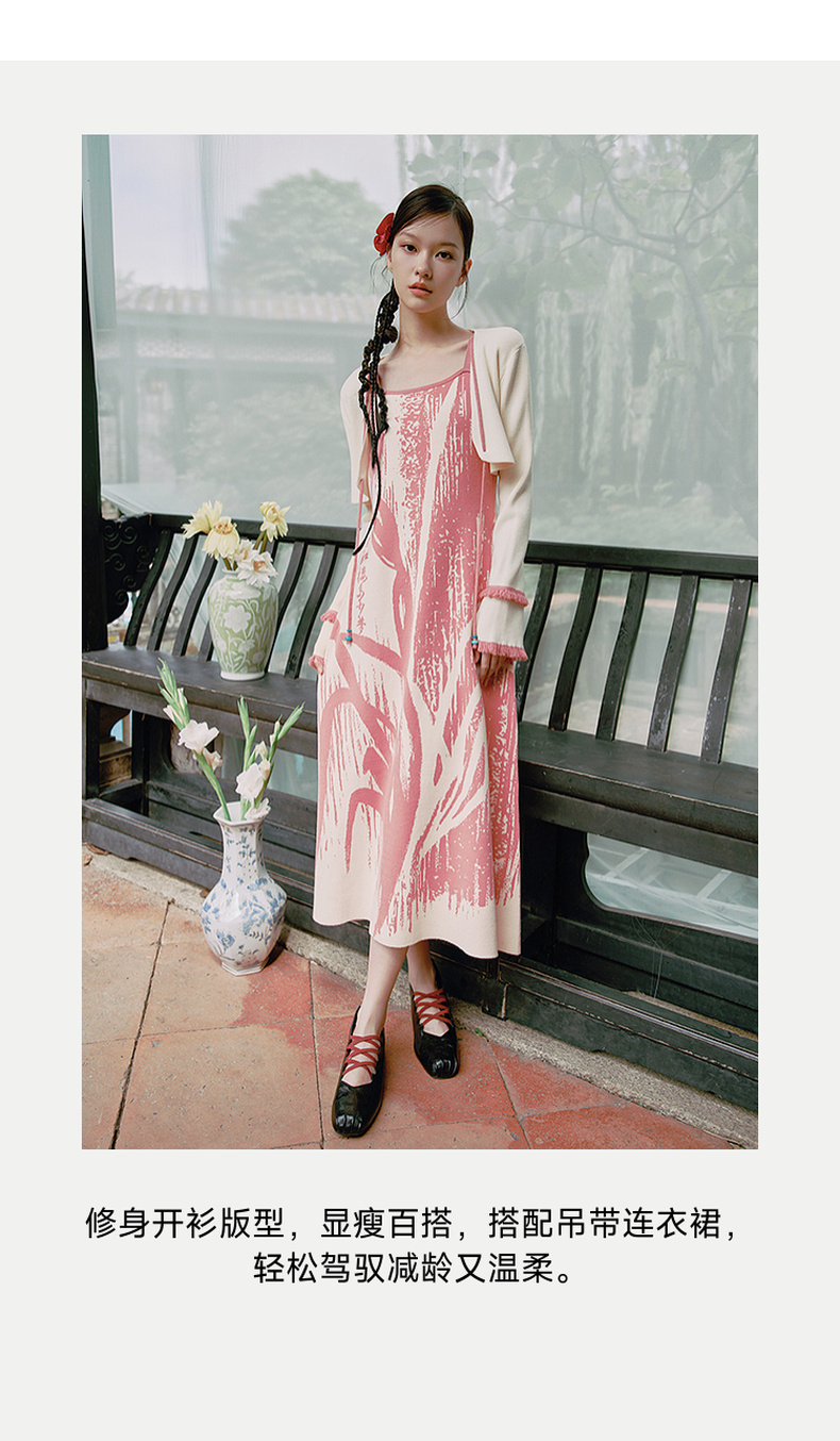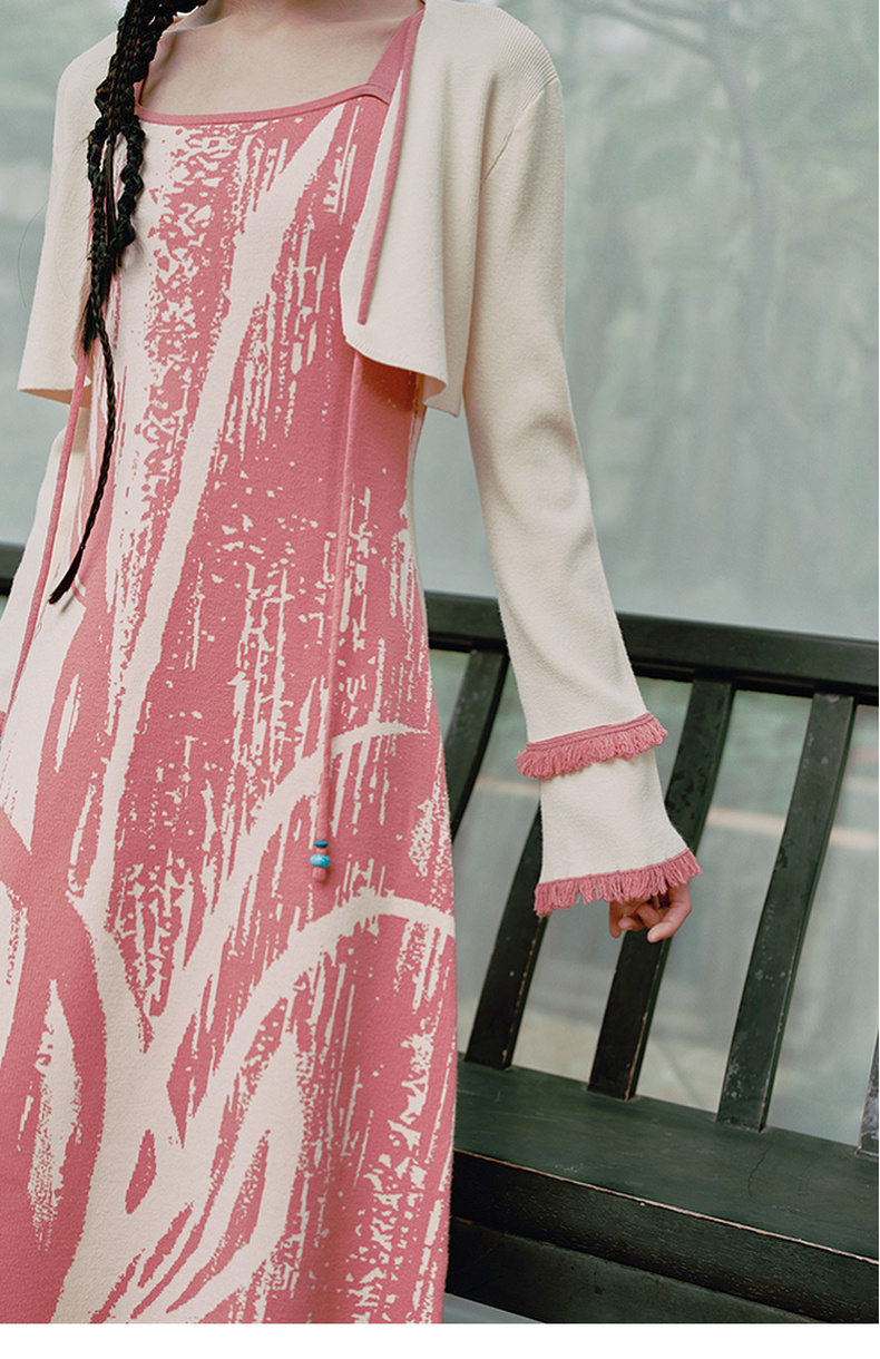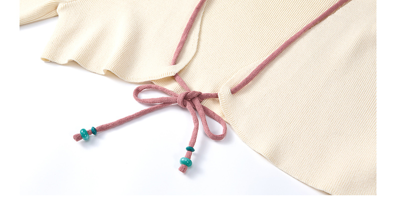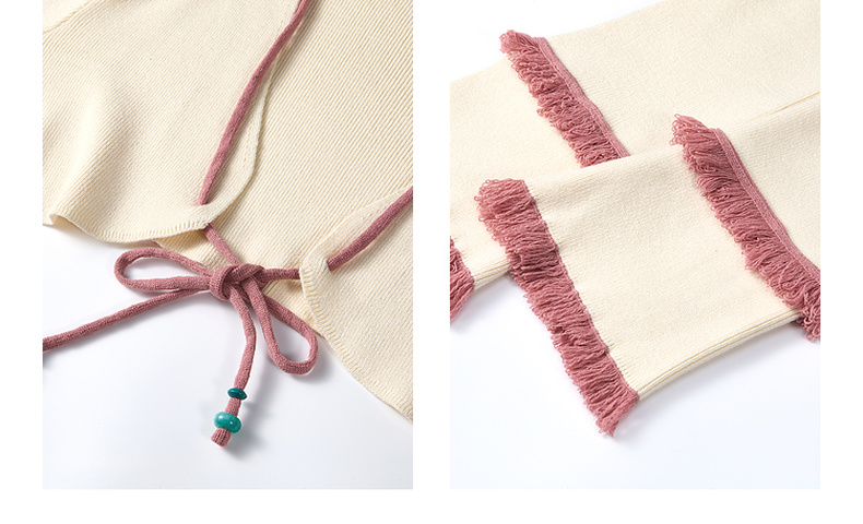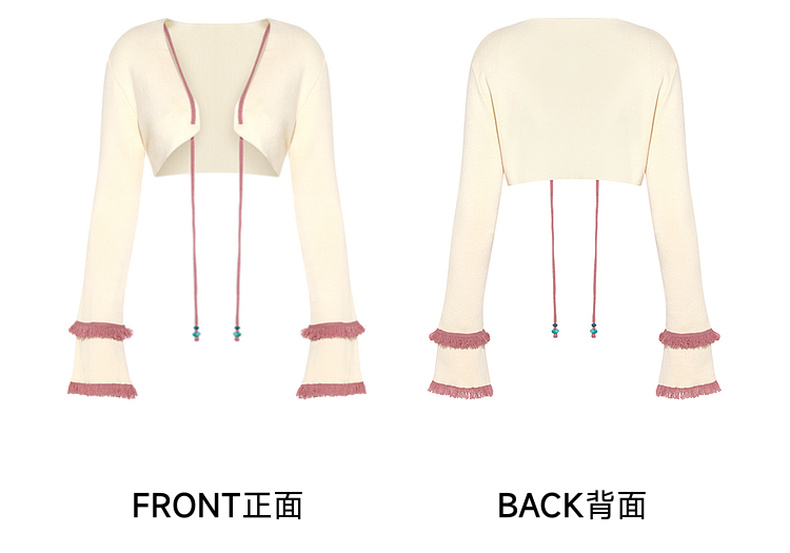 两三事 如梦人间 2025春季新款甜美拼色流苏绑带短款针织开衫女
