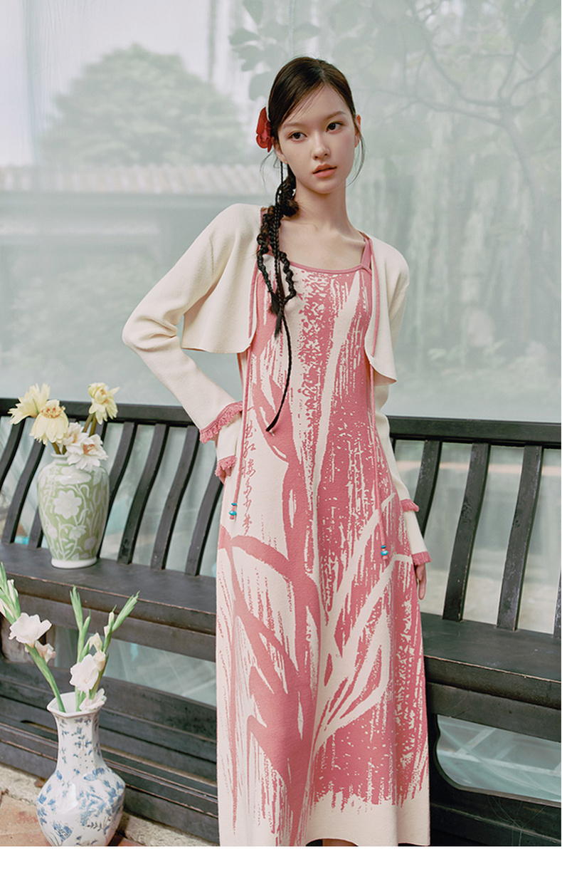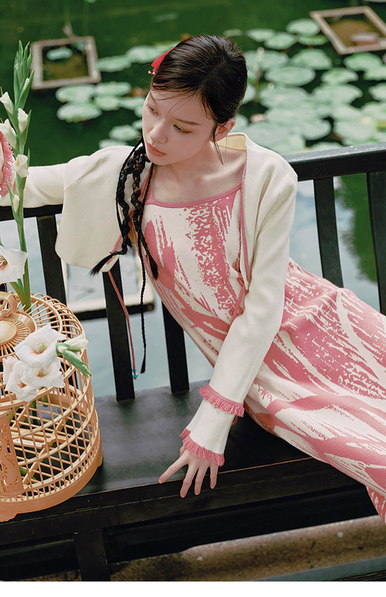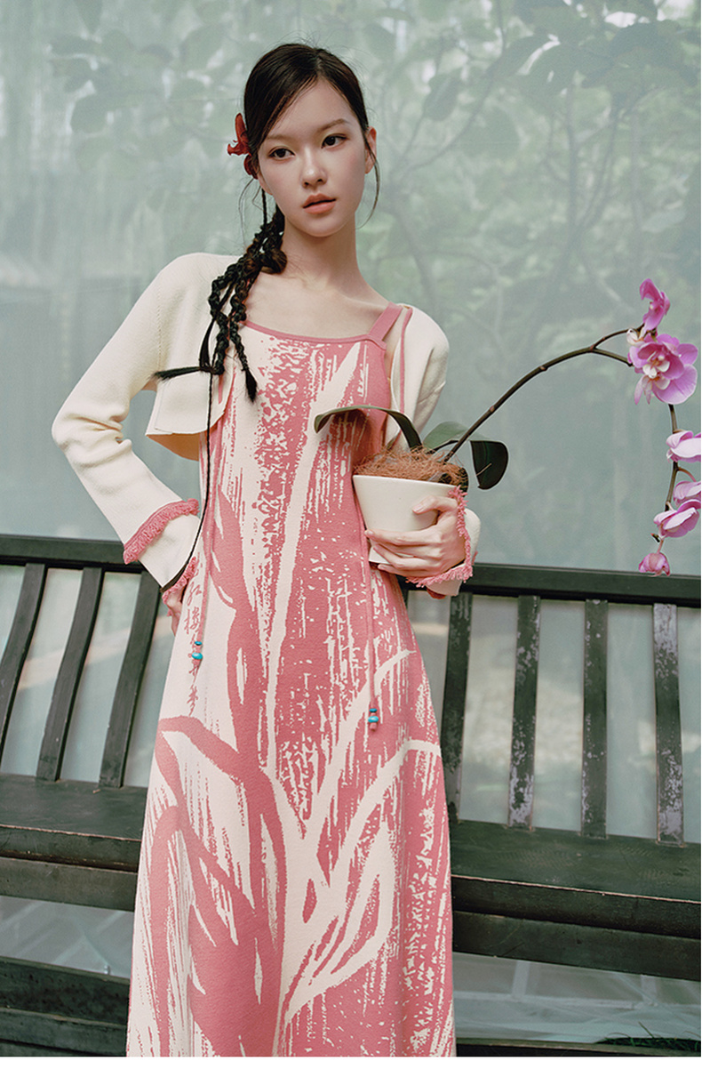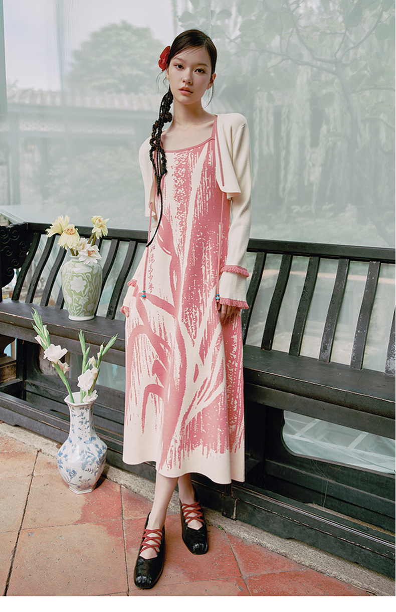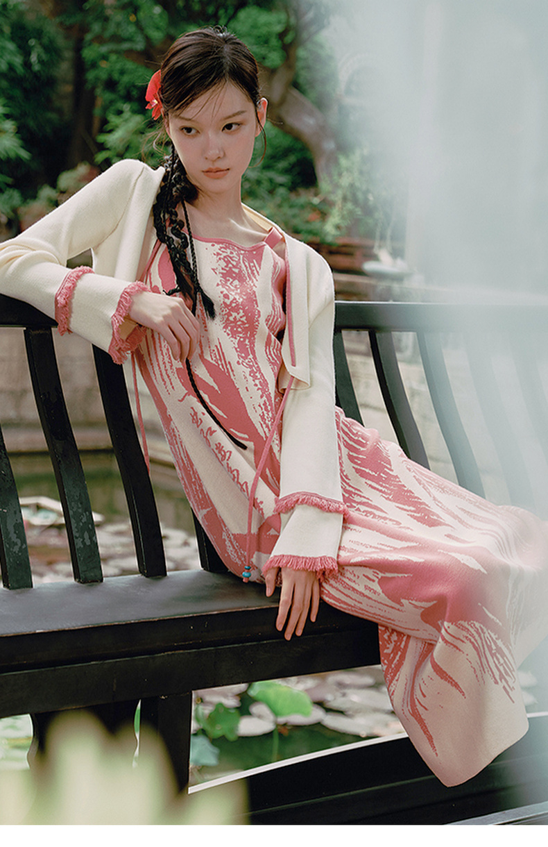 两三事 如梦人间 2025春季新款甜美拼色流苏绑带短款针织开衫女